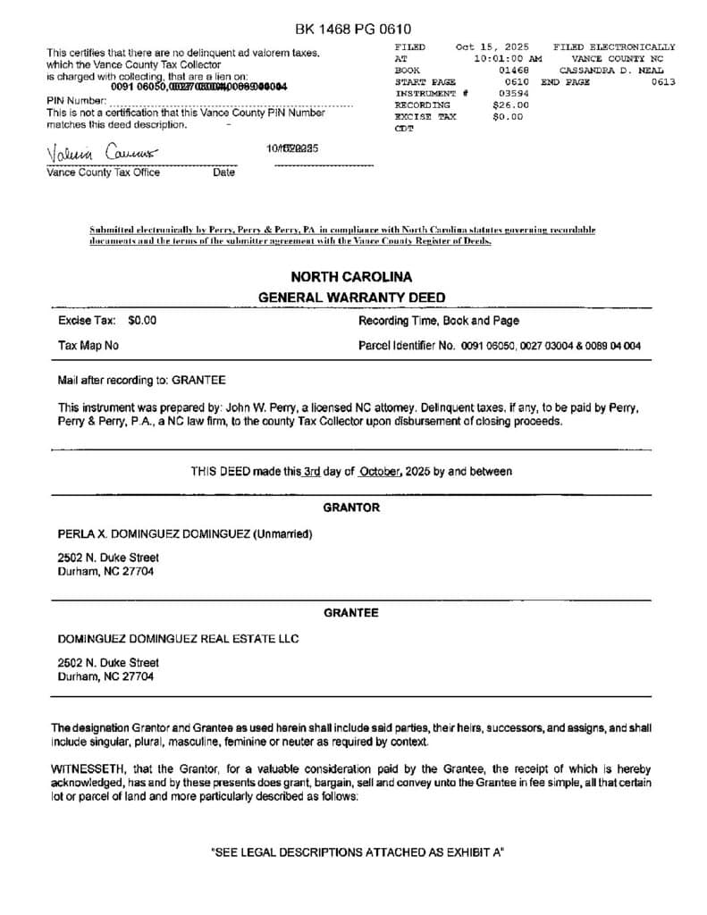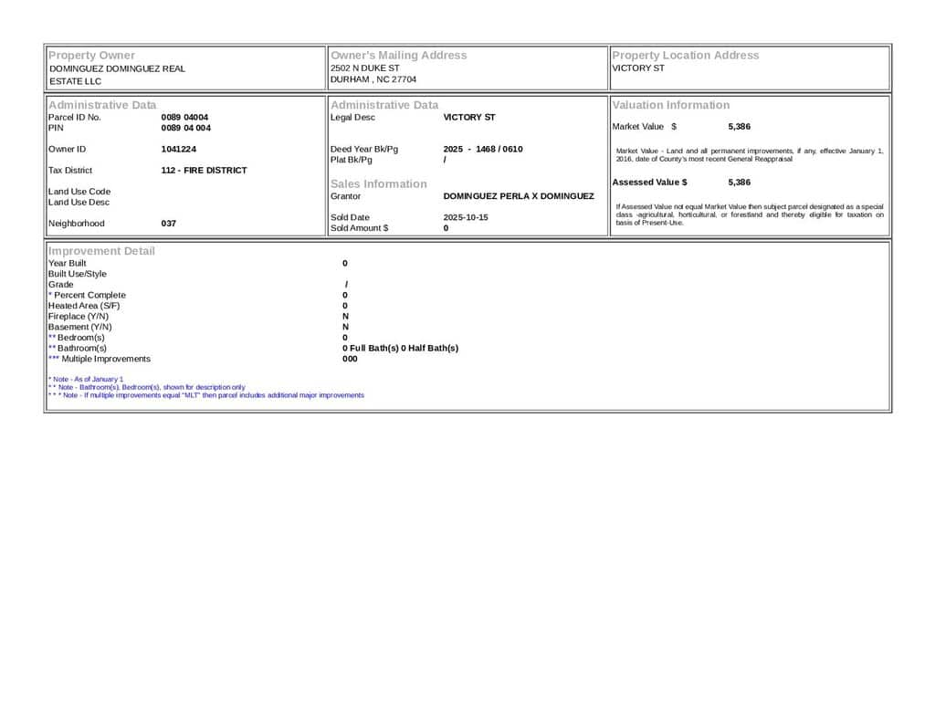 Not in a Subdivision – Henderson Township – Vance County