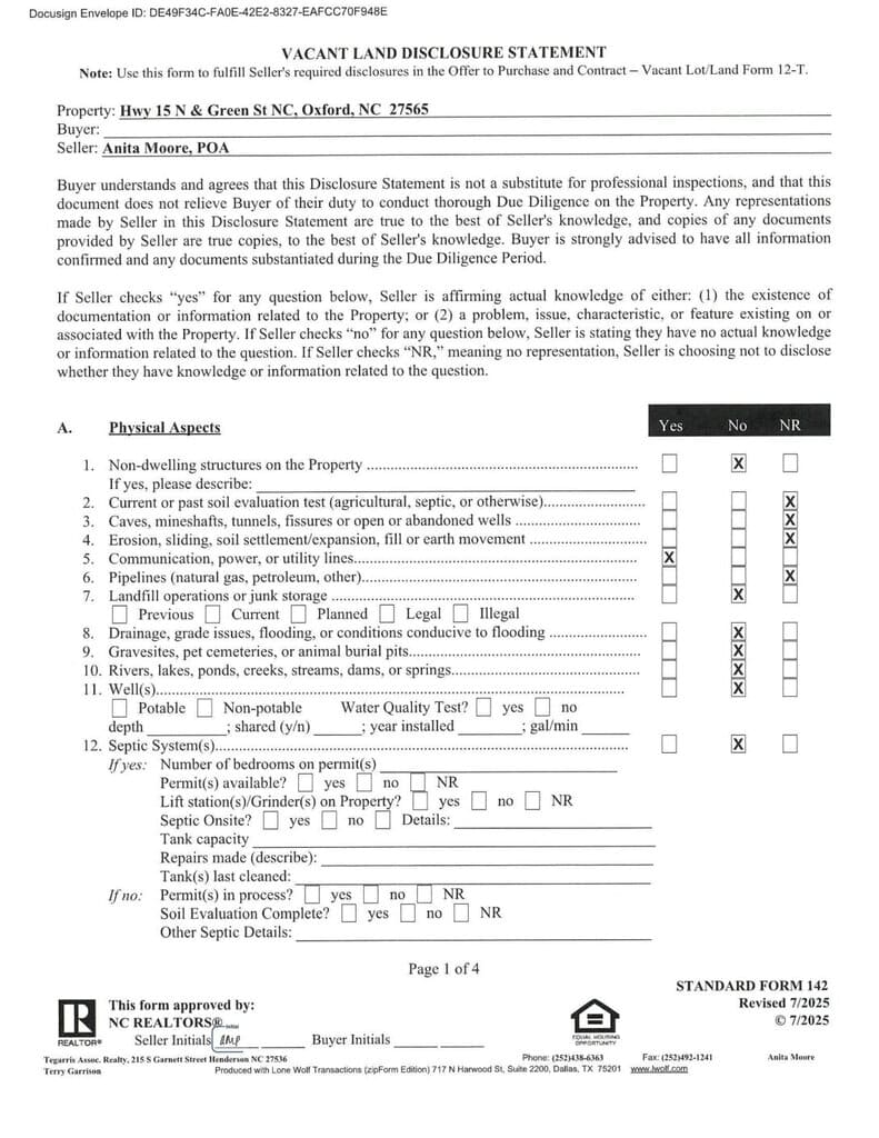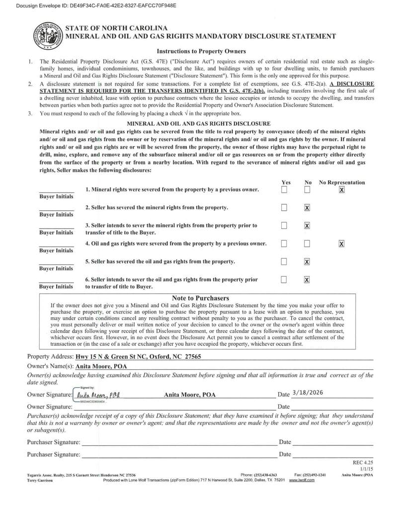 Not in a Subdivision – Oxford Township – Granville County