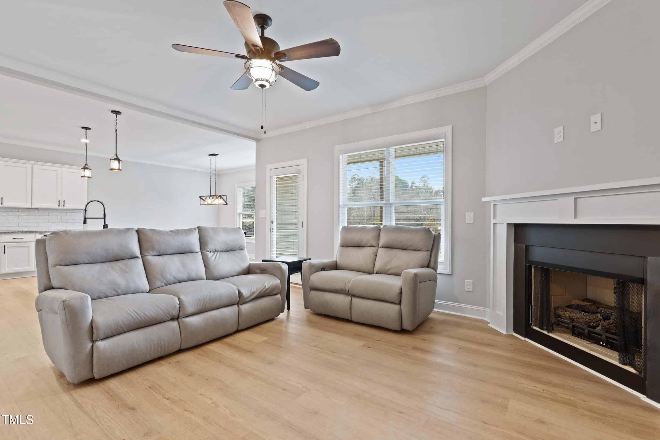 Welcome to this charming two-story home, ideally situated on over half an acre in the peaceful community of Centerville. Step inside to a grand foyer and an open floor plan with an abundance of natural light. The main level features newly installed, high-end wide-plank LVP flooring and elegant crown molding throughout. The spacious living room, complete with a cozy gas fireplace, offers the perfect setting for entertaining. The stunning kitchen is outfitted with crisp white shaker cabinets, granite countertops, stainless steel appliances, and a large island – all complemented by a bright, airy dining area. For added convenience, the home includes a walk-in pantry and a mudroom for extra storage. Upstairs, you’ll find LVP flooring throughout, two generously sized secondary bedrooms, and a versatile bonus room. The owner’s suite is a true retreat, featuring crown molding, a ceiling fan, and a large walk-in closet with wood shelving. The owner’s bath is beautifully finished with tile flooring, a tiled walk-in shower, and a dual vanity countertop. Step outside to the fully fenced backyard, your personal oasis, with a covered patio and firepit – perfect for enjoying tranquil mornings and evenings. This home offers the best of both worlds: the serene charm of country living with easy access to all the amenities of the Triangle area. Don’t miss this wonderful opportunity to make it yours!