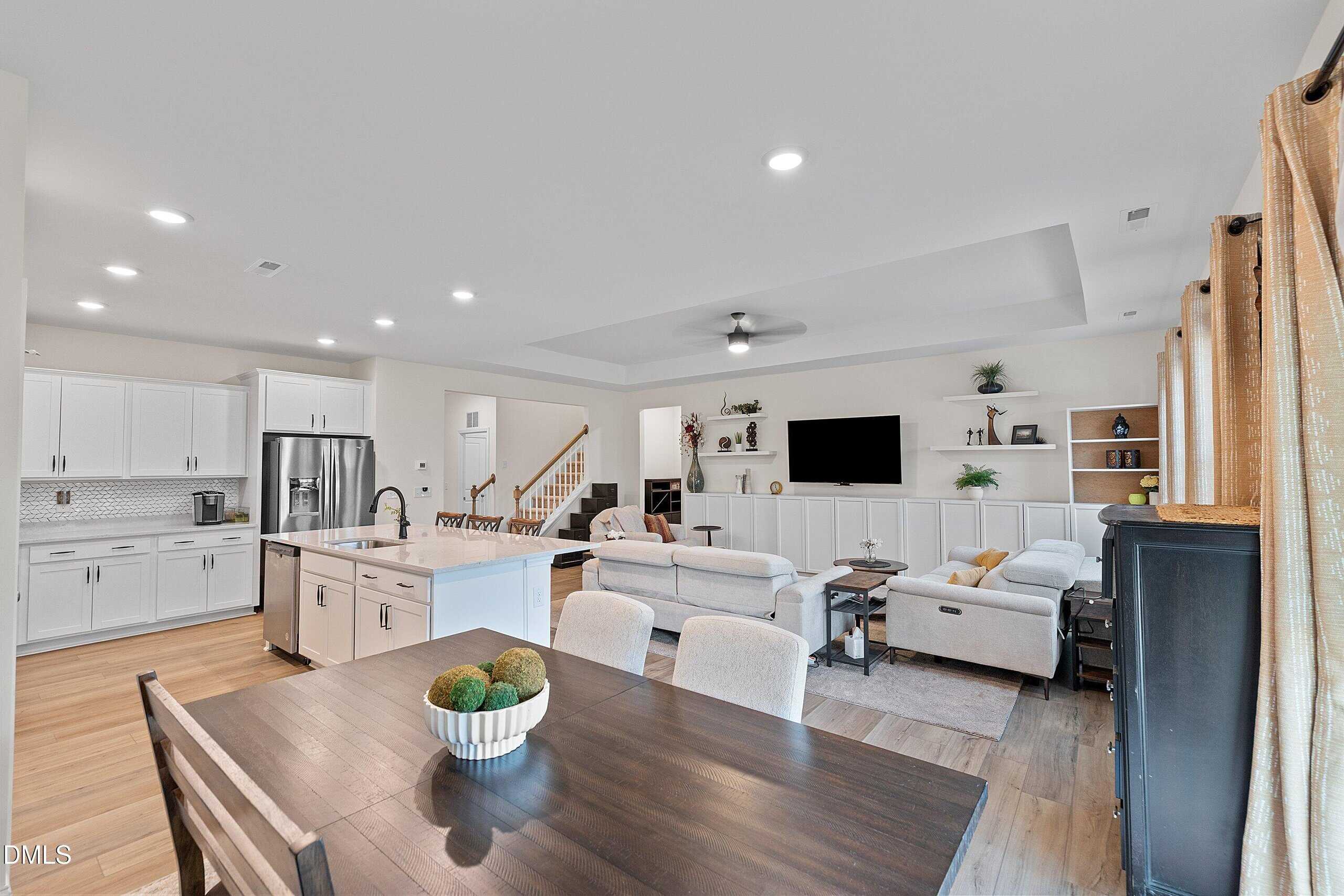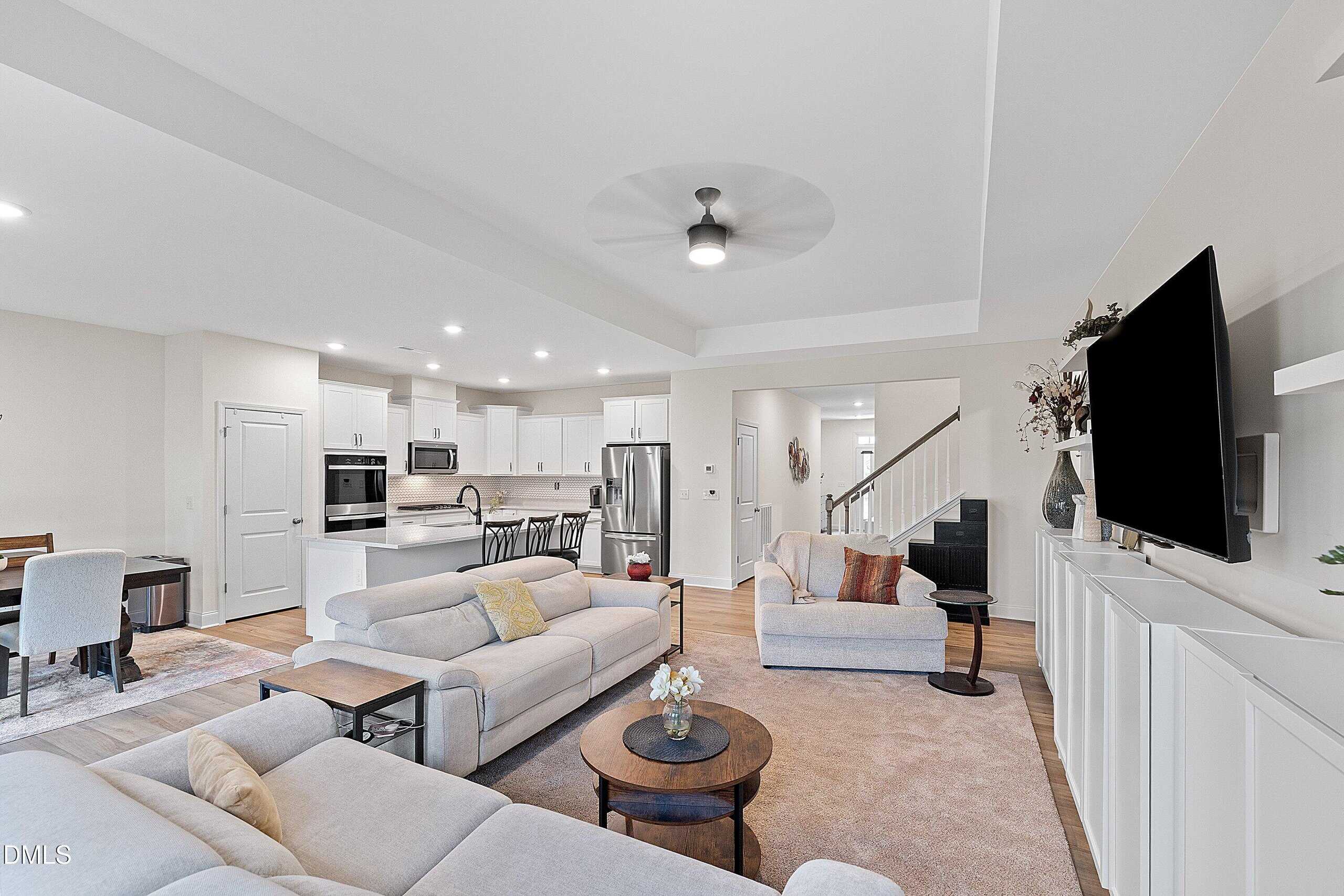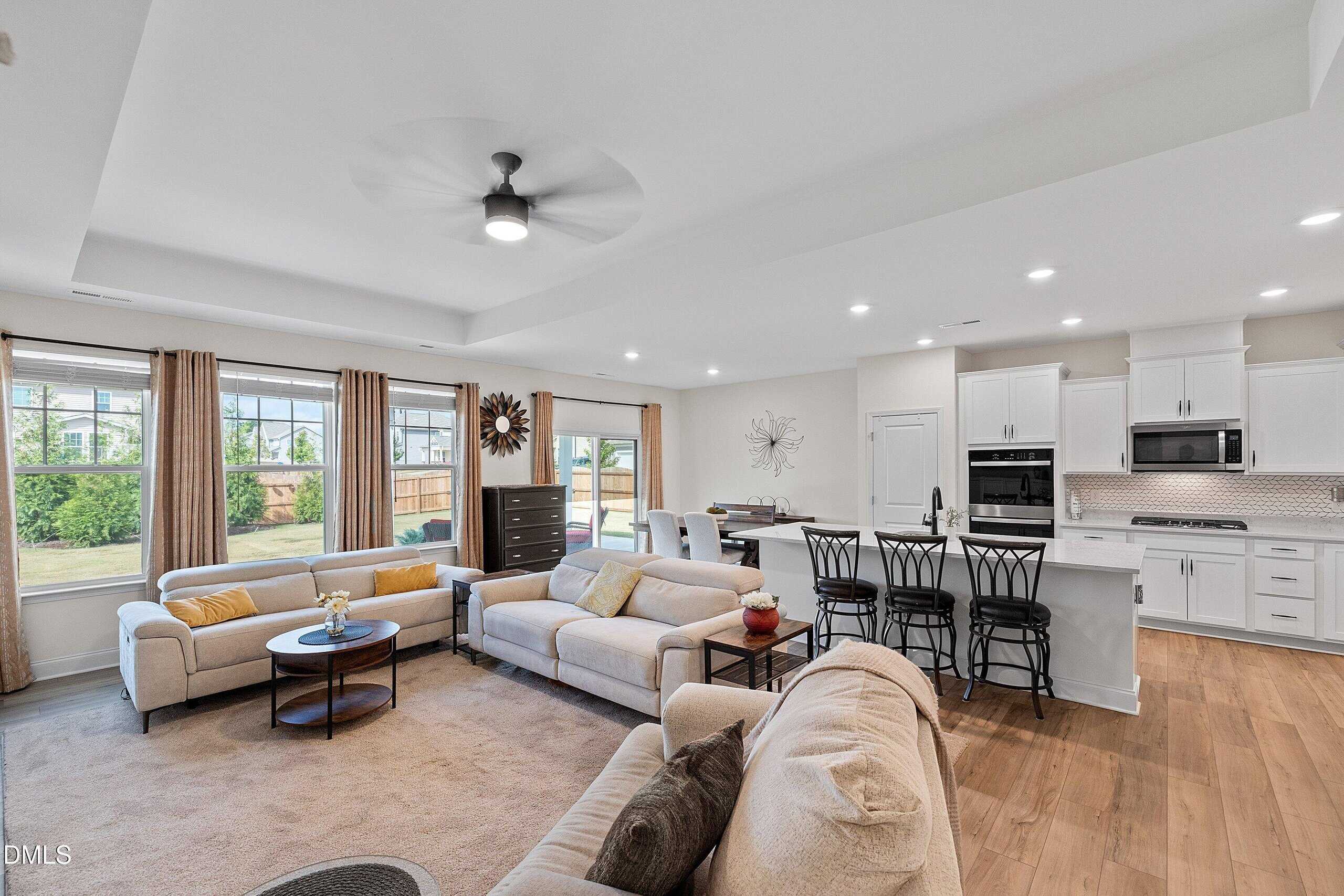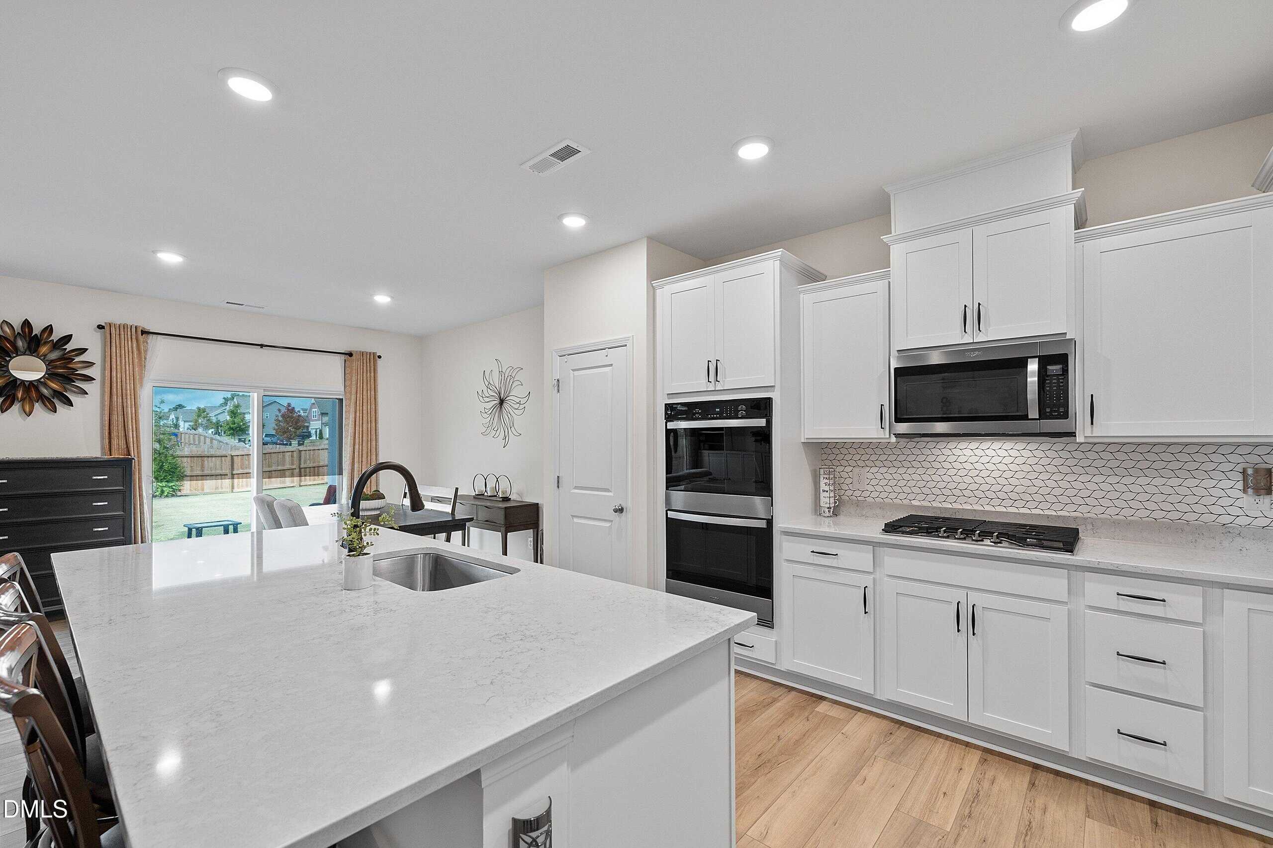 Welcome to a bright, open layout where the gourmet kitchen shines with quartz countertops, large island, stainless steel appliances, gas cooktop, and double wall oven. The spacious family room flows seamlessly into the dining area, creating an ideal space for everyday living and entertaining.