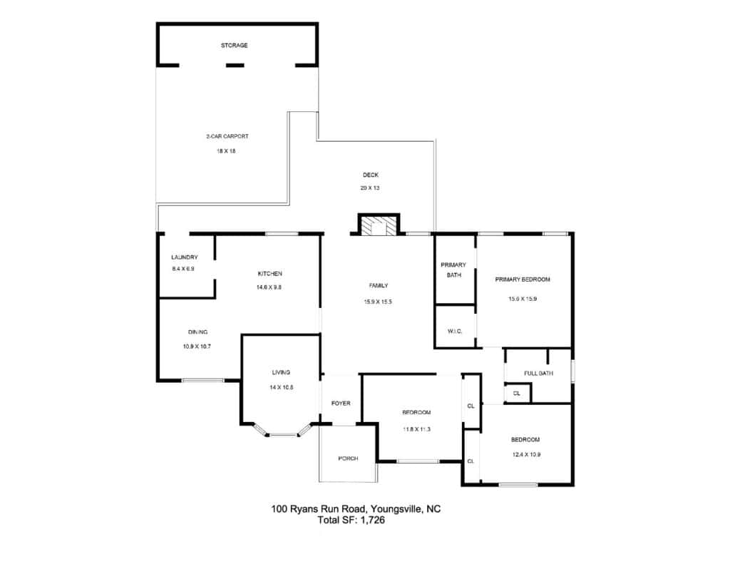 Charming ranch-style home nestled on a spacious, open lot in Youngsville! Enjoy one-level living with 3 bedrooms and 2 full baths, offering a functional layout and strong foundation—perfect for those ready to bring their vision and style to life. The large driveway and covered 2-car carport provide ample parking and convenience. A convenient ramp in carport area provides easy accessibility to the home. Extra storage space accessible from the carport. Enjoy morning coffee or evening sunsets from the large back deck overlooking the expansive backyard. This home has great bones and endless potential—whether you’re a first-time buyer, investor, or looking to downsize and customize. Don’t miss the opportunity to make this one your own!