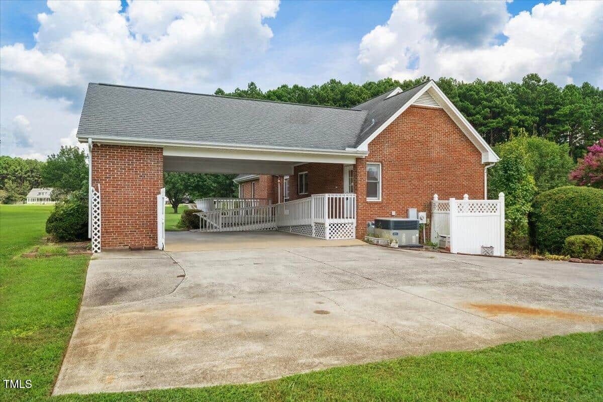 The large driveway and covered 2-car carport provide ample parking and convenience. A convenient ramp in carport area provides easy accessibility to the home. Extra storage space accessible from the carport.