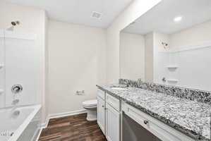 The first floor of this 3-bedroom home showcases a large living room with a cozy dining area and a gorgeous kitchen. Each of the generously sized bedrooms are located on the second level, along with a conveniently placed laundry room. Luxury vinyl-plank flooring, energy-efficient appliances, wood cabinetry with crown molding, designer lighting and a two-tone paint scheme are just a few of the many exciting features you will find in this home – all at no extra cost to you!