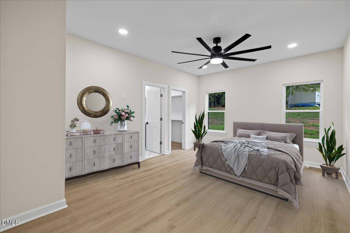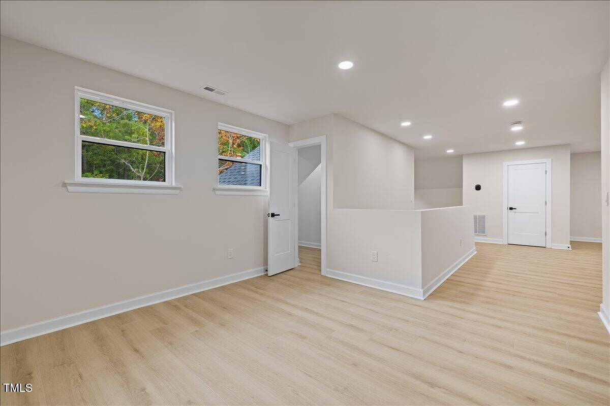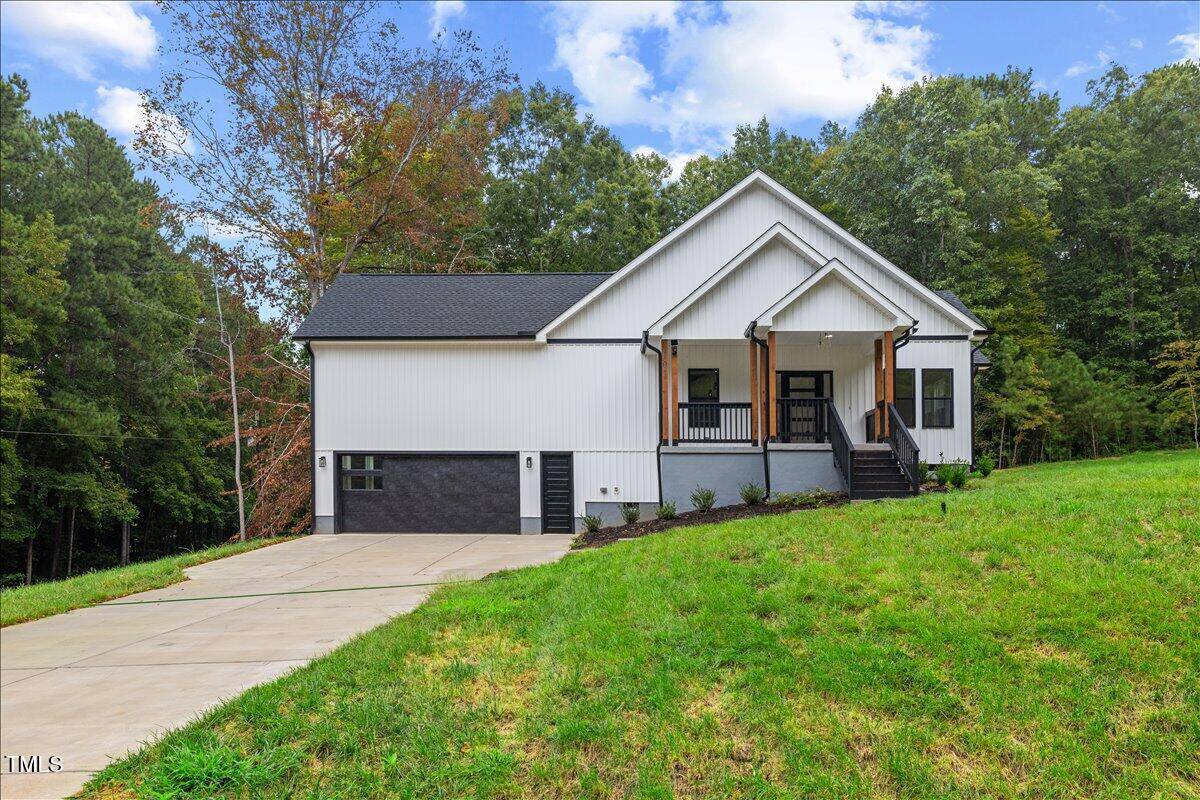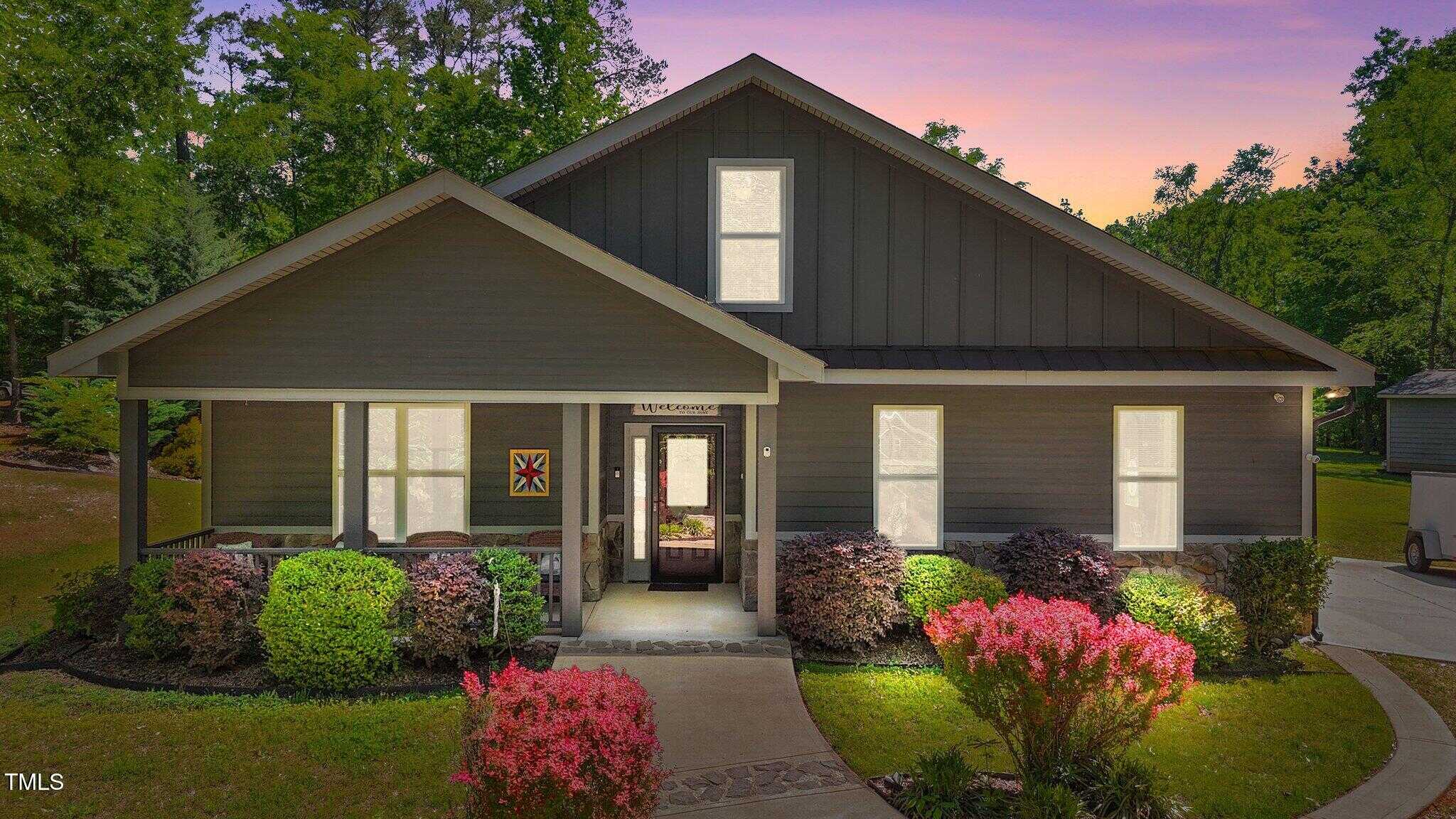 This is a thoughtfully designed home with 3-bedroom, 3.5-bath, bonus rooms, and an office. Offering 3,064 sq ft of living space built by FEP Construction. Tucked away on a quiet cul-de-sac near the front gate of Lake Royale, this property combines quality craftsmanship with a functional layout for modern living. The main level features a spacious primary suite with a walk-in closet and luxurious bath, along with two additional bedrooms, a full bath, and a convenient half bath. The open-concept kitchen is equipped with quartz countertops, a walk-in pantry, and a large island, flowing seamlessly into the dining and living areas with soaring ceilings, perfect for everyday living or entertaining. A dedicated office with its own closet adds versatility and can even serve as a fourth bedroom. Upstairs, you’ll find three separate bonus spaces, a full bathroom, a cold kitchen, and a walk-in attic. This flexible second floor is ideal for a media room, game room, or even a private in-law suite. With abundant closets throughout, storage will never be an issue. Enjoy outdoor living on the covered front porch or the spacious back porch overlooking the level backyard. As a resident of Lake Royale, you’ll have access to a 345-acre lake with boating, beaches, golf (two memberships included), pickleball, and more. Whether you’re seeking a year-round residence or a retreat, this home offers both comfort and lifestyle in one of the Triangle’s most desirable lake communities.