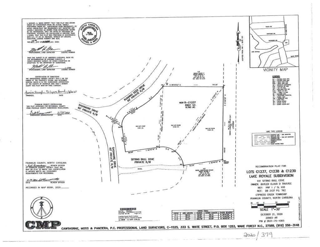 Live the lake life at Lake Royale, a private gated community in Franklin County. This 0.76 acre vacant lot is ready for a cottage, tiny home, or park model build. Septic, electricity, and water already in place. It just needs you and your dreams of a more relaxed life. The property backs into an HOA-managed green space buffer and then private farm land and a pond. And then a quick flip-flop walk away, is the absolutely stunning 345 acre Lake Royale and all that it offers. The LR community offers many amenities for both an active and social lifestyle, but also for those who just want to get away and relax. Live your dreams today at Lake Royale.