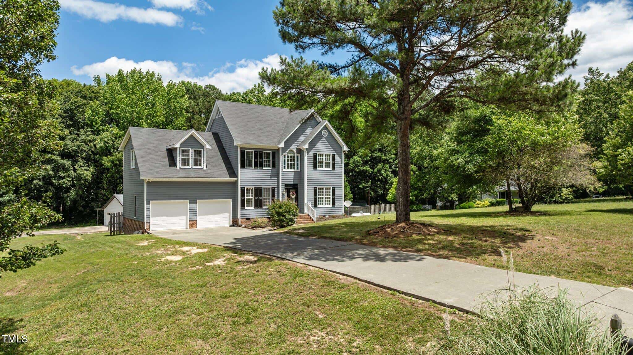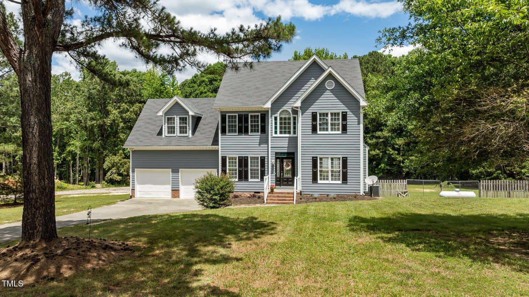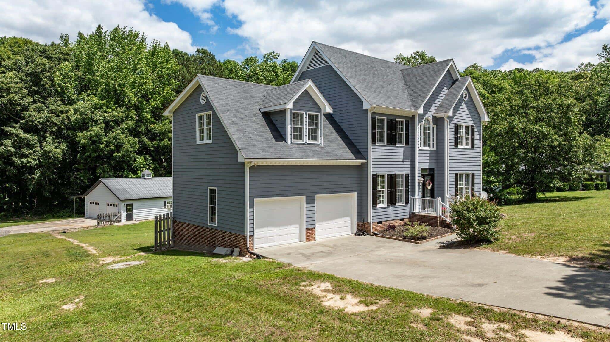 Nestled on 1.13 acres in a quiet neighborhood with !!NO HOA!!just minutes from the heart of Youngsville. 3 spacious bedrooms, 2.5 baths and a bonus room. This home has an attached 2 car garage and a detached 40×28 garage with electricity, which has a separate driveway, perfect for your boats, RV’s, or hobby cars. The primary suite offers 2 walk-in closets, the en-suite bath offers a dual vanity and garden tub. New carpet on the second floor, fresh interior and exterior paint, and an unfinished walk-in area for storage. Enjoy the large private backyard perfect for a garden, relaxing or entertaining.