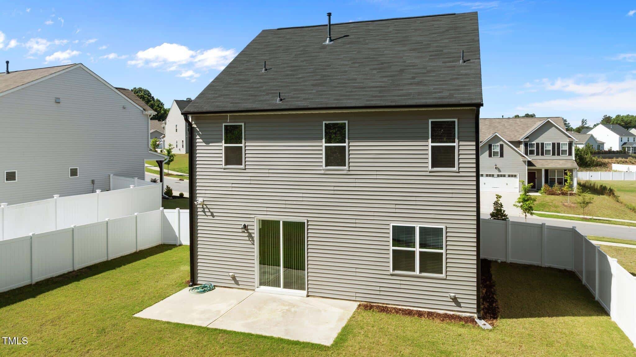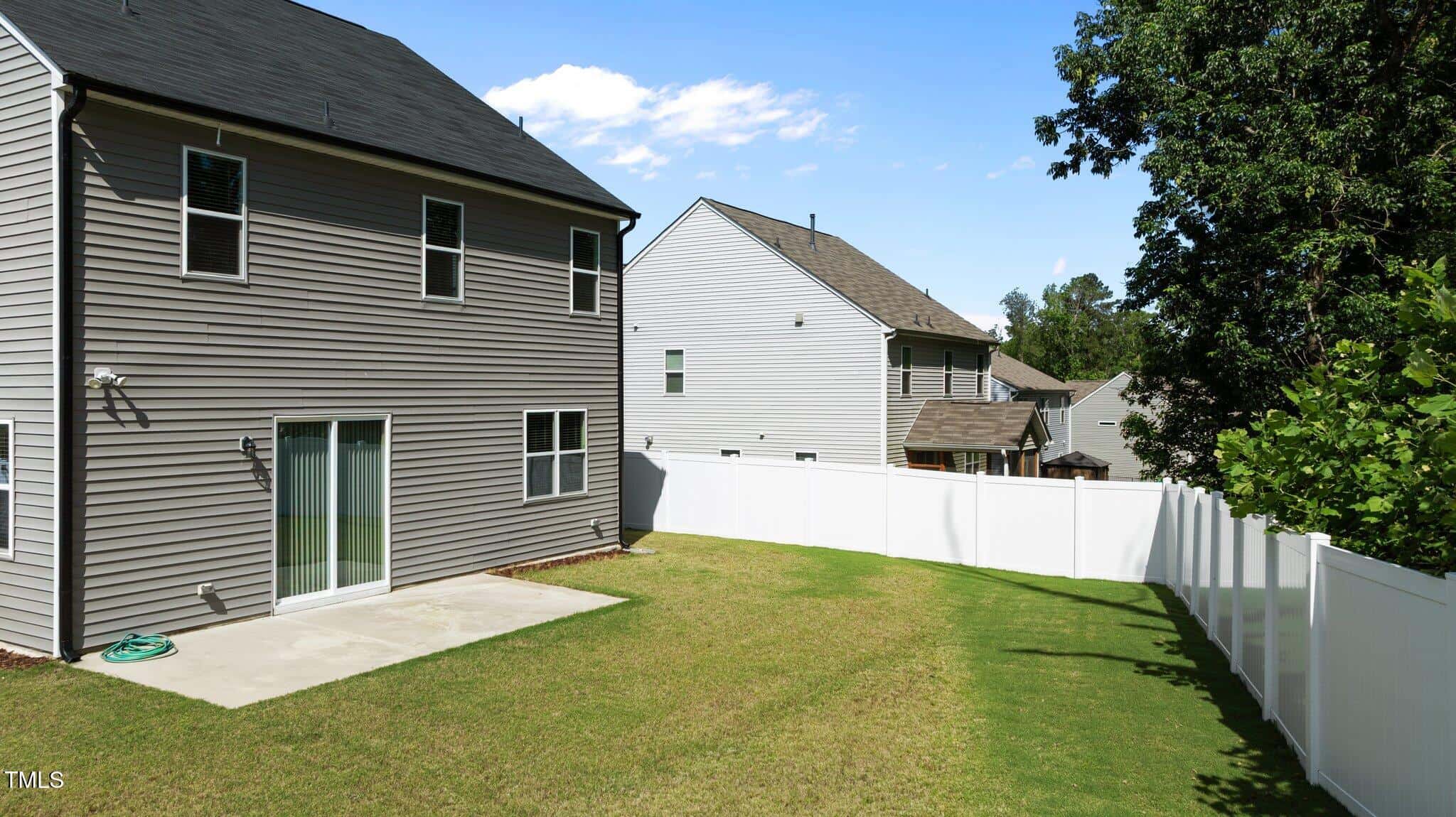 The laundry is conveniently located on the second floor with vinyl flooring that resembles tile. Storage/drop zone off back hall.Extra outlets throughout, including outlet for electric car charger in garage. Sliding doors open to the oversized patio and the fenced backyard..The homesite backs to natural area for privacy. 2 Car garage and low maintenance exterior.