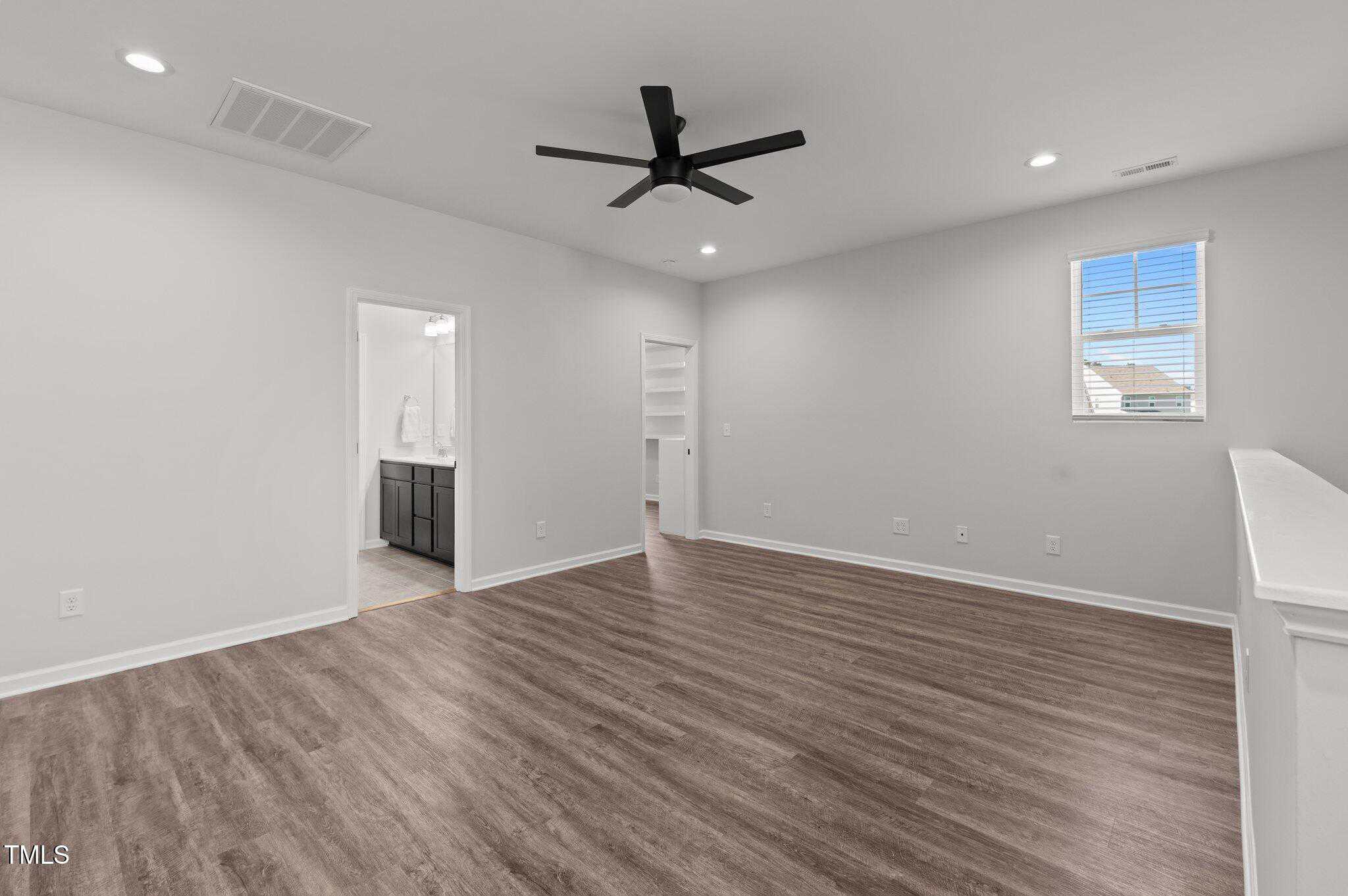 Upstairs you will find the primary suite plus 2 additional bedrooms (one with built in cabinet and shelving and walk in closet) and a huge loft area. Double doors lead you to the spacious primary suite. The primary bath features a dual vanity, garden tub/shower combo, water closet. Custom shelving in primary closet.