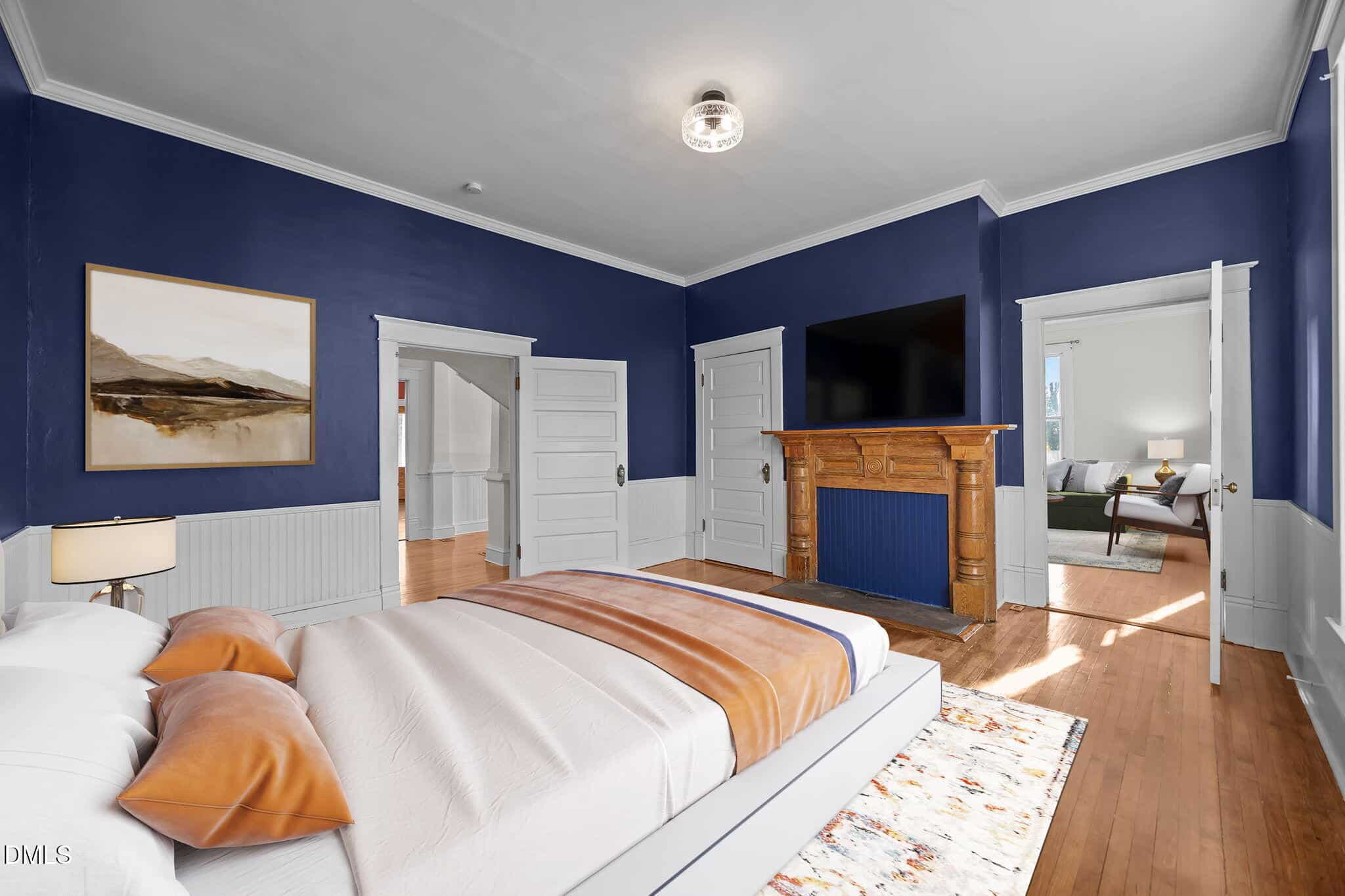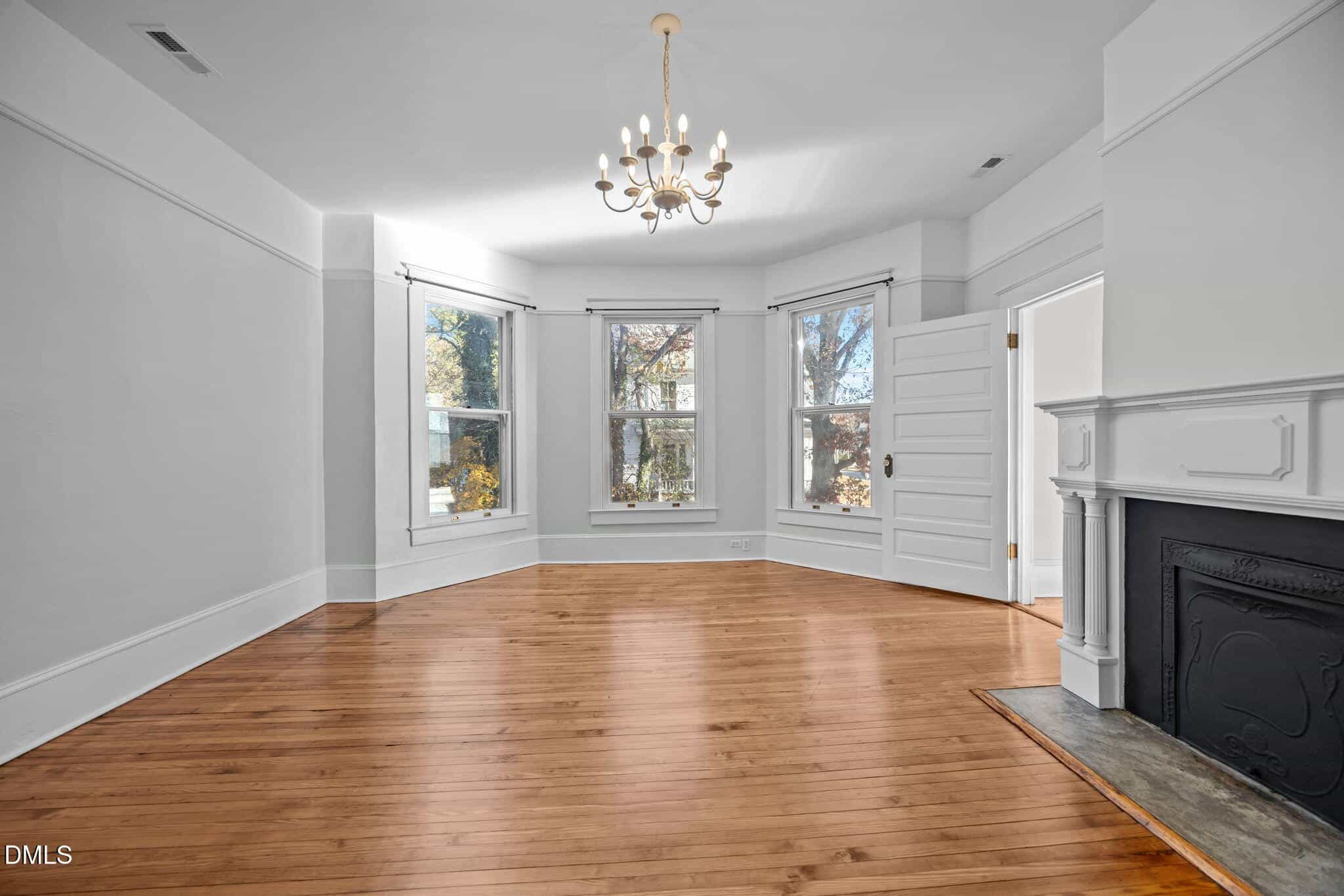 The welcoming front porch leads into a grand foyer showcasing refinished original hardwood floors, ornate trim work, soaring ceilings, and a stunning staircase. The main hallway is the heart of the home; flanked by the living room and traditional parlor. Look for the sparking bench at the bottom of the staircase! Throughout the home, you’ll find 8 original fireplaces, picture rails, and many antique fixtures that preserve the character of this early 1900s residence.