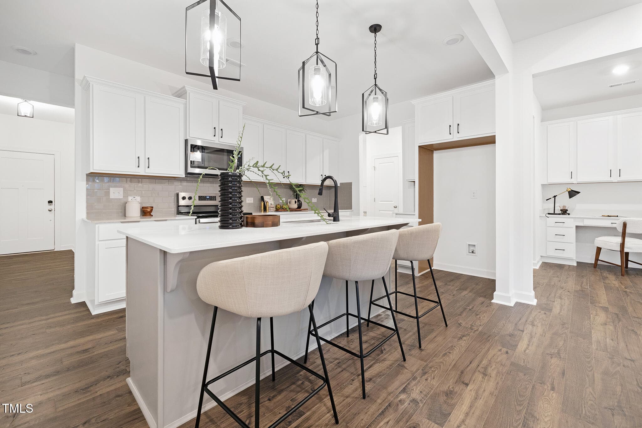 Quick Move-In Opportunity! This stunning Elon 3-bedroom, 2.5-bathroom home offers the perfect blend of modern comfort and convenience. The well-appointed kitchen opens to a spacious great room, creating a seamless flow for entertaining and daily living. Adjacent to the dining room is a built-in desk area, ideal for working from home or managing household tasks.