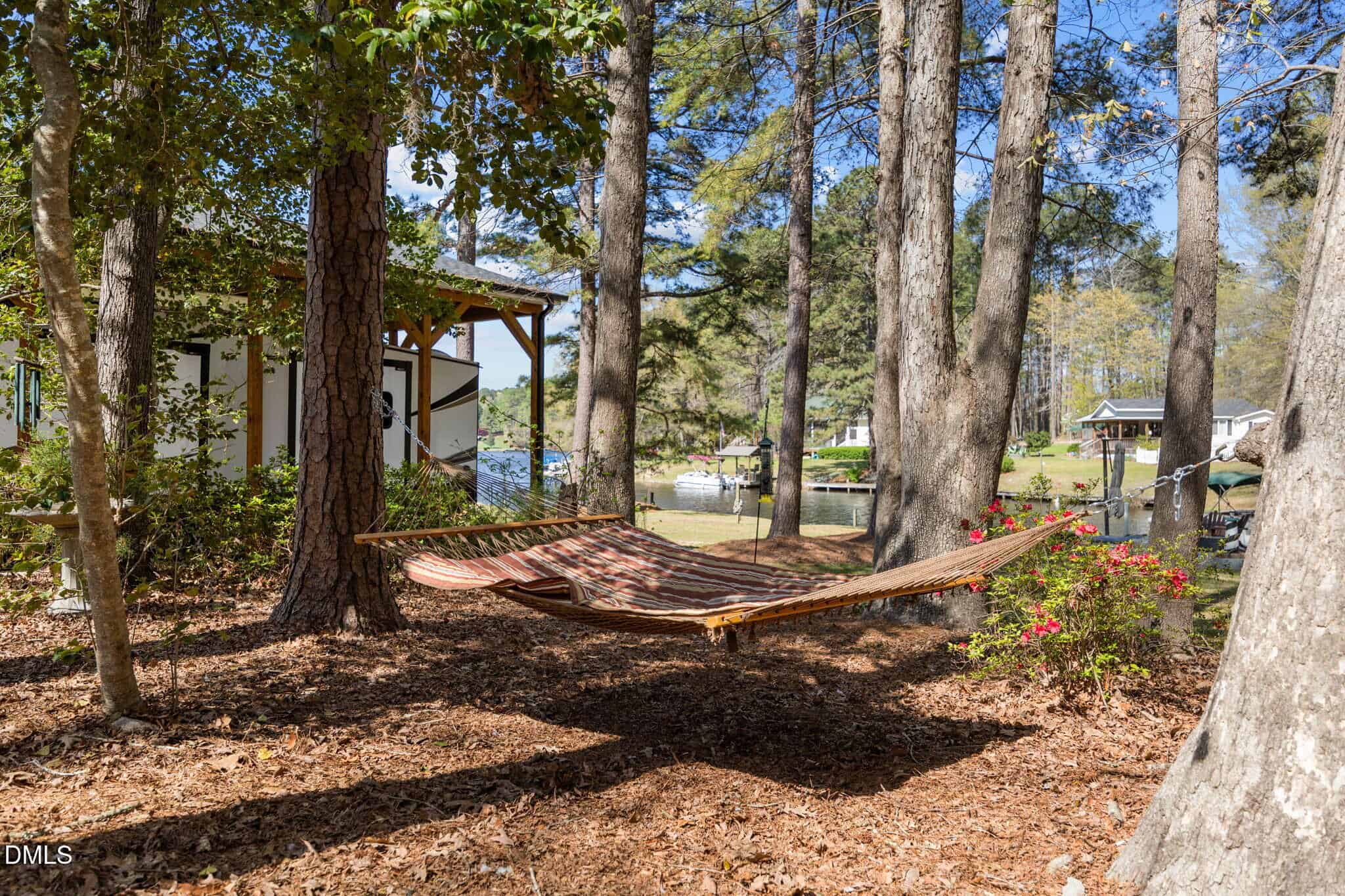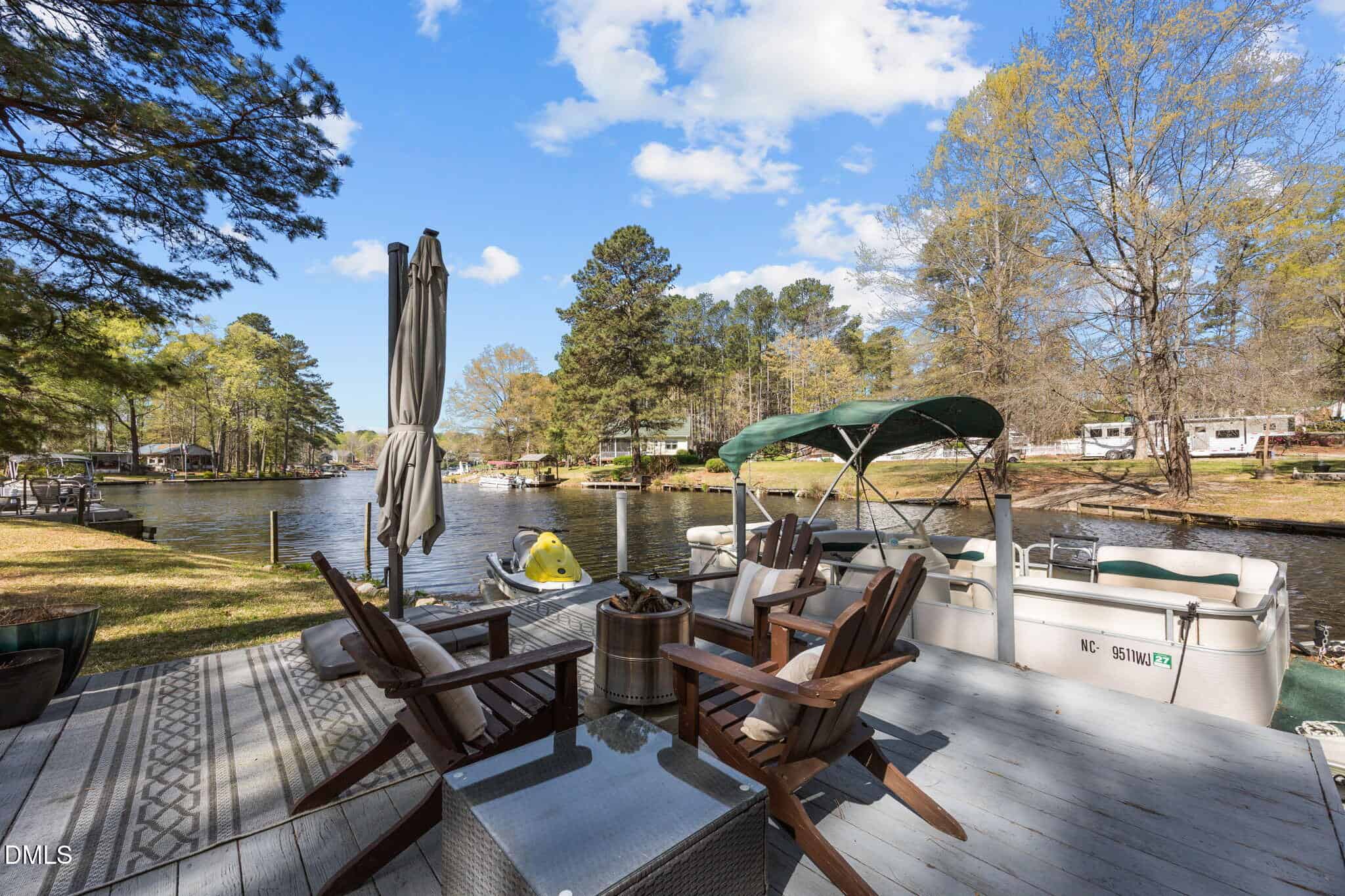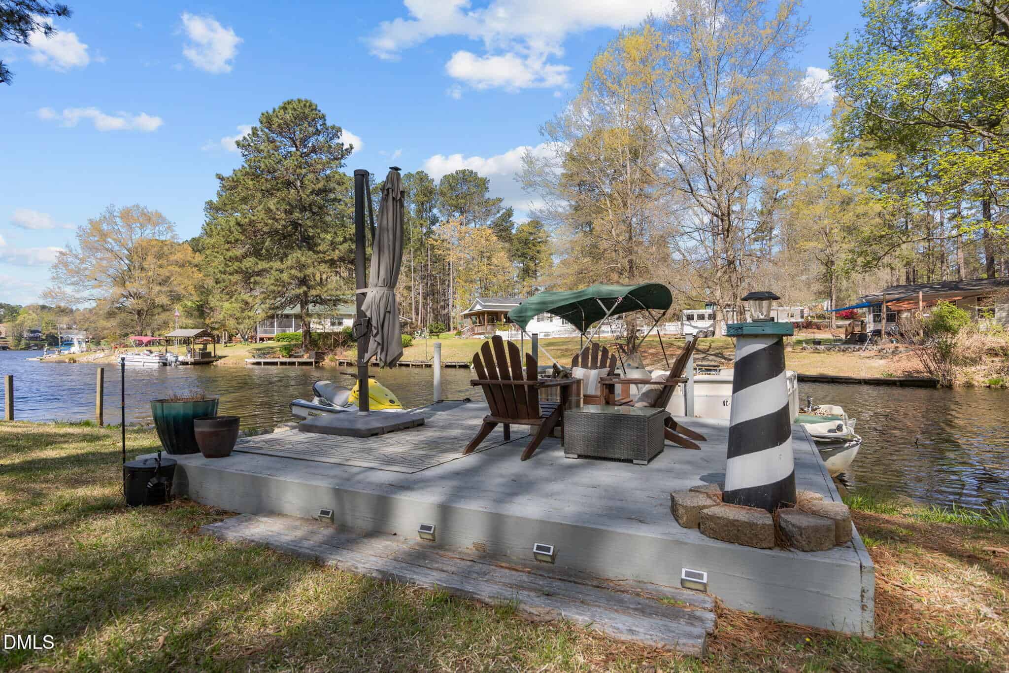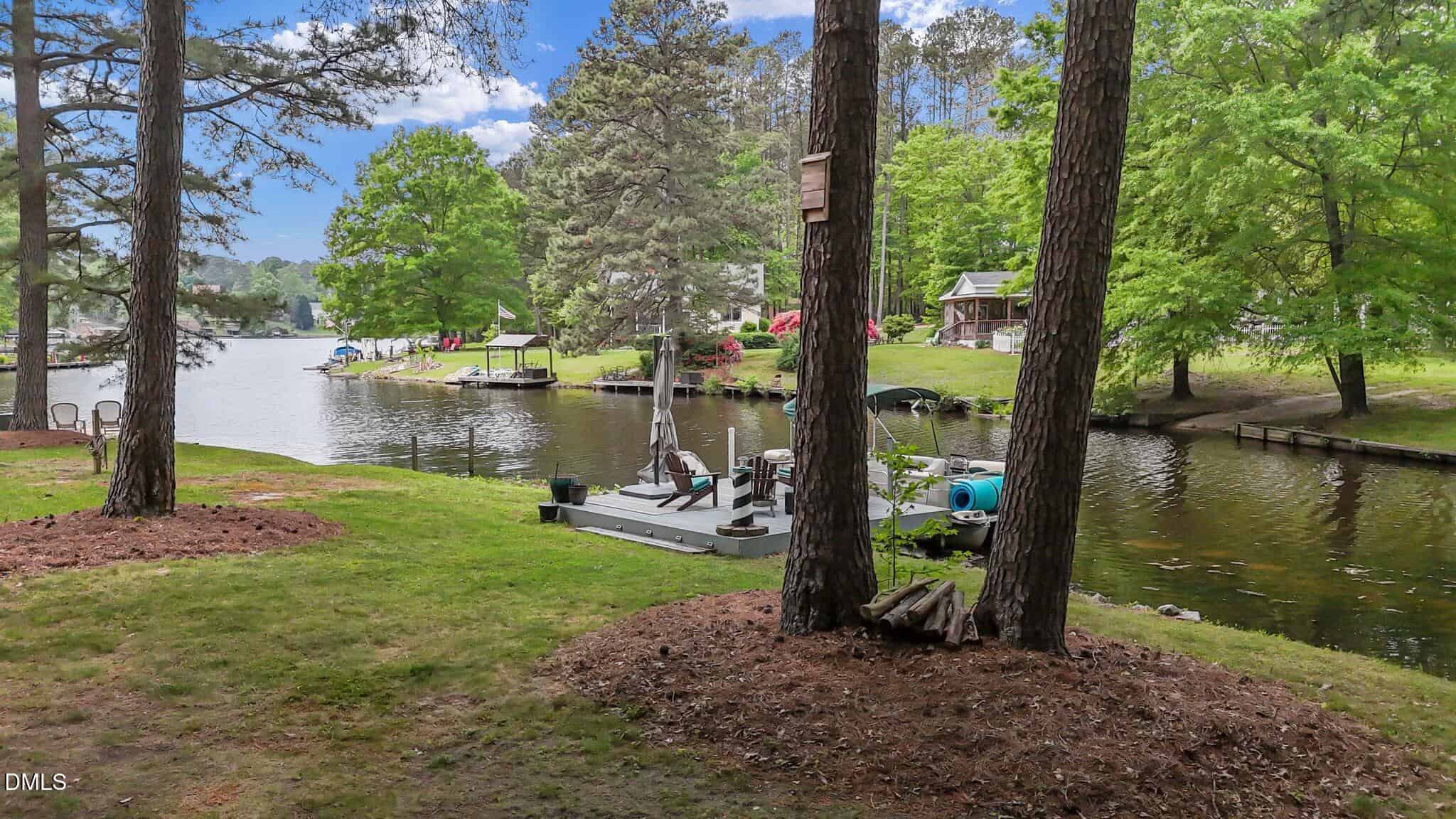 Enjoy lakefront living with this beautifully maintained camper with room addition and screened porch. This waterfront wooded property is located in a quiet cove in the private gated community of Lake Royale and comes with ALL the water toys that you will need to enjoy the lake. Pontoon boat with new motor, jet ski on floating dock, and even the kayaks with a kayak rack are all included!! The 1 bedroom/ 1 bath camper comes furnished with everything you need to start living the lake life indoors and out. The camper features a roof over, a screened porch, and a room addition that can be used as a second bedroom or additional living space. Outside you will find a beautifully landscaped property featuring a flag stone patio with picnic table and grill. There is a separate area closer to the water with a stone firepit with chairs and a view down the cove to the main part of the lake. You can store all your extra supplies in the wired shed located on the property. Lake Royale offers resort-style amenities, including a private police force and full-time maintenance department for the common areas. Residents enjoy access to the 345-acre lake for boating and fishing, tennis court, golf course, swimming pool, beaches, playgrounds, basketball, pickle ball, a clubhouse, and more. This is perfect as a weekend getaway. Come see it today!
