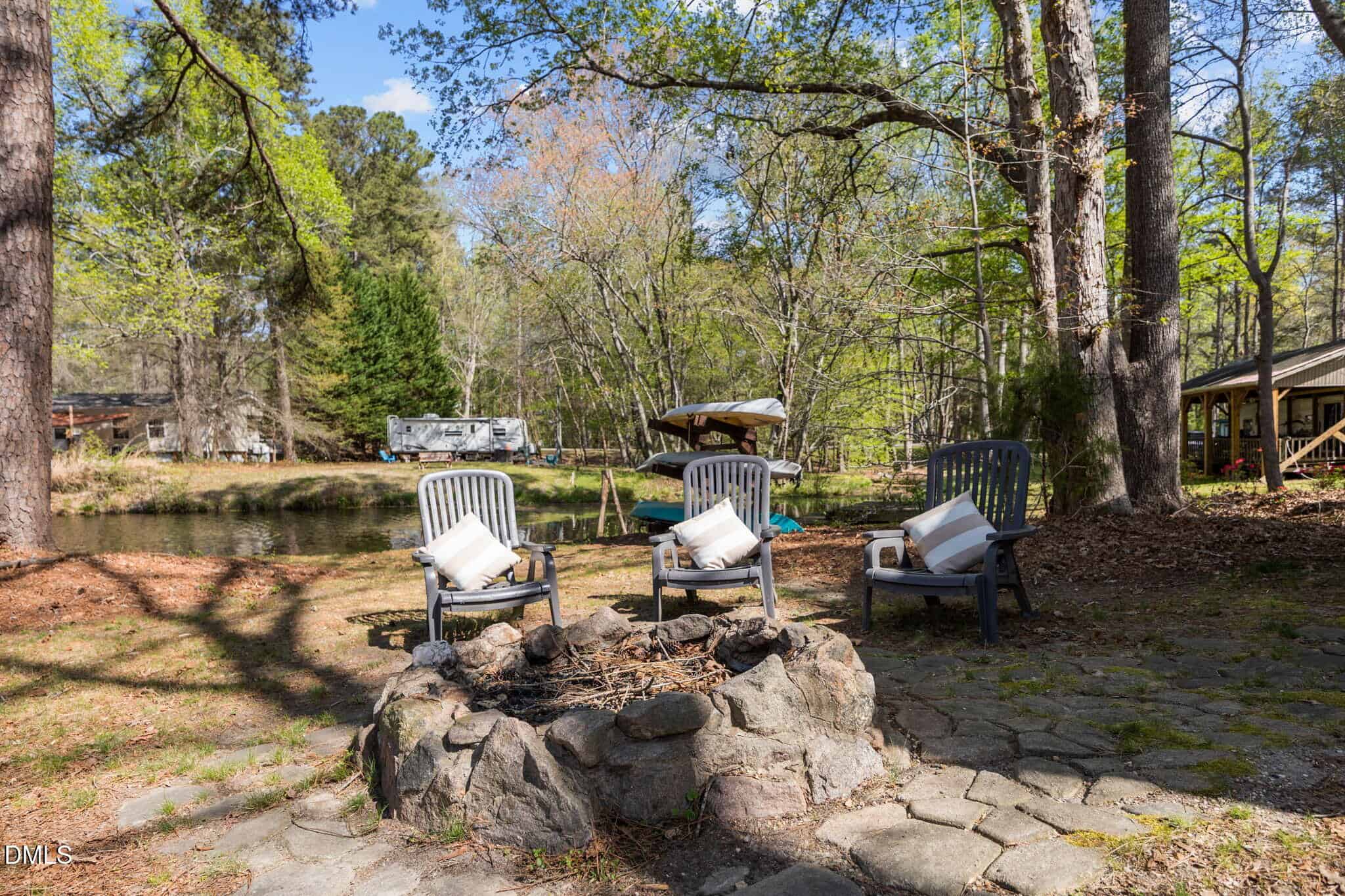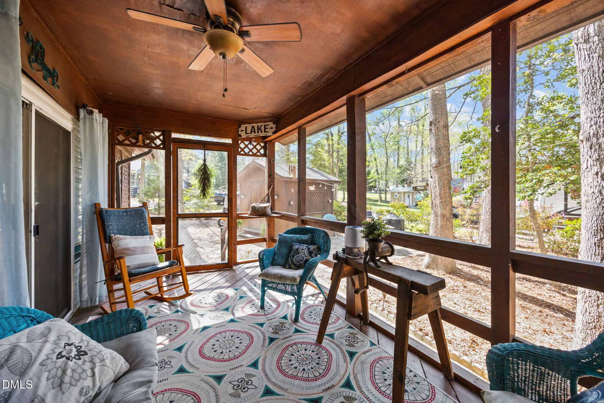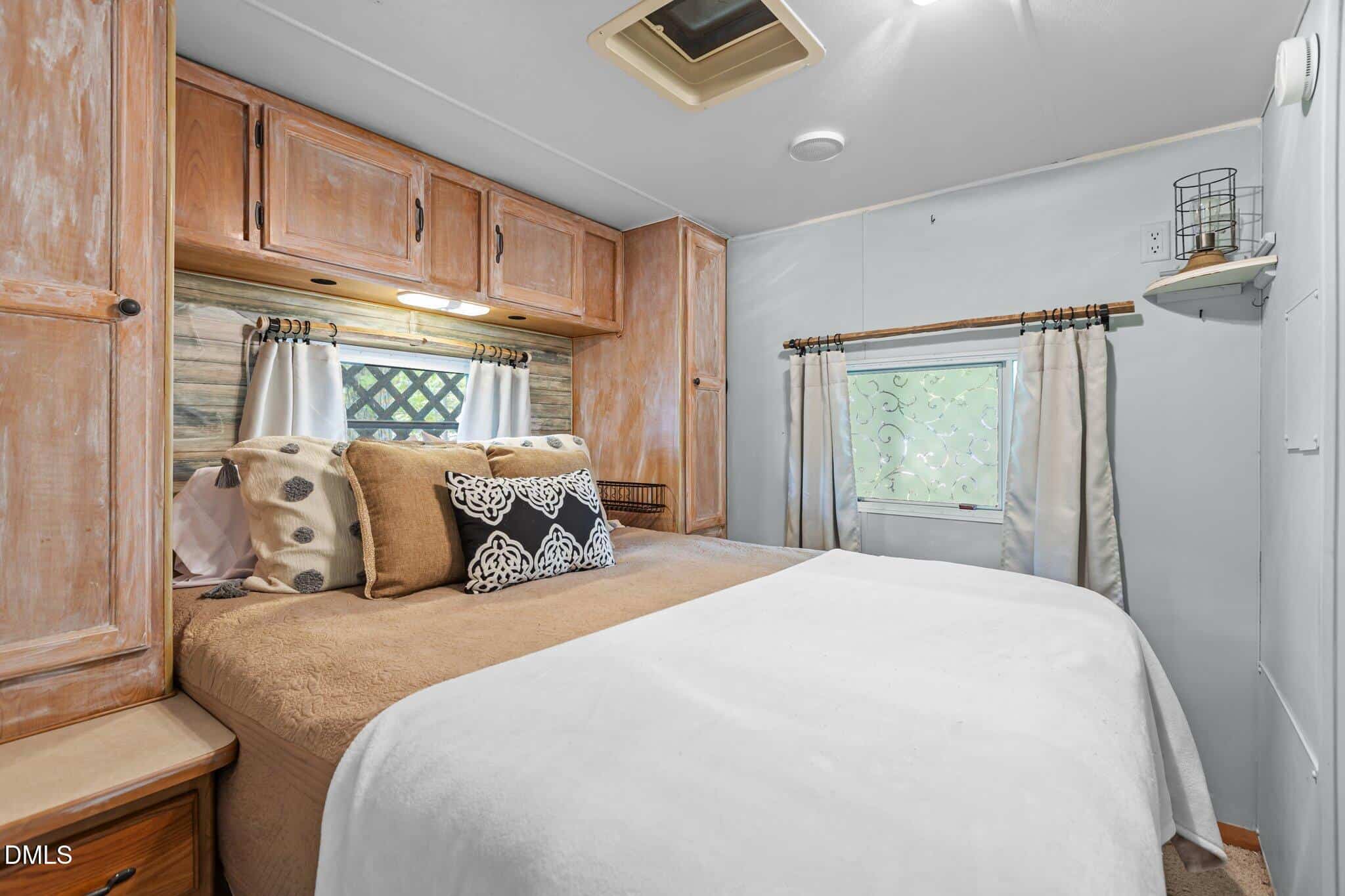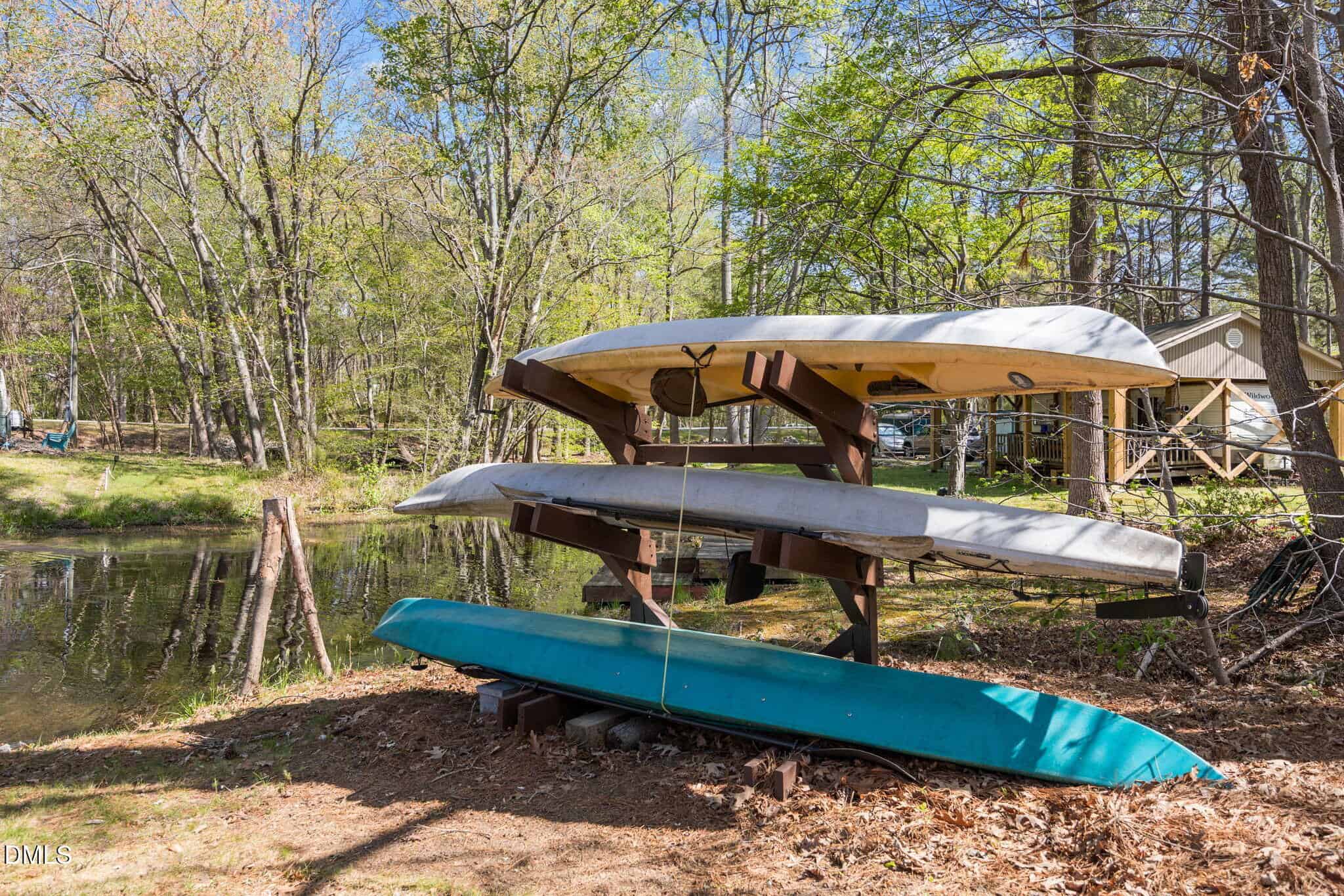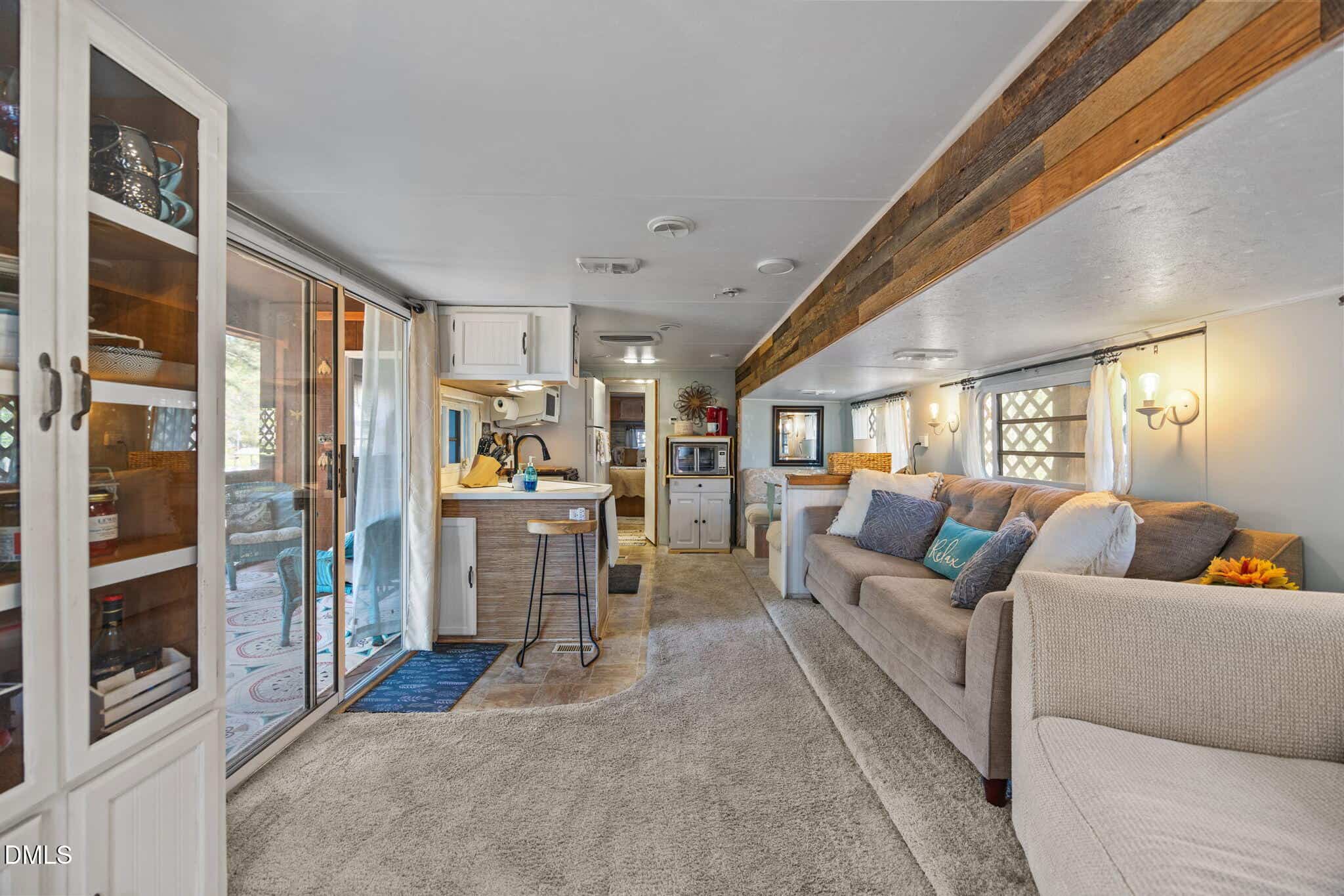 Enjoy lakefront living with this beautifully maintained camper with room addition and screened porch. This waterfront wooded property is located in a quiet cove in the private gated community of Lake Royale and comes with ALL the water toys that you will need to enjoy the lake. Pontoon boat with new motor, jet ski on floating dock, and even the kayaks with a kayak rack are all included!! The 1 bedroom/ 1 bath camper comes furnished with everything you need to start living the lake life indoors and out. The camper features a roof over, a screened porch, and a room addition that can be used as a second bedroom or additional living space. Outside you will find a beautifully landscaped property featuring a flag stone patio with picnic table and grill. There is a separate area closer to the water with a stone firepit with chairs and a view down the cove to the main part of the lake. You can store all your extra supplies in the wired shed located on the property. Lake Royale offers resort-style amenities, including a private police force and full-time maintenance department for the common areas. Residents enjoy access to the 345-acre lake for boating and fishing, tennis court, golf course, swimming pool, beaches, playgrounds, basketball, pickle ball, a clubhouse, and more. This is perfect as a weekend getaway. Come see it today!