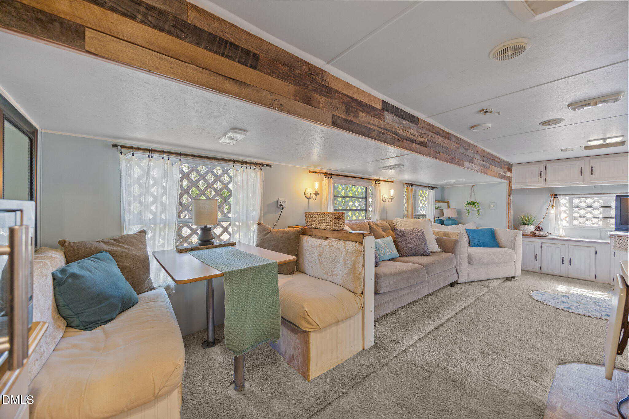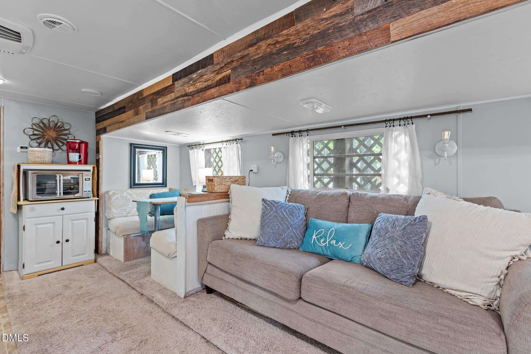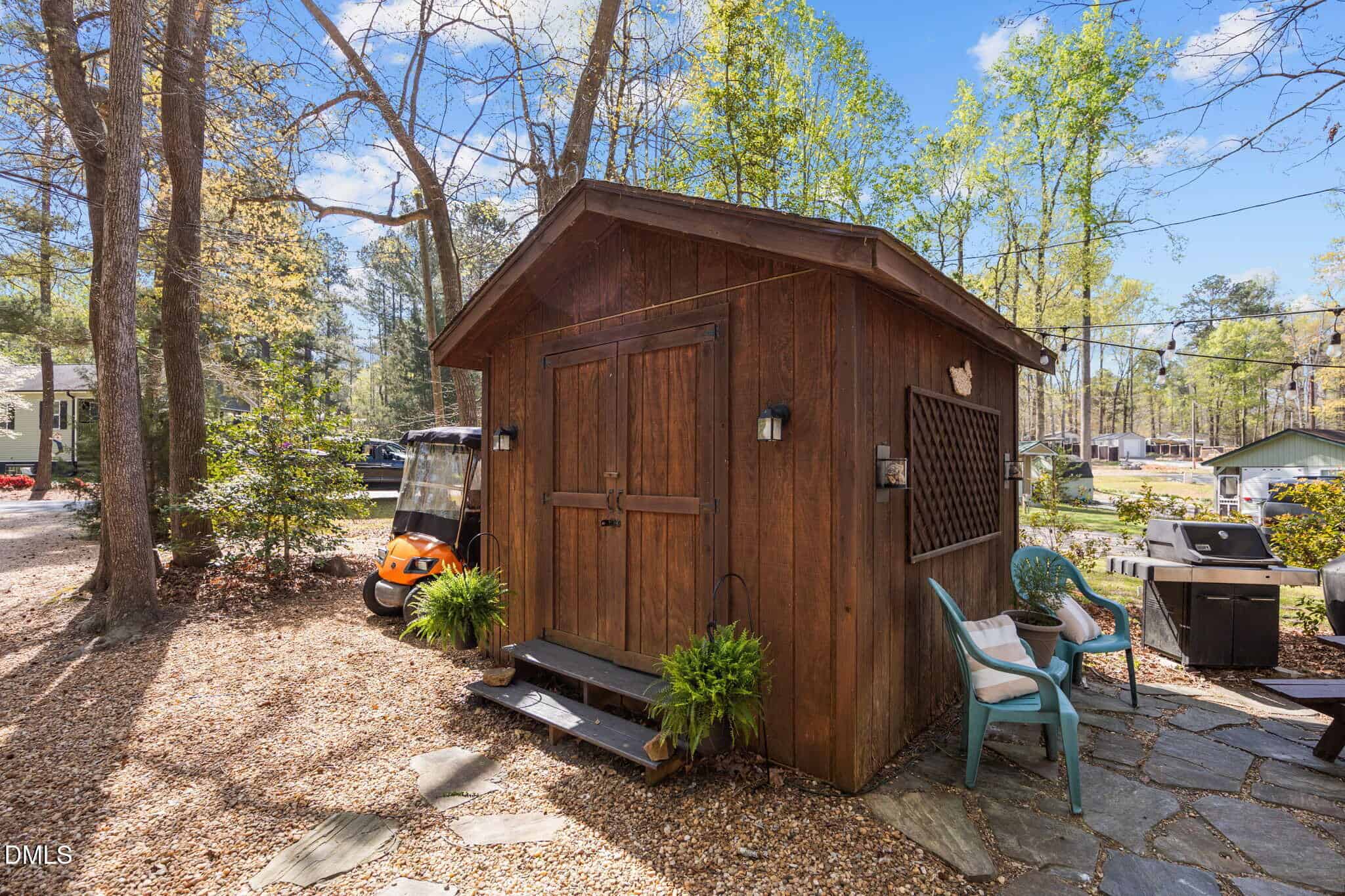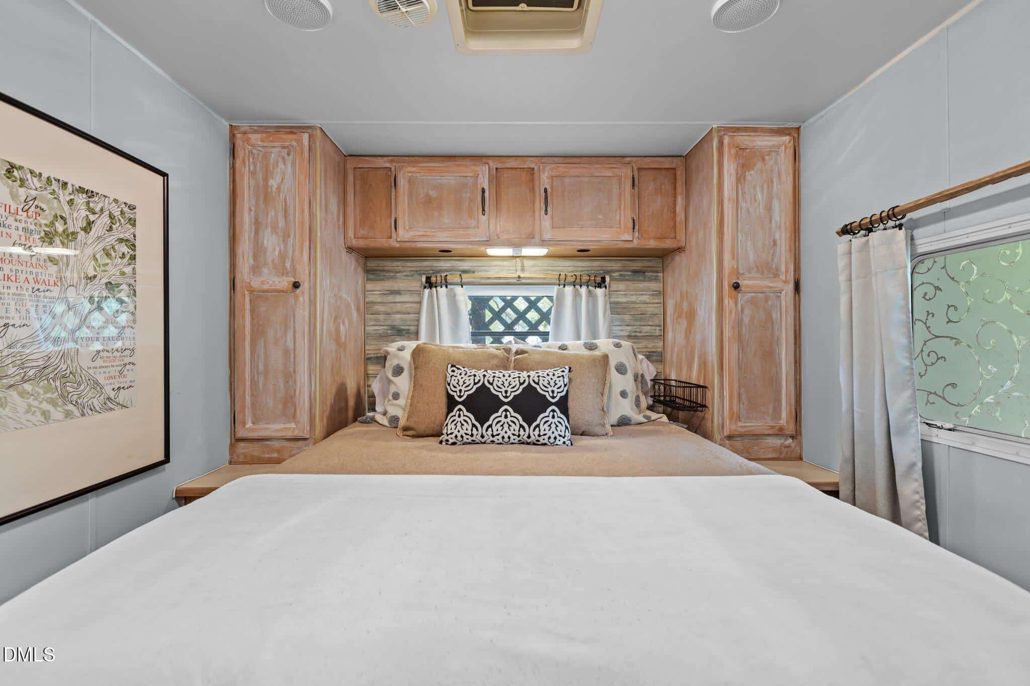 Enjoy lakefront living with this beautifully maintained camper with room addition and screened porch. This waterfront wooded property is located in a quiet cove in the private gated community of Lake Royale and comes with ALL the water toys that you will need to enjoy the lake. Pontoon boat with new motor, jet ski on floating dock, and even the kayaks with a kayak rack are all included!! The 1 bedroom/ 1 bath camper comes furnished with everything you need to start living the lake life indoors and out. The camper features a roof over, a screened porch, and a room addition that can be used as a second bedroom or additional living space. Outside you will find a beautifully landscaped property featuring a flag stone patio with picnic table and grill. There is a separate area closer to the water with a stone firepit with chairs and a view down the cove to the main part of the lake. You can store all your extra supplies in the wired shed located on the property. Lake Royale offers resort-style amenities, including a private police force and full-time maintenance department for the common areas. Residents enjoy access to the 345-acre lake for boating and fishing, tennis court, golf course, swimming pool, beaches, playgrounds, basketball, pickle ball, a clubhouse, and more. This is perfect as a weekend getaway. Come see it today!