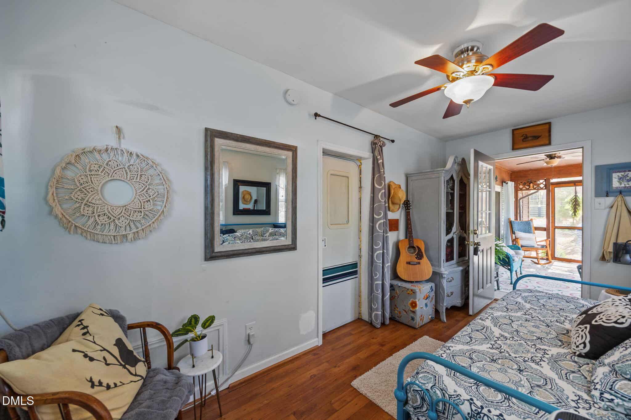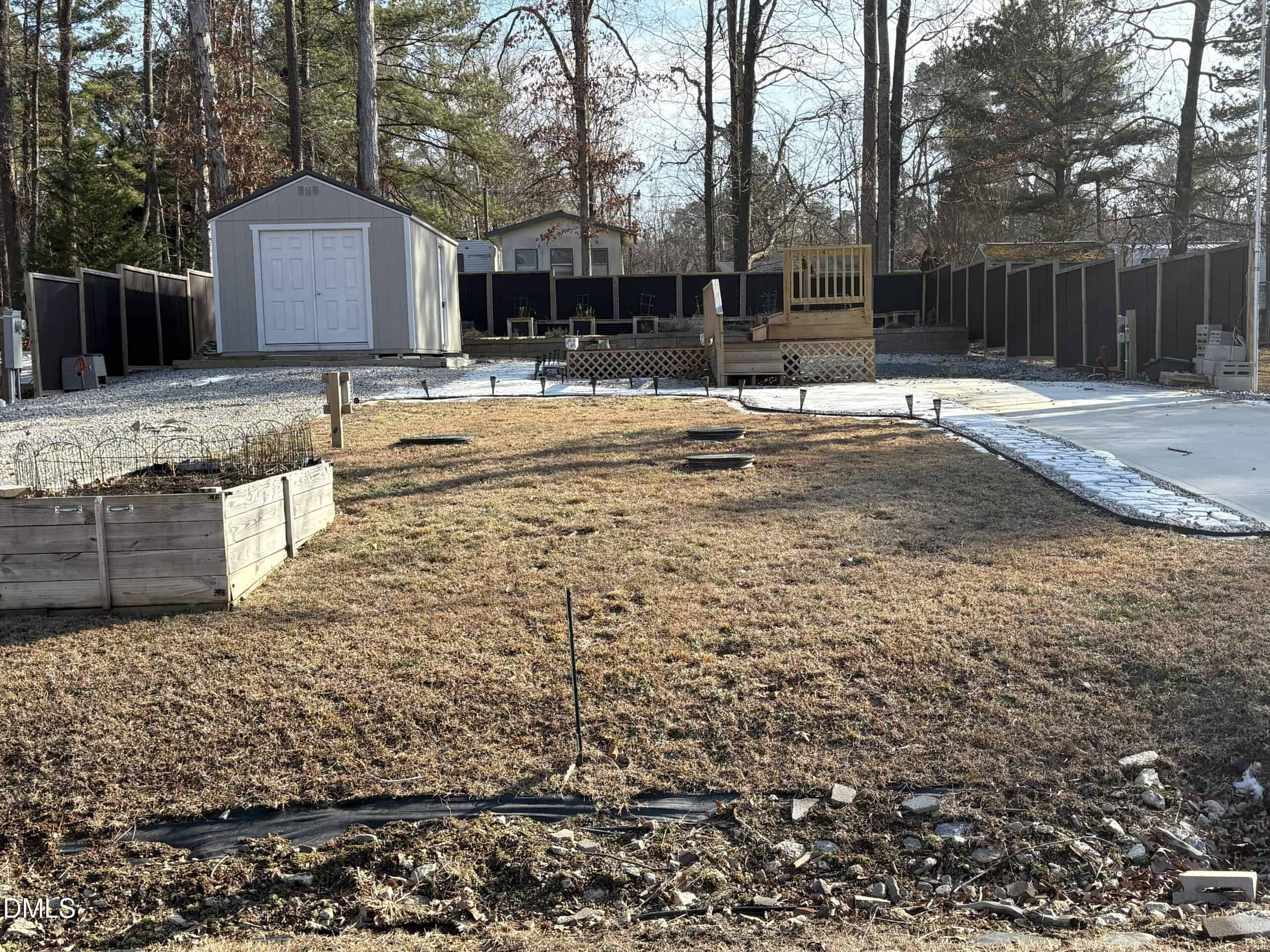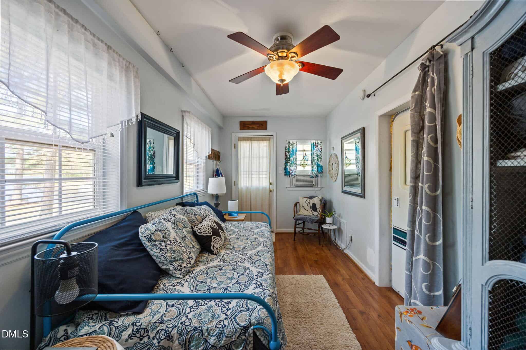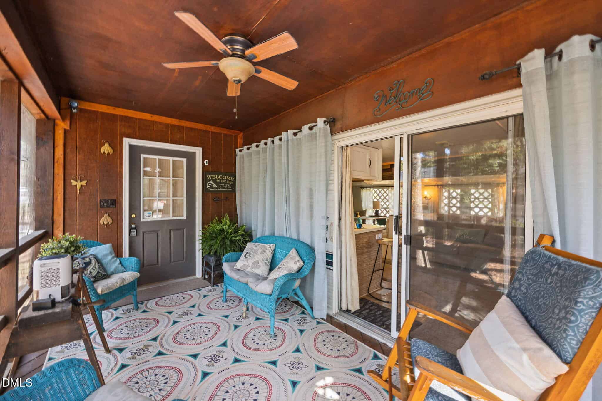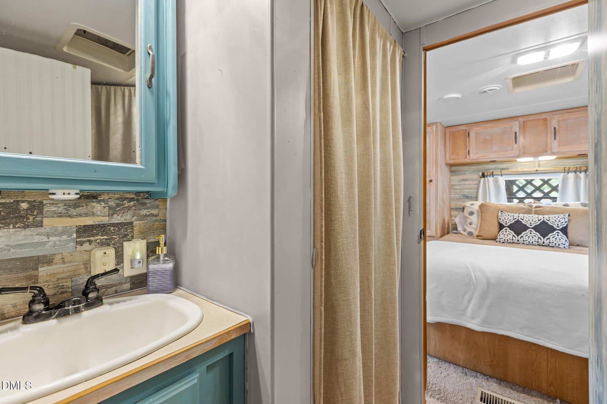 Enjoy lakefront living with this beautifully maintained camper with room addition and screened porch. This waterfront wooded property is located in a quiet cove in the private gated community of Lake Royale and comes with ALL the water toys that you will need to enjoy the lake. Pontoon boat with new motor, jet ski on floating dock, and even the kayaks with a kayak rack are all included!! The 1 bedroom/ 1 bath camper comes furnished with everything you need to start living the lake life indoors and out. The camper features a roof over, a screened porch, and a room addition that can be used as a second bedroom or additional living space. Outside you will find a beautifully landscaped property featuring a flag stone patio with picnic table and grill. There is a separate area closer to the water with a stone firepit with chairs and a view down the cove to the main part of the lake. You can store all your extra supplies in the wired shed located on the property. Lake Royale offers resort-style amenities, including a private police force and full-time maintenance department for the common areas. Residents enjoy access to the 345-acre lake for boating and fishing, tennis court, golf course, swimming pool, beaches, playgrounds, basketball, pickle ball, a clubhouse, and more. This is perfect as a weekend getaway. Come see it today!