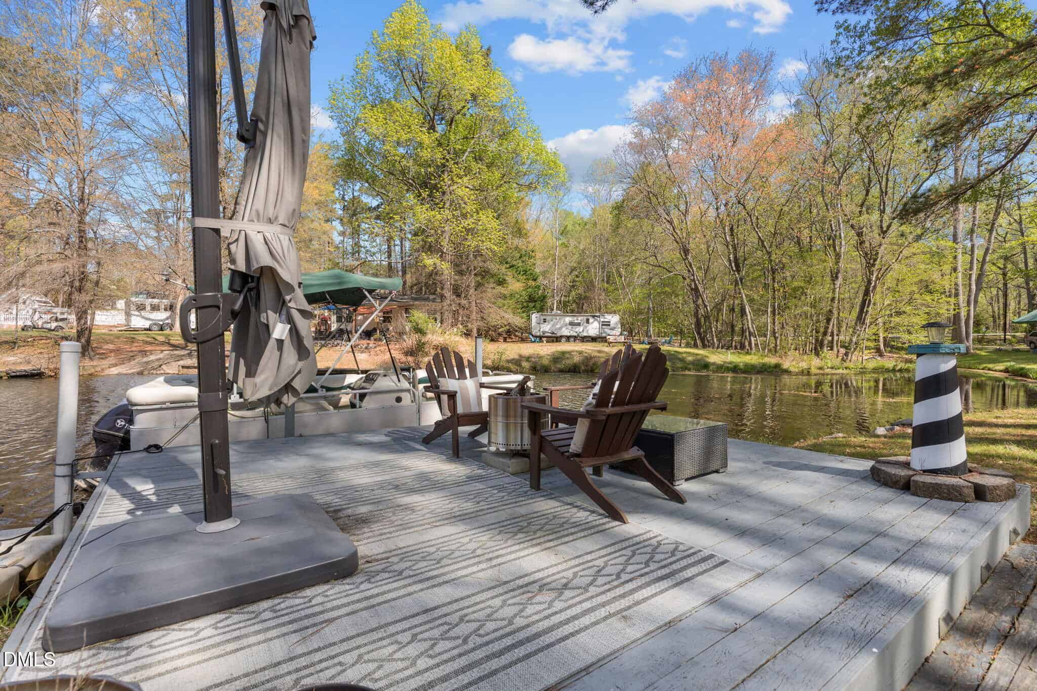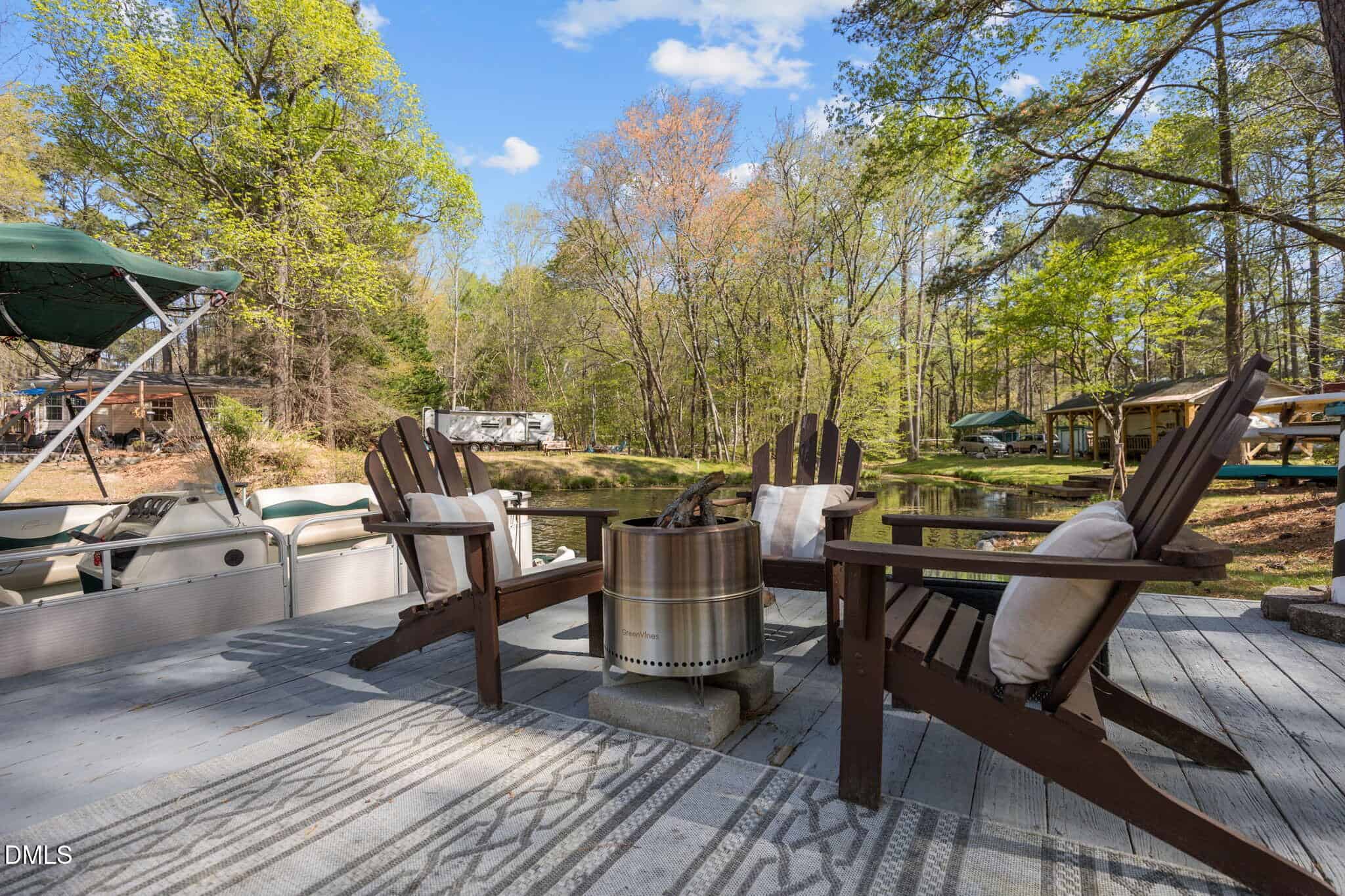 Enjoy lakefront living with this beautifully maintained camper with room addition and screened porch. This waterfront wooded property is located in a quiet cove in the private gated community of Lake Royale and comes with ALL the water toys that you will need to enjoy the lake. Pontoon boat with new motor, jet ski on floating dock, and even the kayaks with a kayak rack are all included!!