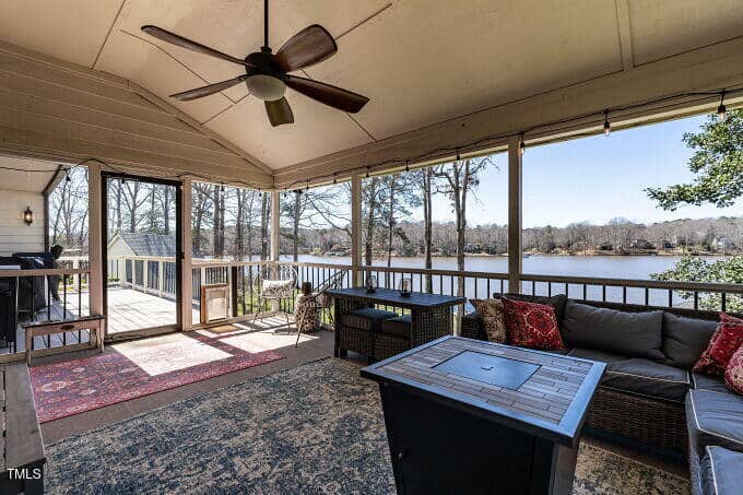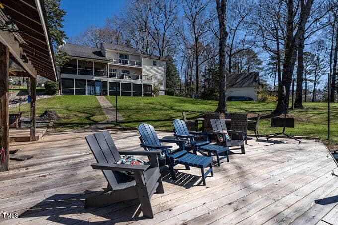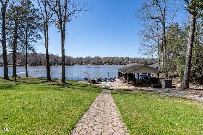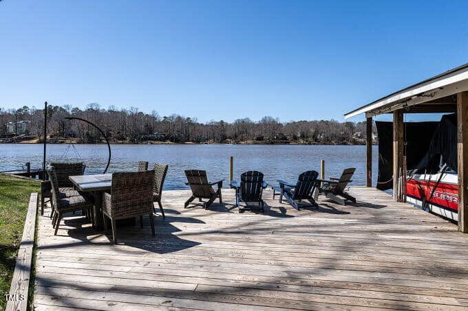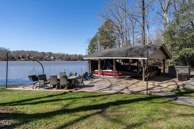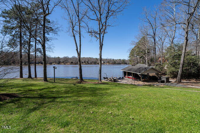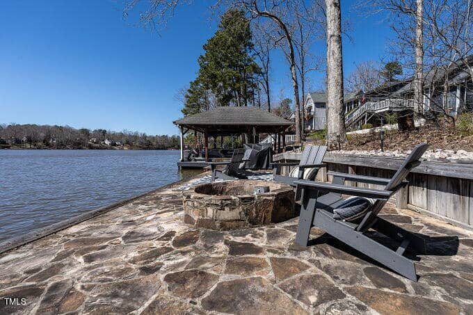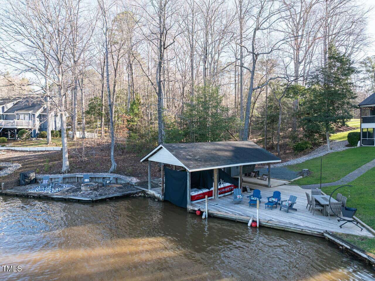 Lake Living at its best with nearly 300 feet of lakefront on a quiet cove featuring a boat house, waterfront deck and Fire pit area. Enjoy breathtaking sunrises and serene evening sunsets over this stunning 1.15-acre lakefront retreat! This picturesque four-bedroom home boasts approximately 2800 sq feet over 3 levels offering the perfect setting for relaxation and recreation. The full-sized dock(built in 2024) with a boat house and lift provides easy access to the lake, while a stone patio with a built-in fire-pit creates the ideal space for cozy lakeside gatherings.