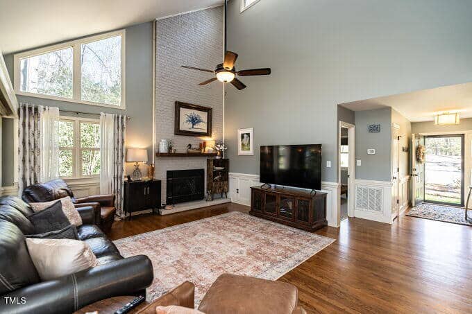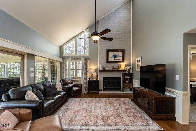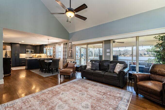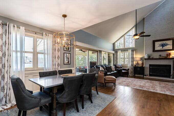 Inside, this beautifully renovated home shines with thoughtful upgrades. New Pella windows (installed in 2024) invite in natural light, and the fully remodeled kitchen (completed in 2022) features gourmet appliances and custom cabinetry, making it a chef’s dream. This 4 bedroom 3 bath home has a spacious great room, with soaring ceilings and one of the home’s two fireplaces, which flows seamlessly into the kitchen and opens to a screened porch overlooking the lake. The main level also includes two bedrooms and a full bath.