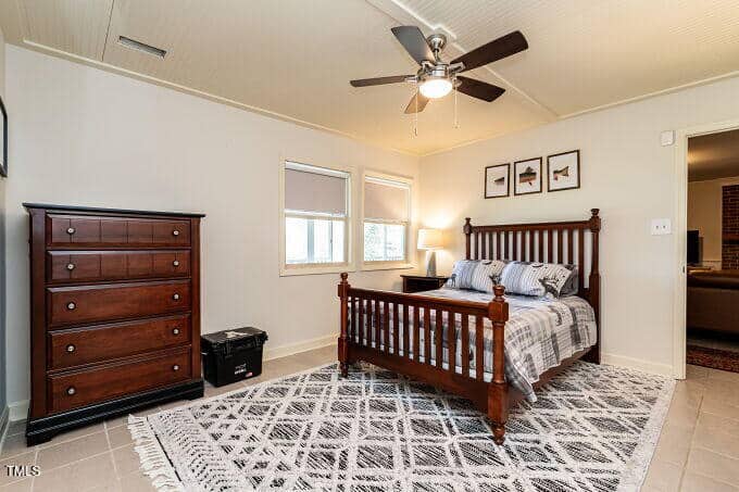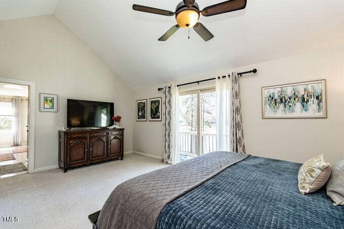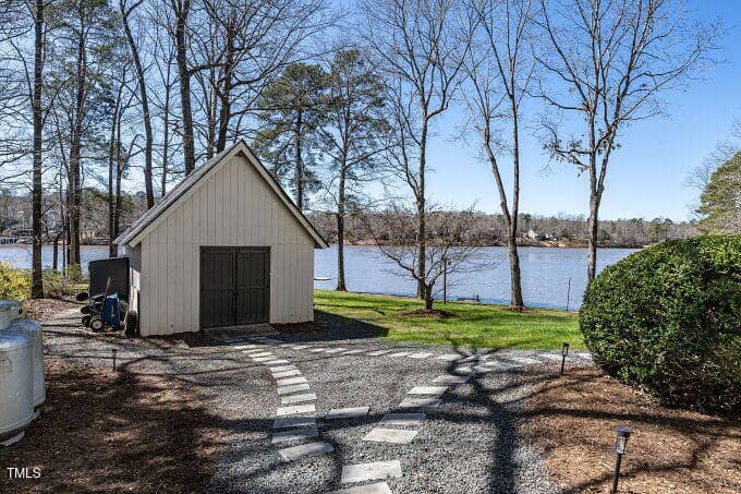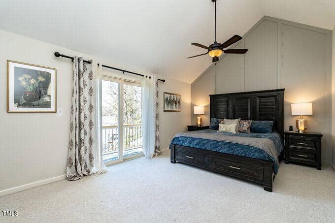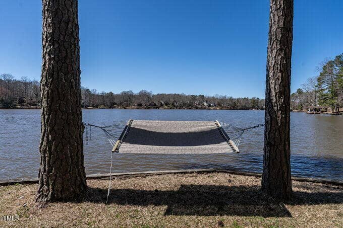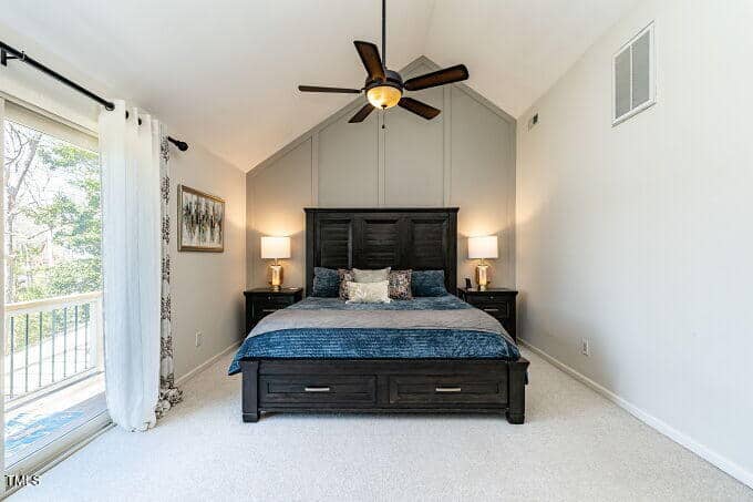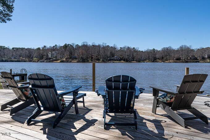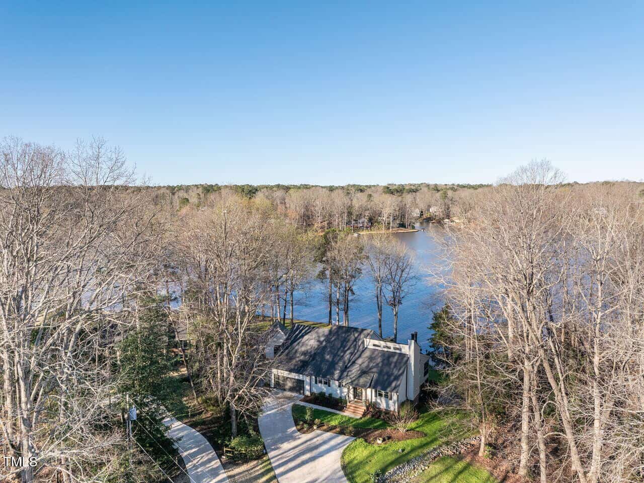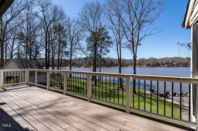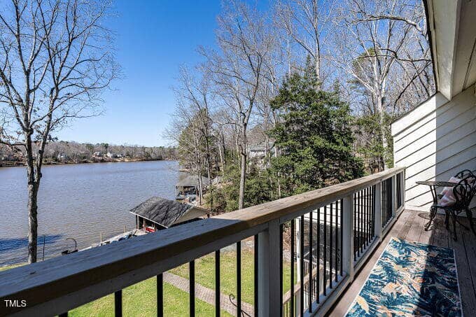 The master suite occupies the second floor and offers a private retreat and fantastic views of the lake from the private balcony. The primary bedroom features a vaulted ceiling with a beautiful accent wall. The spa-like primary bath also provides a stunning lake view.