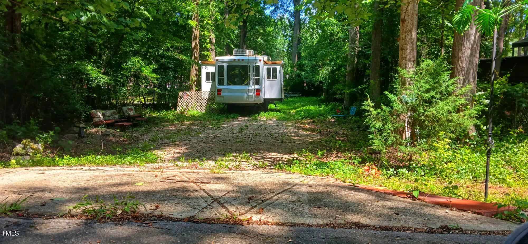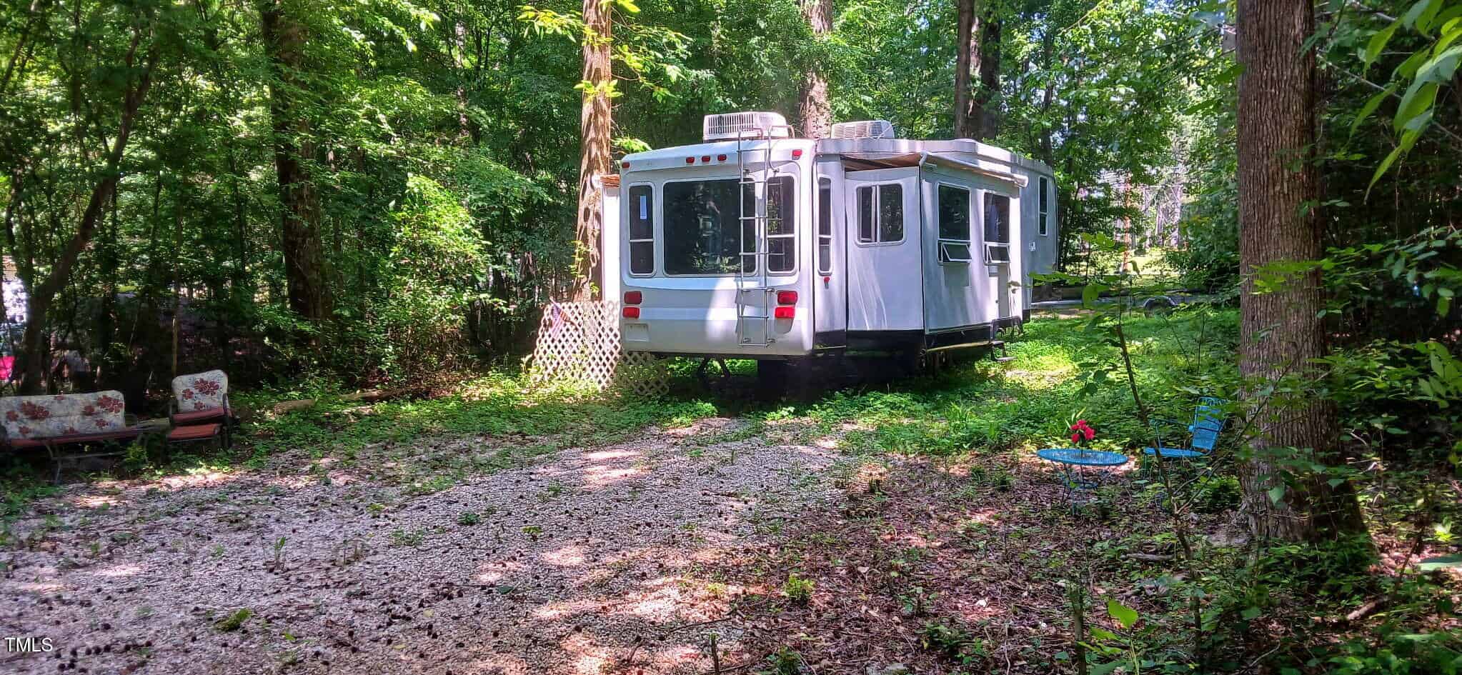 This desirable multi use/camping lot is located in the north end of Lake Royale which offers a naturistic and private setting . The lot is mostly flat, and cleared . Also already has a concrete apron and newly done gravel driveway that allows the ease and accessibility to place up to two campers if desired. Comes with a customized remodeled McKenzie Lakota 36ft 5th wheel with 3 slide out to give you more usable space as well as extra storage space. Gives you the feel of a park model. It has a factory installed metal roof for extra protection from the elements ,a 30 gallon portable waste tank already hooked up to the 5th wheel. Conveniently located near the comfort stations for portable waste tank disposal. Power pole already installed .Come take a look at this wonderful lot in the gated community! Lake Royale has many amenities for the members of the community to enjoy! We have Beaches, pool, tennis court, putt putt, playgrounds, outdoor gym, Pickleball court, and basketball courts and much more!