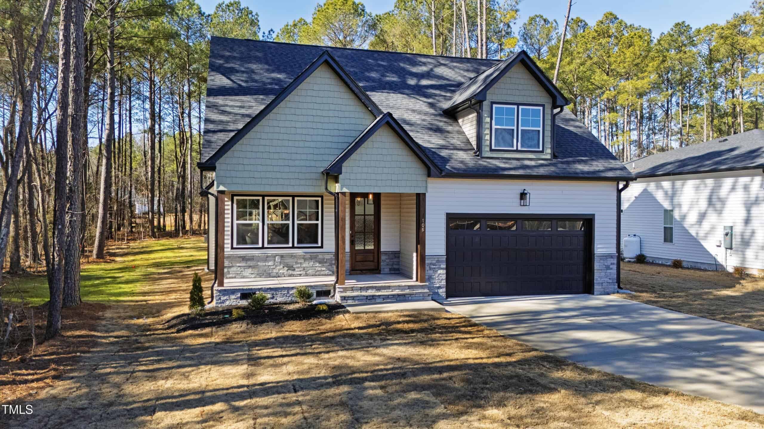 Welcome to your dream home, ”Custom Built by Ken Harvey Homes!” This stunning residence boasts a huge rocking chair front porch, perfect for relaxing afternoons. Step inside to discover a main level study with a closet, ideal for a home office. Enjoy wide plank waterproof LVP floors and crown molding throughout the main living areas, providing a touch of elegance and durability. The kitchen is a chef’s delight, featuring custom ‘White Satin’ painted cabinets with cove crown molding, ‘Miami White’ granite countertops, and a 2×4 ‘Dove’ hexagon vertical tile backsplash. It also includes a double trash cabinet, single bowl stainless steel sink with a pull-out faucet, recessed lighting, a barn-door walk-in pantry, and stainless steel appliances. The main level primary suite is a true retreat, offering a ceiling fan with remote, crown molding, and a spacious walk-in closet. The primary bath features a 13×13 ‘Glacier White’ diagonal lay tile floor, a dual vanity with ‘Niagra’ quartz countertops, and a 12×24 ‘Glacier’ vertical lay tile surround walk-in shower with a niche. The family room, perfect for gatherings, includes a black slate surround Marquis gas log fireplace with a Wescott mantle and a ceiling fan. French doors lead to a covered porch, ideal for outdoor entertainment. Upstairs, you’ll find an additional bedroom, a large game room, and convenient walk-in storage.