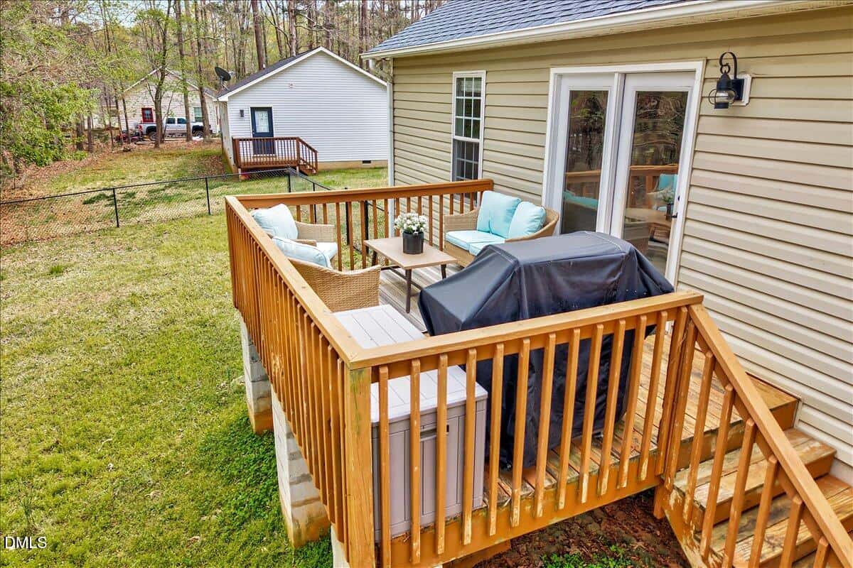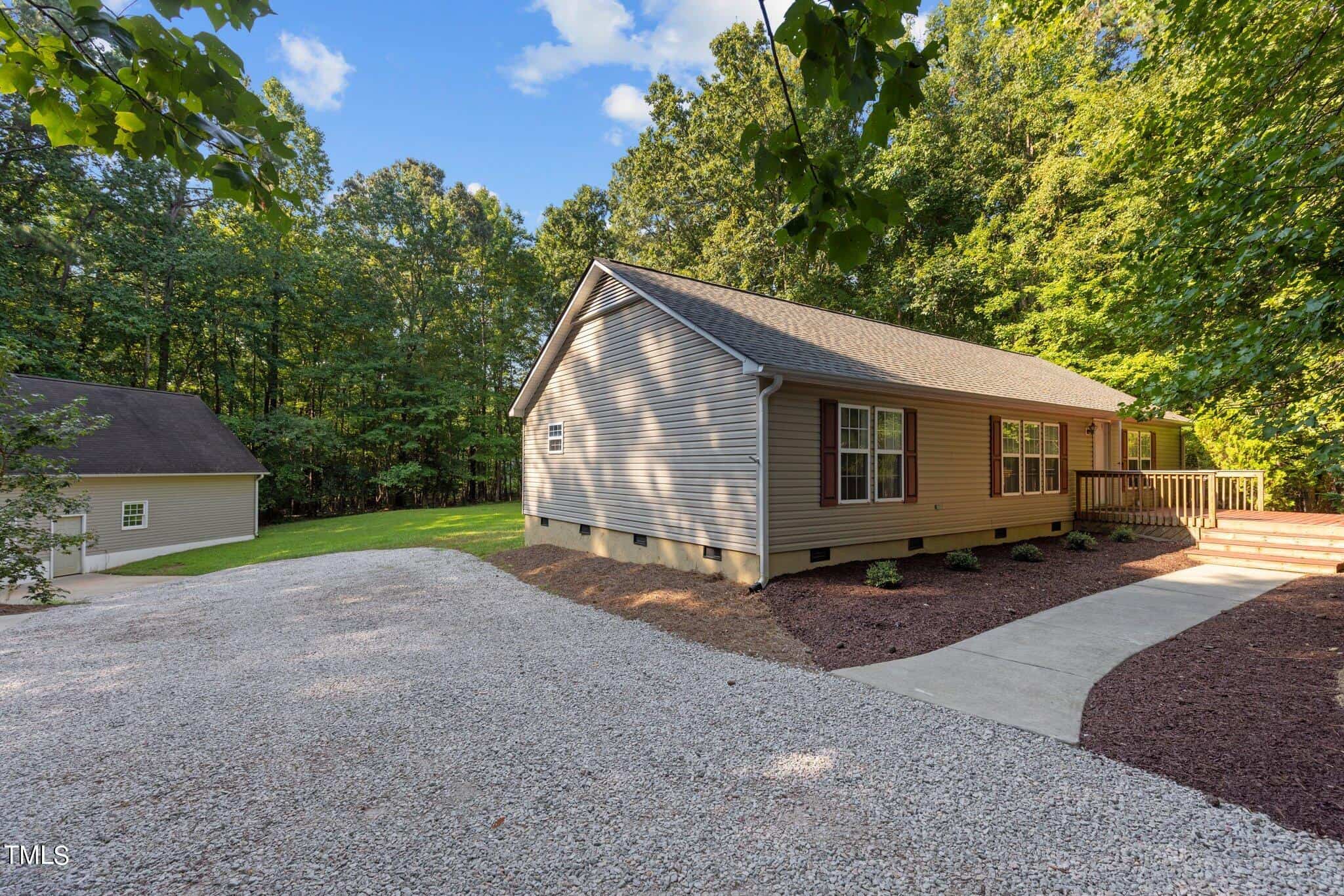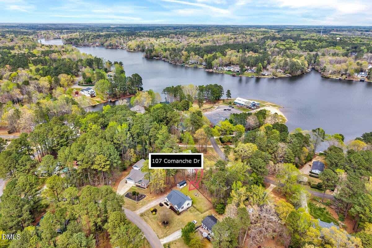 Ever wish for one of those places where you could be like a kid again–relax, unwind, and not have a care in the world? Well, that place might be closer than you think. Nestled within Lake Royale, a private, gated community featuring an 18-hole championship golf course (FREE for residents and included as part of yearly amenity fee) and a 345-acre lake, you’ll enjoy amenities like boating, fishing, swimming, and jet skiing–all tucked away from the hustle and bustle, yet conveniently located just a short drive to Raleigh, Wake Forest, and surrounding areas for shopping, dining, and everyday essentials. They say location is everything, and that’s exactly what this 3-bed, 2-bath RANCH home delivers. With close proximity to the lake, clubhouse, and beach–literally within walking distance–you’ll be hard-pressed to find a better spot. And with major updates already taken care of, including HVAC condenser & air handler (2024), sealed crawlspace with vapor barrier (2024), whole-house carbon water filtration system with pre-filter (2024), septic system distribution box (2024), and roof with transferrable warranty (2021), you can move in with confidence knowing the heavy lifting has already been done. Inside, the home has been lovingly updated and thoughtfully maintained. Enjoy updated kitchen tile backsplash (2025) paired with stainless steel appliances, gorgeous ceramic tile flooring in office (2025) & guest bedroom carpet (2025), stylish shiplap accent in the guest bathroom, updated light fixtures & ceiling fans (2025), and upgraded closet organizers. Plus, it’s the behind-the-scenes improvements–like ductwork cleaning, exterior power washing & new front porch railing (2026)–that add to the home’s overall comfort and care. Outside you’ll find even more to love. Situated on just under half an acre (.4 acres), the FULLY FENCED yard offers plenty of space to relax or entertain and the extra-large SHED CONVEYS! Whether you’re gathered around the firepit, grilling on the deck, or enjoying a game of cornhole, this backyard is ready for making memories. Experience lake-life living every day in this peaceful, wooded setting at Lake Royale–where nature, comfort, and community really do come together.