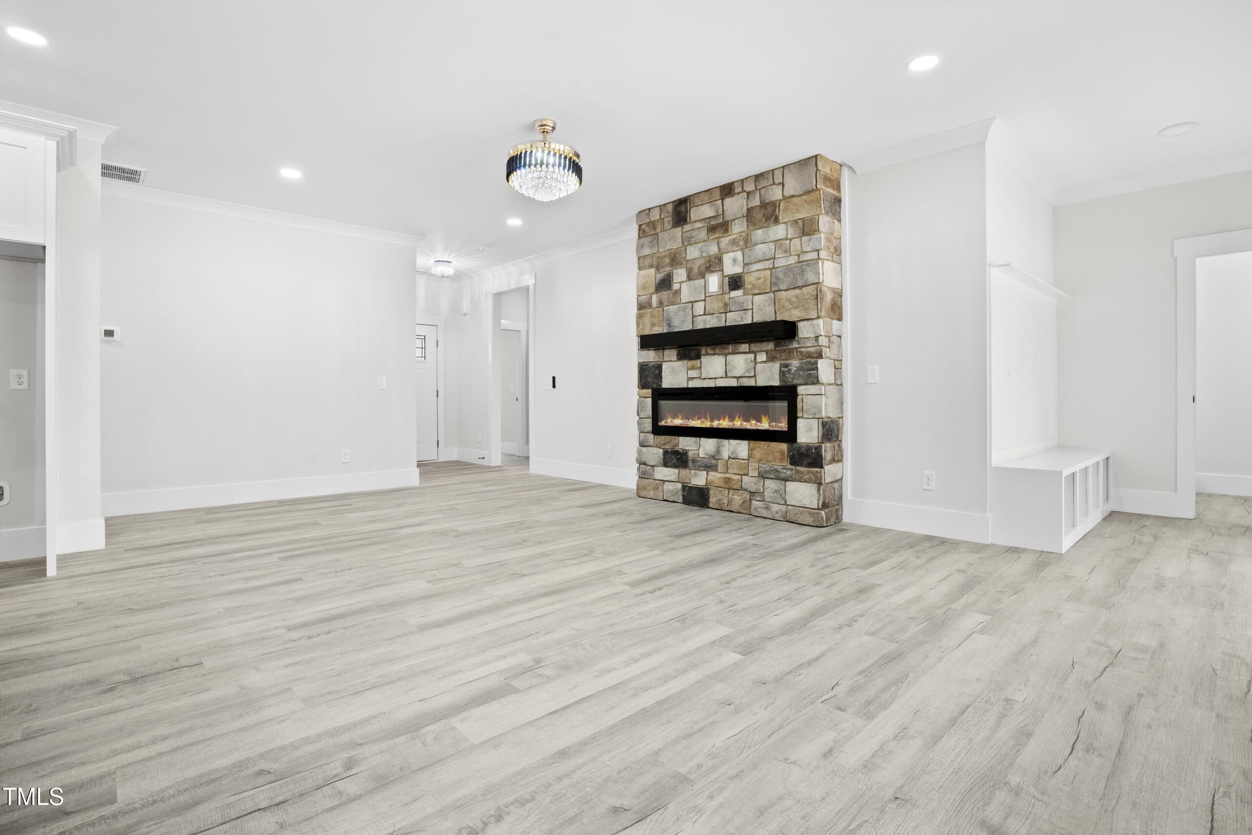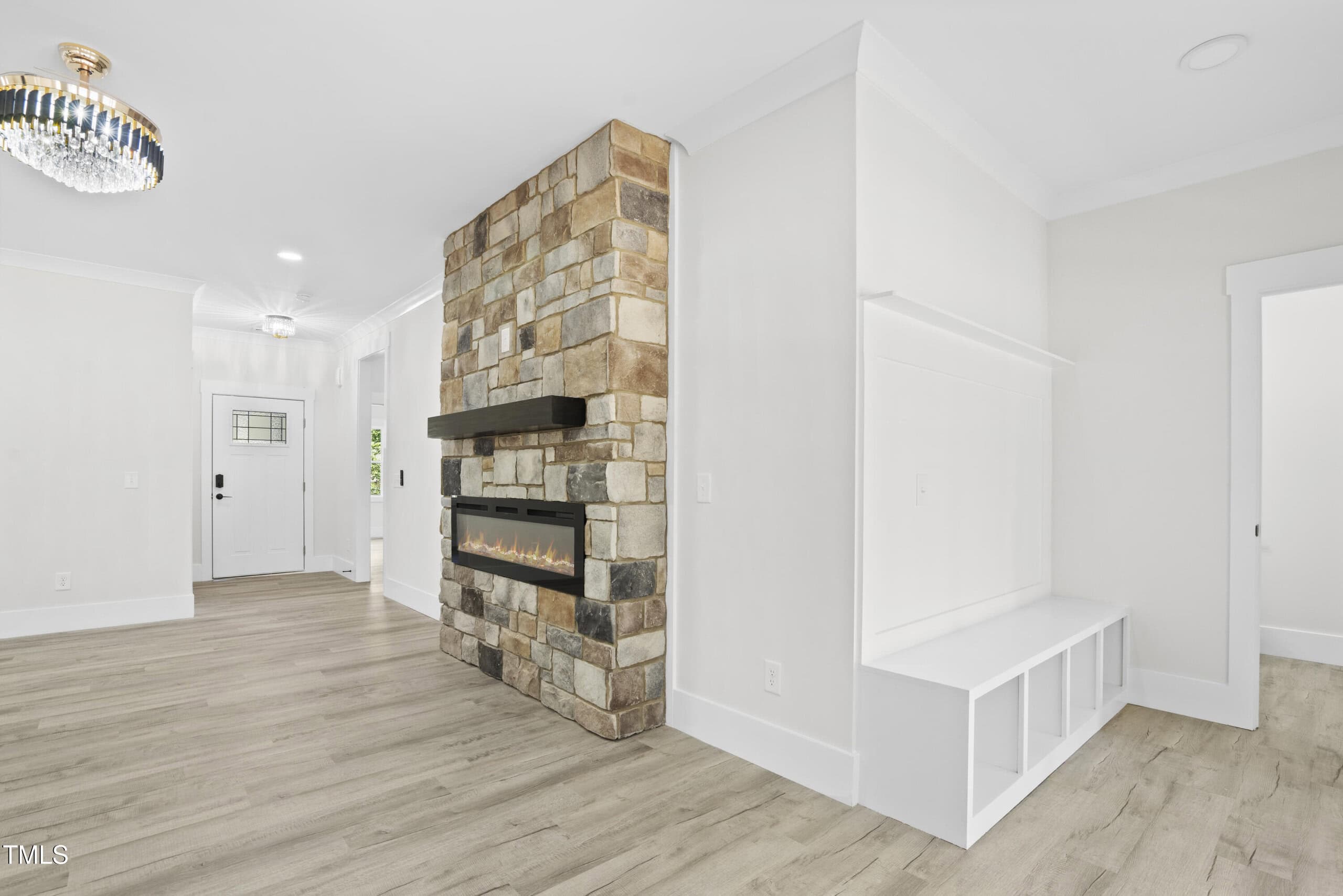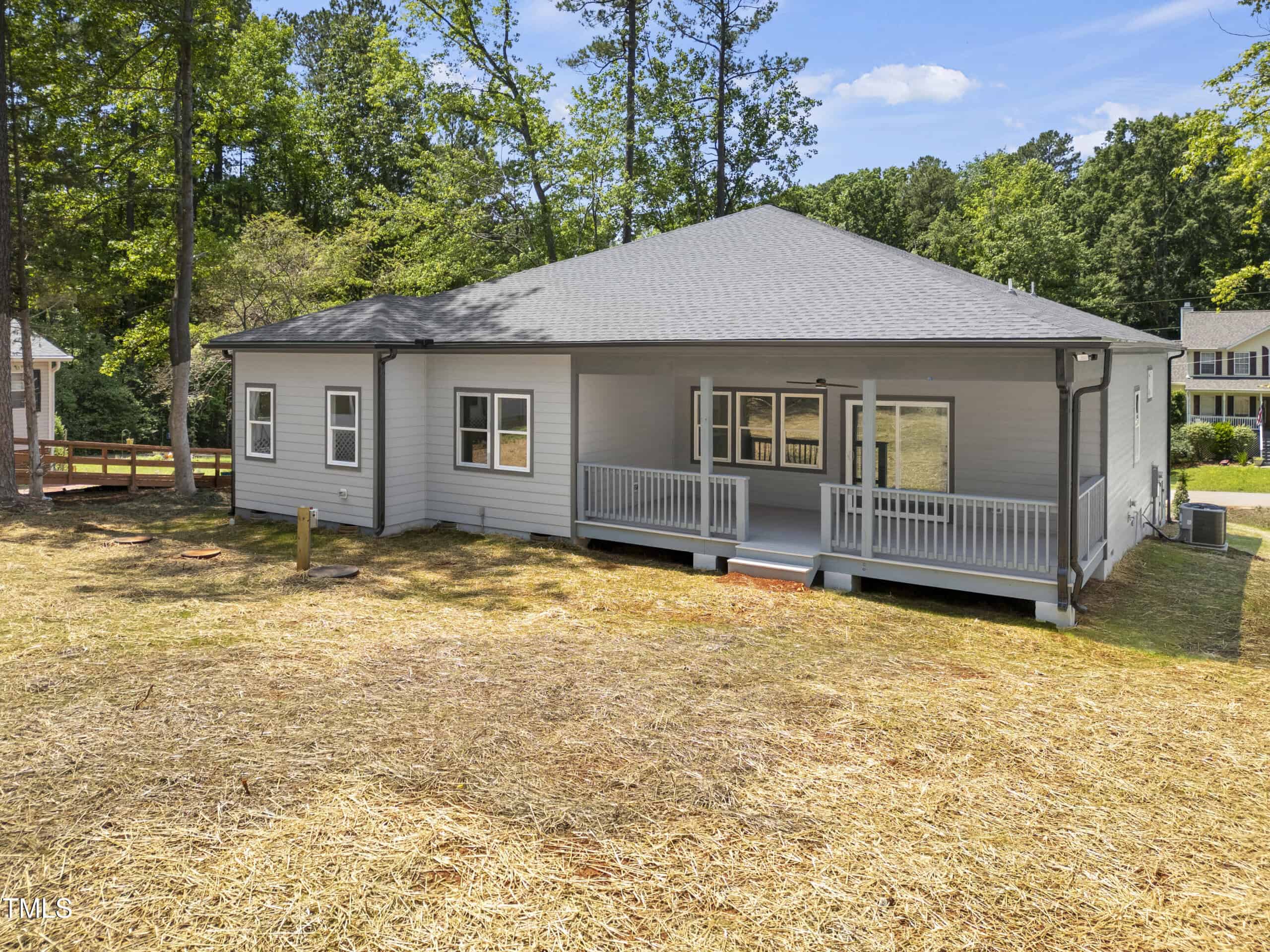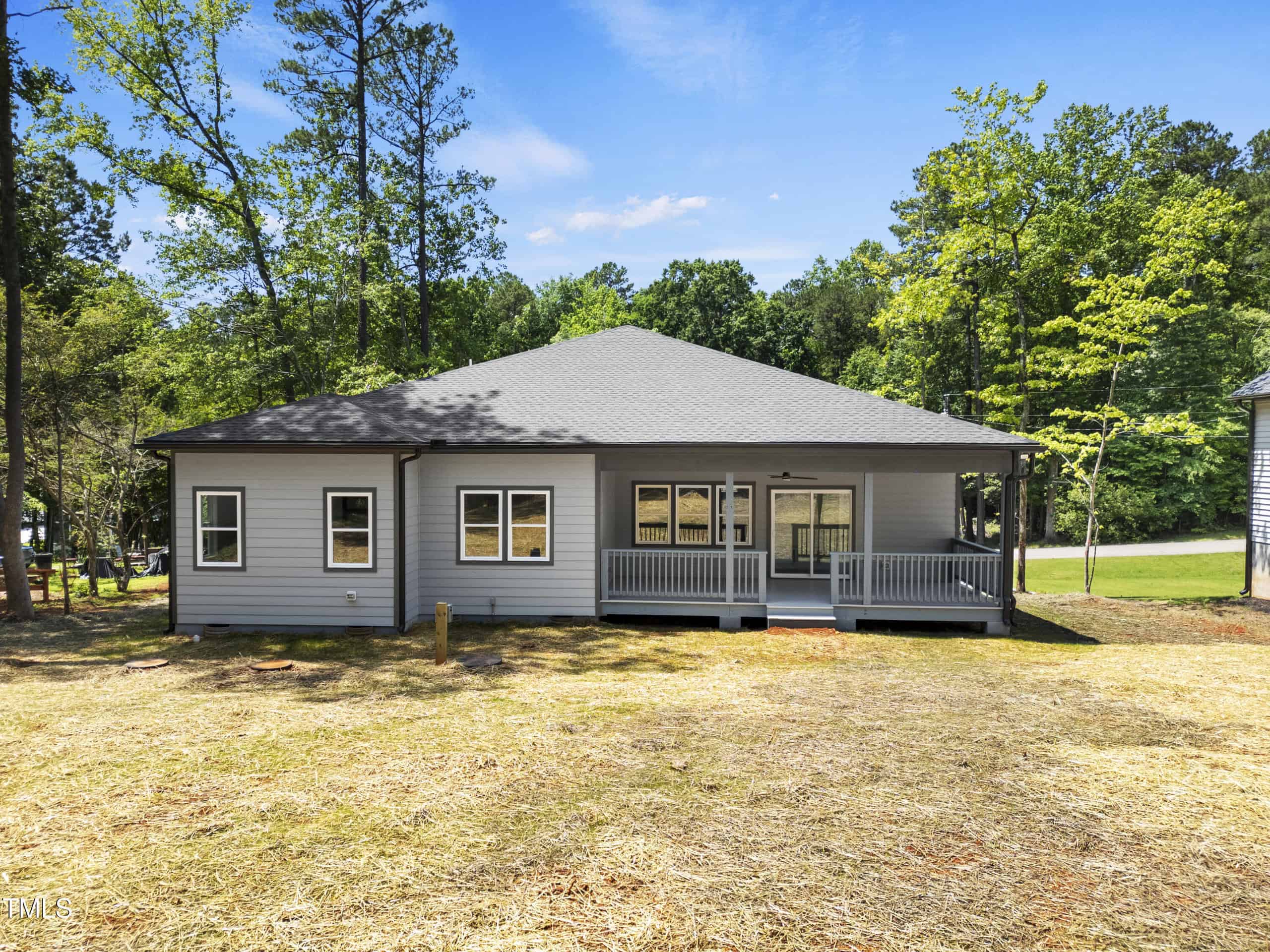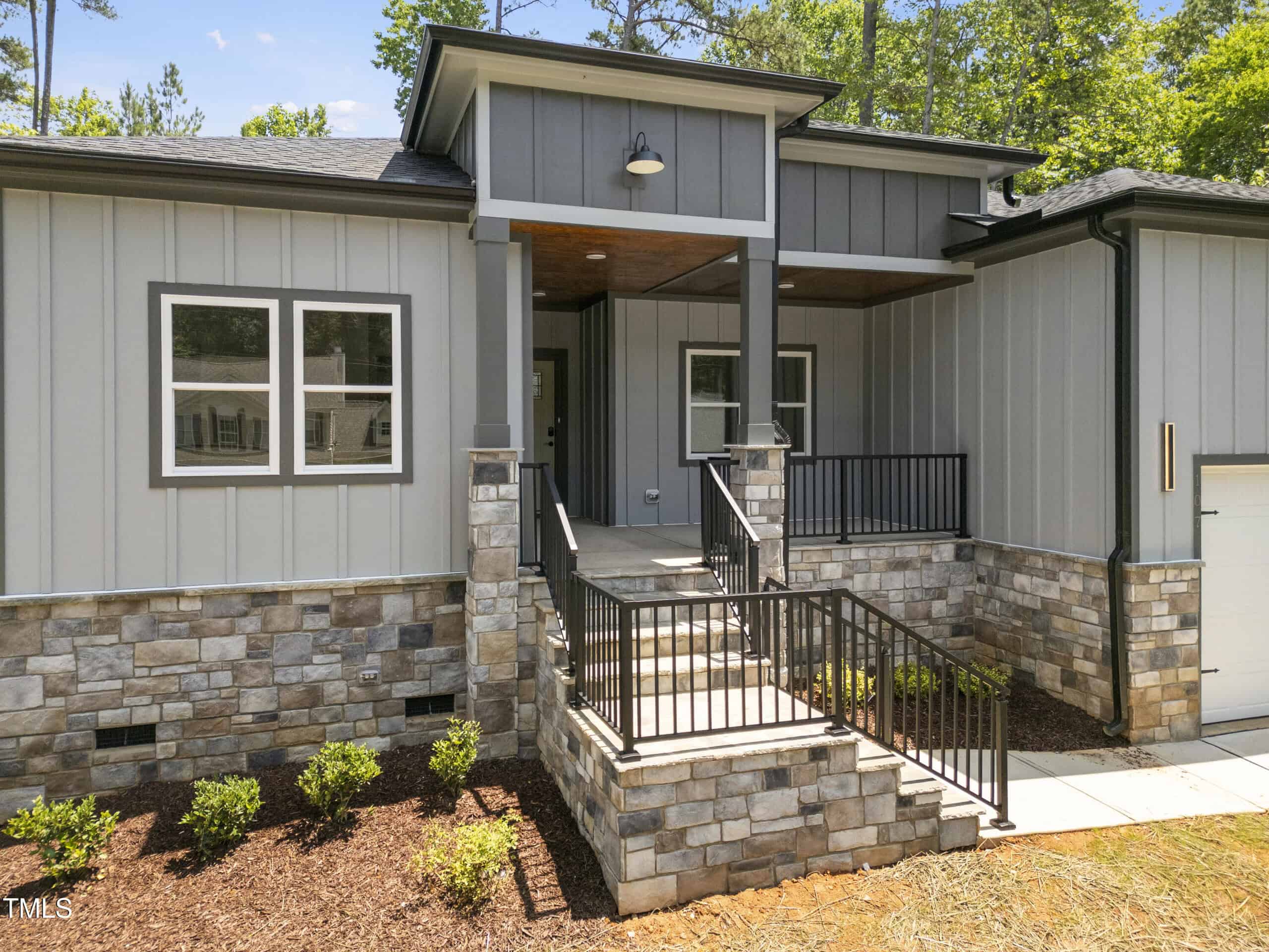 Beautifully built home that blends quality construction with everyday functionality, ideally located near the entrance of the Lake Royale gated community. With an amazing backyard, this property checks the boxes. Entering from an amazing and magnificent front porch, the interior showcases an open layout, rich natural light, and premium finishes throughout. The kitchen is both stylish and practical, featuring a center island, sleek range hood, and a generous walk-in pantryโperfect for everyday meals or entertaining. The owner’s suite is designed for relaxation, with four windows, a large shower, and an expansive walk-in closet. Each additional bedroom, no carpet!, includes its own walk-in closet, ensuring plenty of storage space. An enclosed home office offers versatility for remote work or guest use, while the additional half bath adds extra convenience for visitors. The oversized back porch invites you to enjoy the outdoors in comfort, and the charming front porch adds a warm step in. Plus epoxied garage floor Built with fiber cement and stone siding, and using wood milled on site, this home reflects attention to detail and lasting quality. The peaceful backyard provides a relaxing space to unwind or host gatherings. Enjoy exclusive access to Lake Royale’s many amenities, including boating, swimming, fishing, parks, and community eventsโall within a vibrant lakeside neighborhood.
