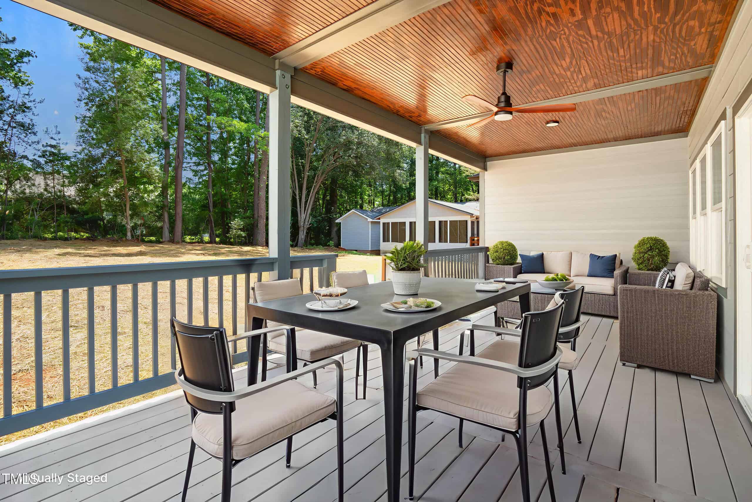 Built with fiber cement and stone siding, and using wood milled on site, this home reflects attention to detail and lasting quality. The peaceful backyard provides a relaxing space to unwind or host gatherings.