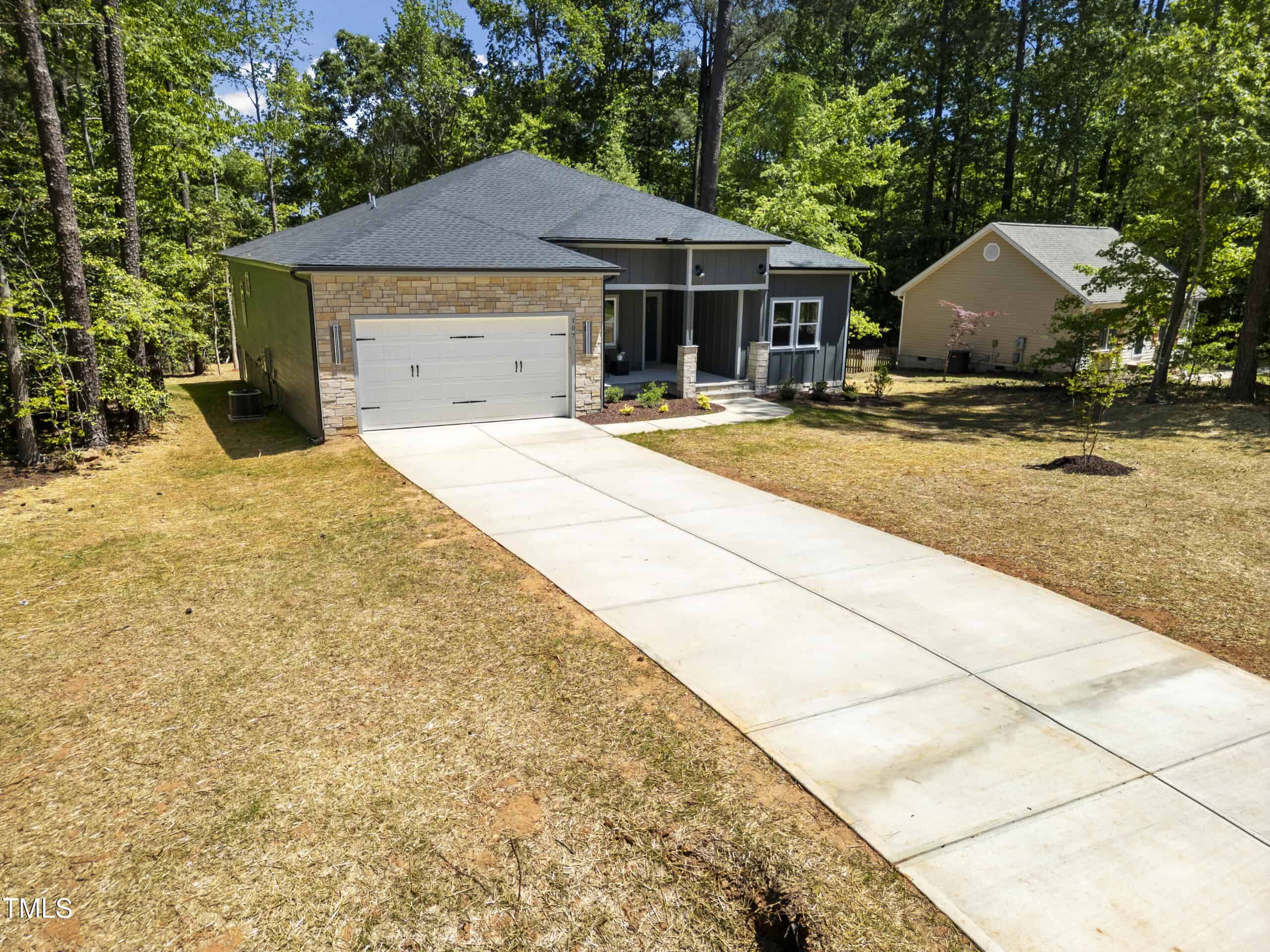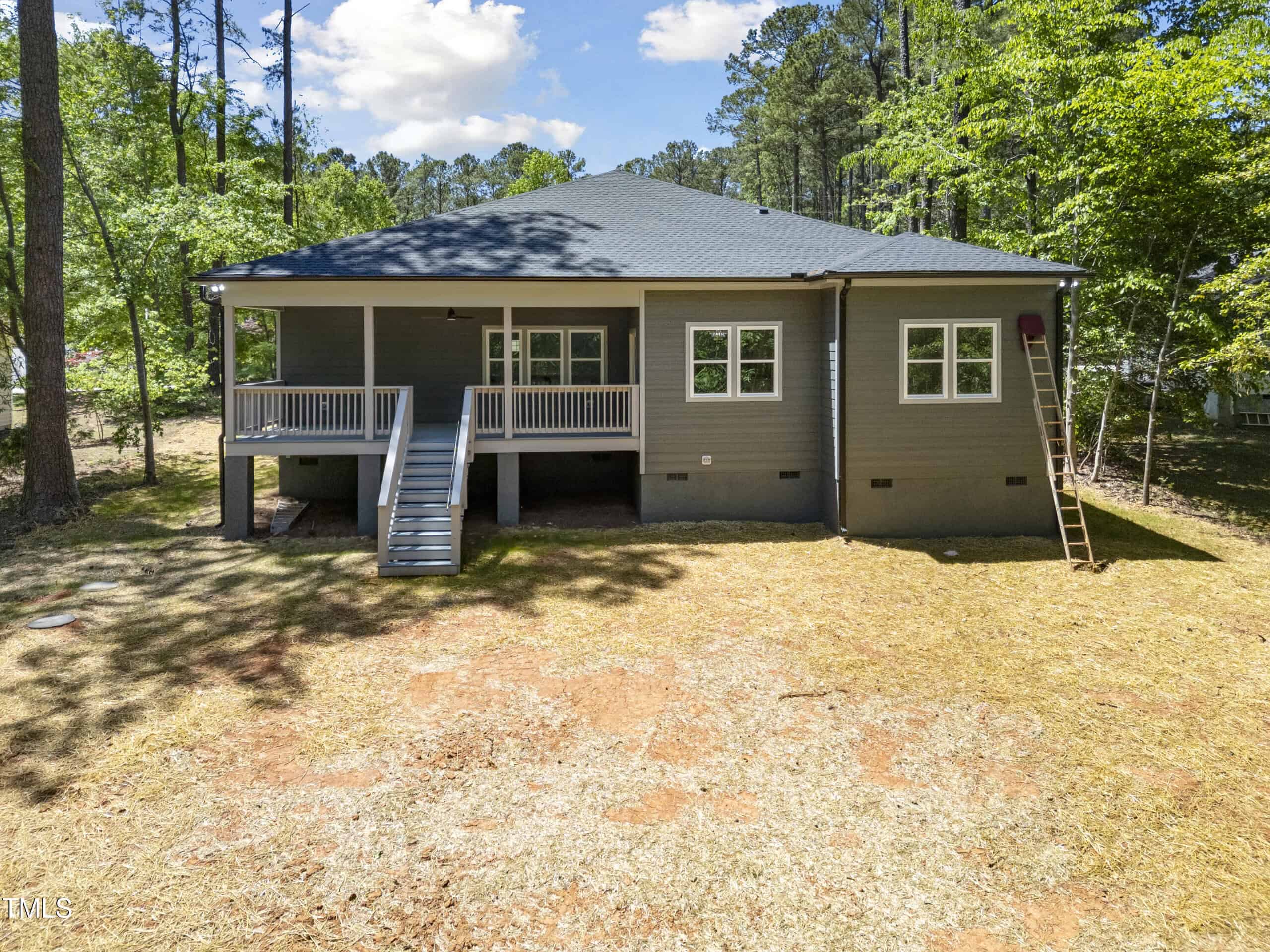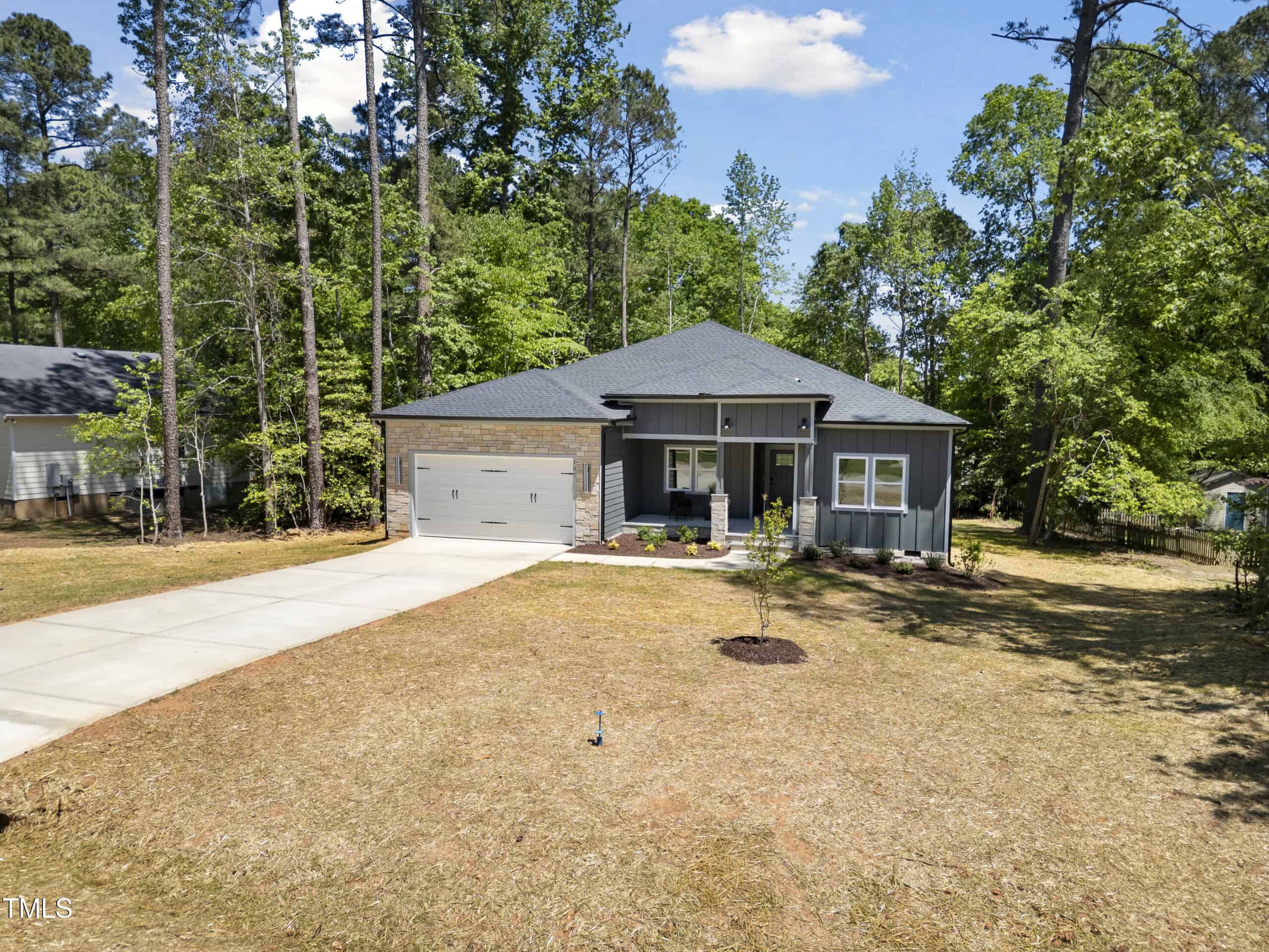 Beautifully built home that blends quality construction with everyday functionality, ideally located near the entrance of the Lake Royale gated community. Thoughtfully positioned on a private lot with mature trees, this property offers both privacy and accessibility. Entering from an amazing and accessible front porch, the interior showcases an open layout, rich natural light, and premium finishes throughout. The kitchen is both stylish and practical, featuring a center island, sleek range hood, and a generous walk-in pantryโperfect for everyday meals or entertaining. The owner’s suite is designed for relaxation, with four windows, a large shower, and an expansive walk-in closet. Each additional bedroom, no carpet!, includes its own walk-in closet, ensuring plenty of storage space. An enclosed home office offers versatility for remote work or guest use, while the additional half bath adds extra convenience for visitors. The oversized back porch invites you to enjoy the outdoors in comfort, and the charming front porch adds a warm step in. Built with fiber cement and stone siding, and using wood milled on site, this home reflects attention to detail and lasting quality. The peaceful backyard provides a relaxing space to unwind or host gatherings. Enjoy exclusive access to Lake Royale’s many amenities, including boating, swimming, fishing, parks, and community eventsโall within a vibrant lakeside neighborhood.