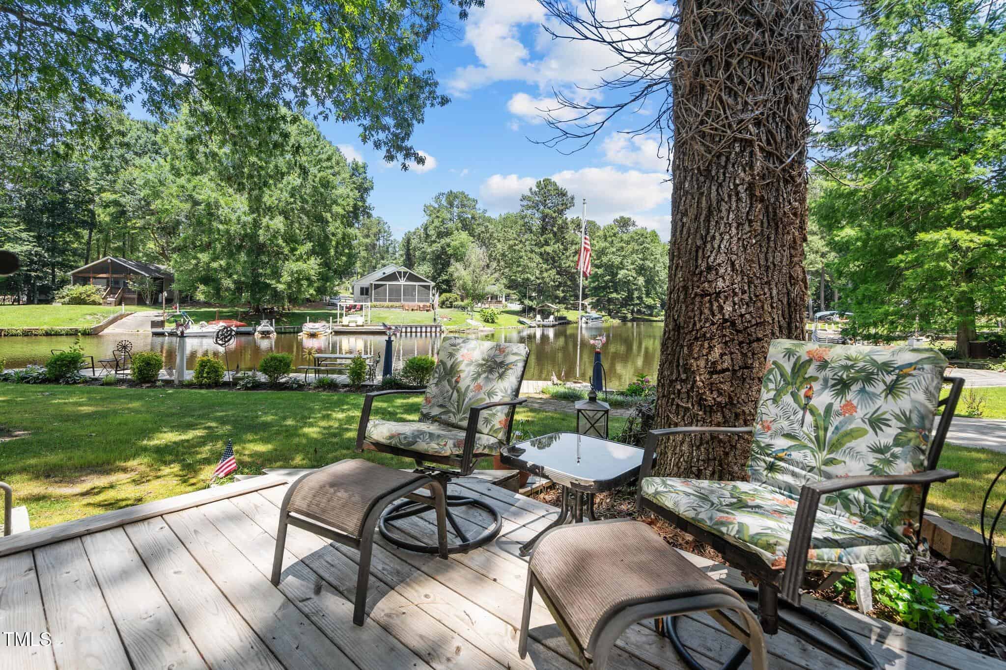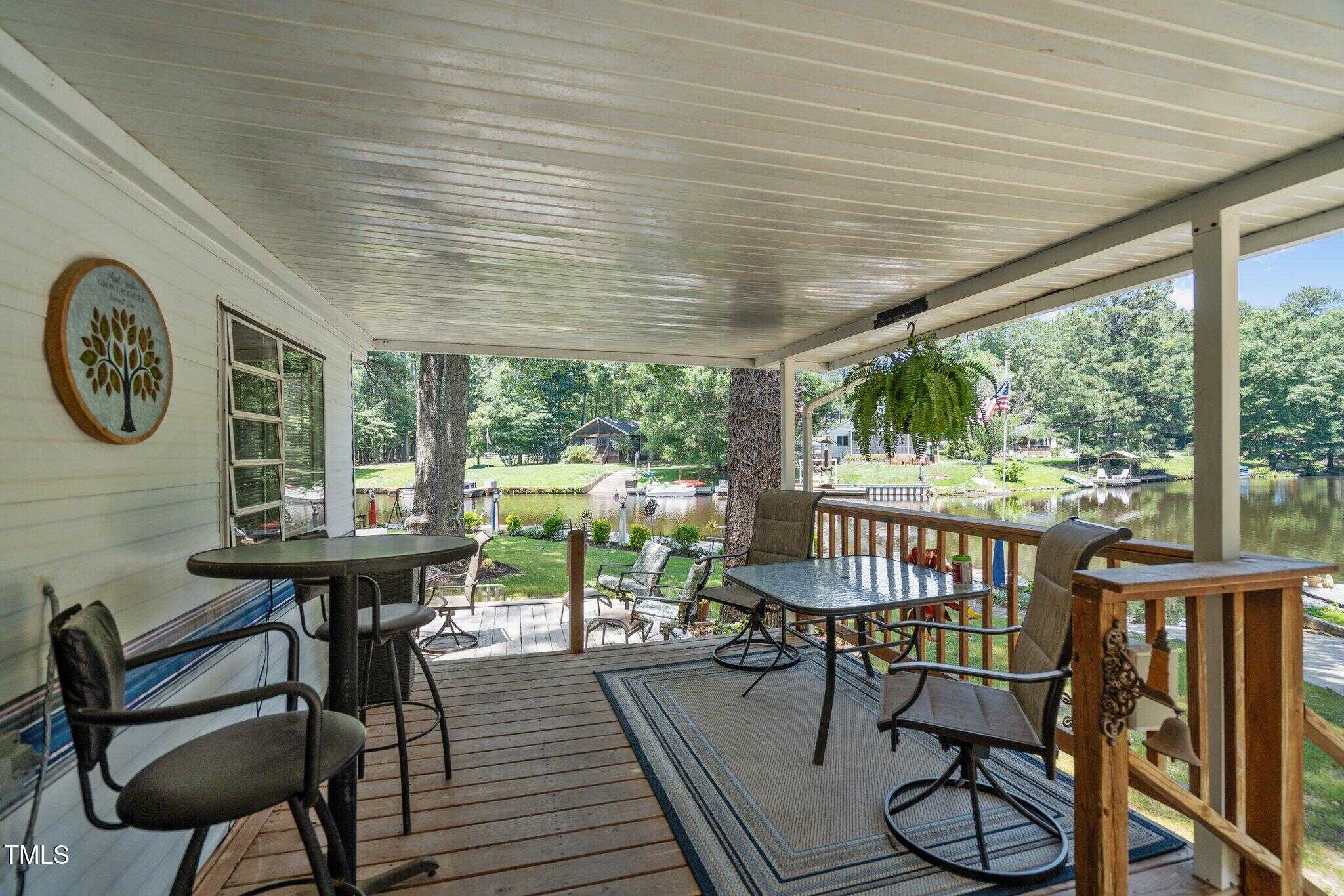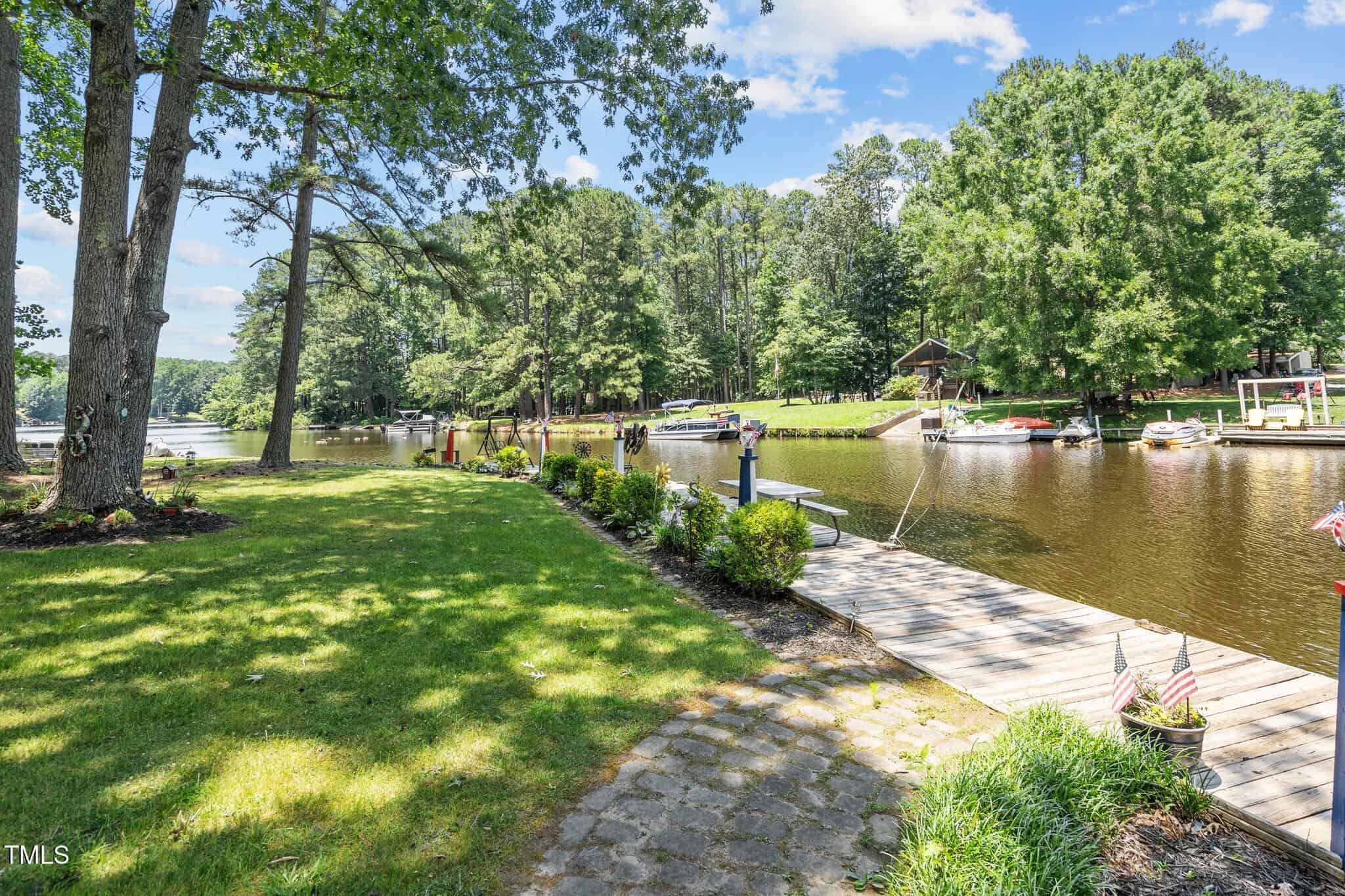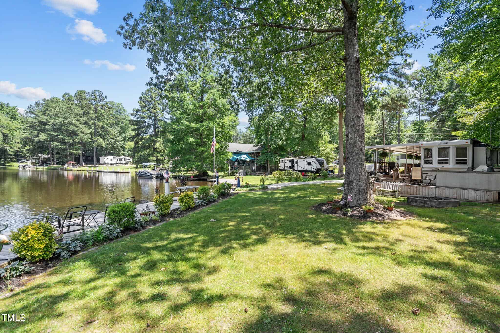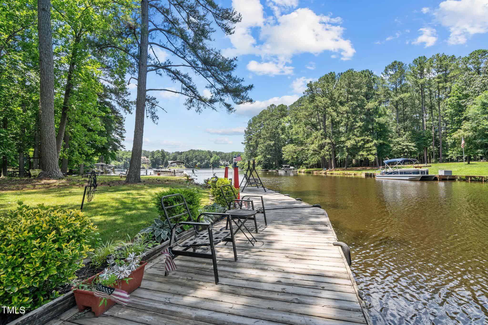 The Ultimate Waterfront Getaway awaits you at in a gated lake community, just 45 minutes from Raleigh! This amazing property is nestled on a no-wake cove with a HUGE waterfront walkway/dock, complete with tie-offs for boat. Drop your jet ski in from your own private concrete driveway! Property is big enough for a custom-built Cottage! This retreat offers TWO BEDROOMS and it’s ready for your personal touches. There’s an expansive covered porch and an outdoor built- in Grilling Station! Lake Royale Amenities Include: A Private Police Force, 3.25Mile Long Lake, 18 Hole Professionally Designed Golf Course, Beaches, Marinas, Pool, Tennis, Volleyball and Basketball, Pickleball and Lots of fun Activities. Two golf memberships to The River Gold Club included per residence!