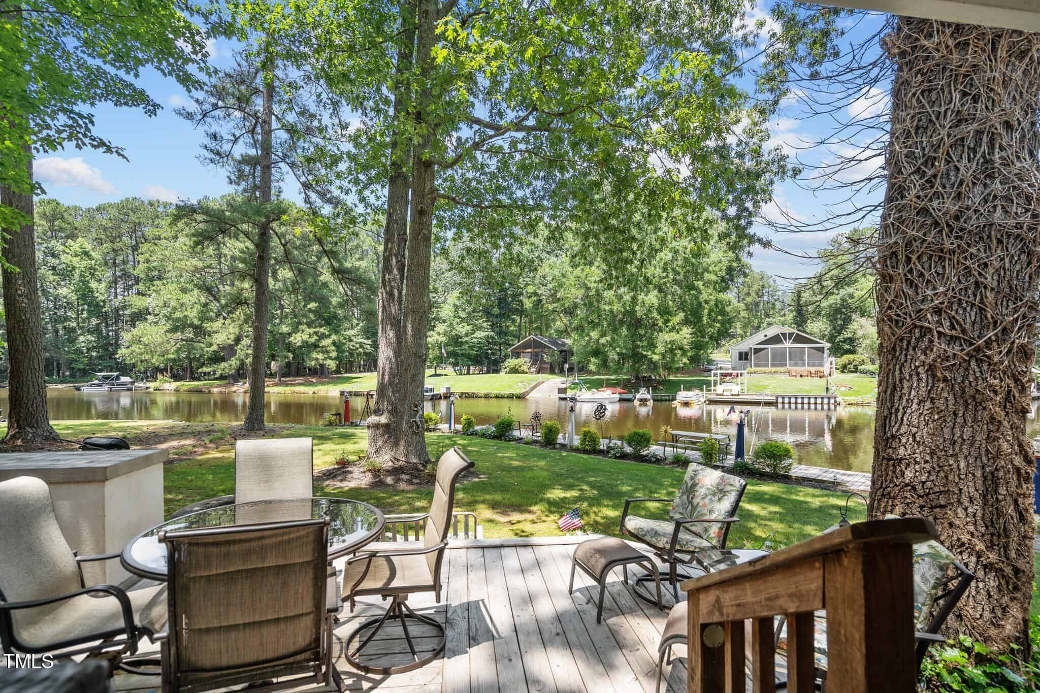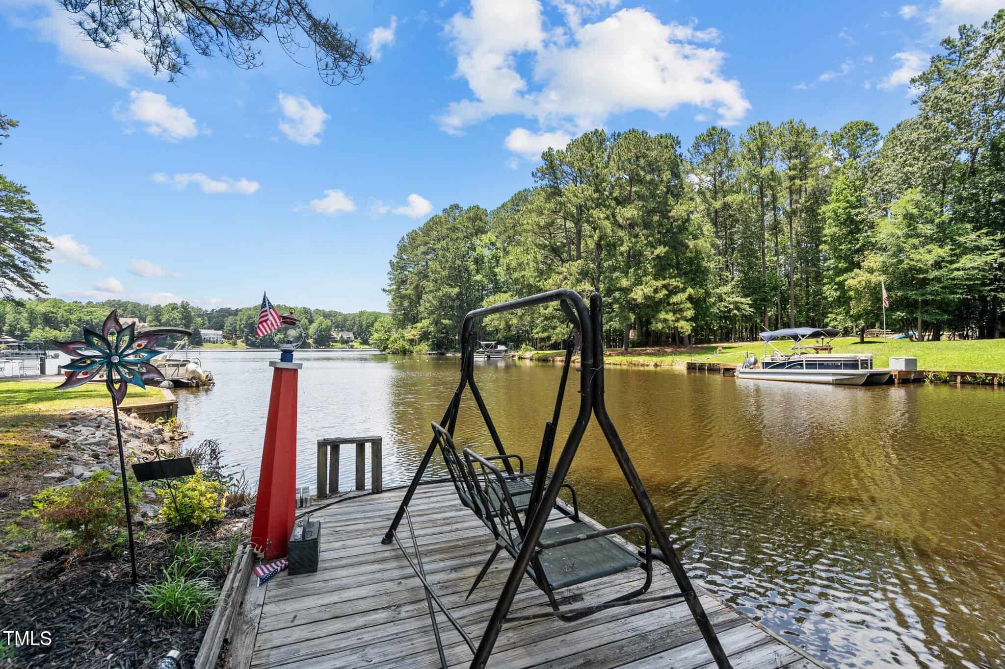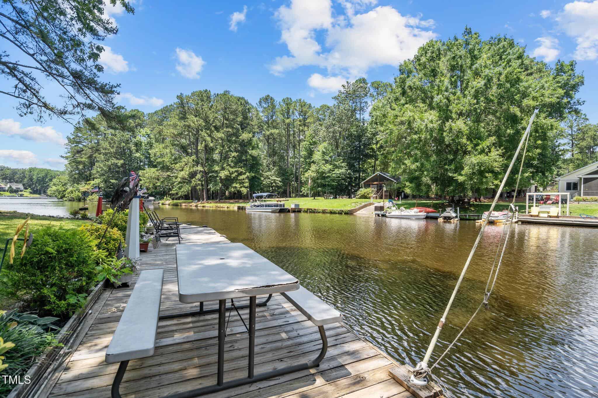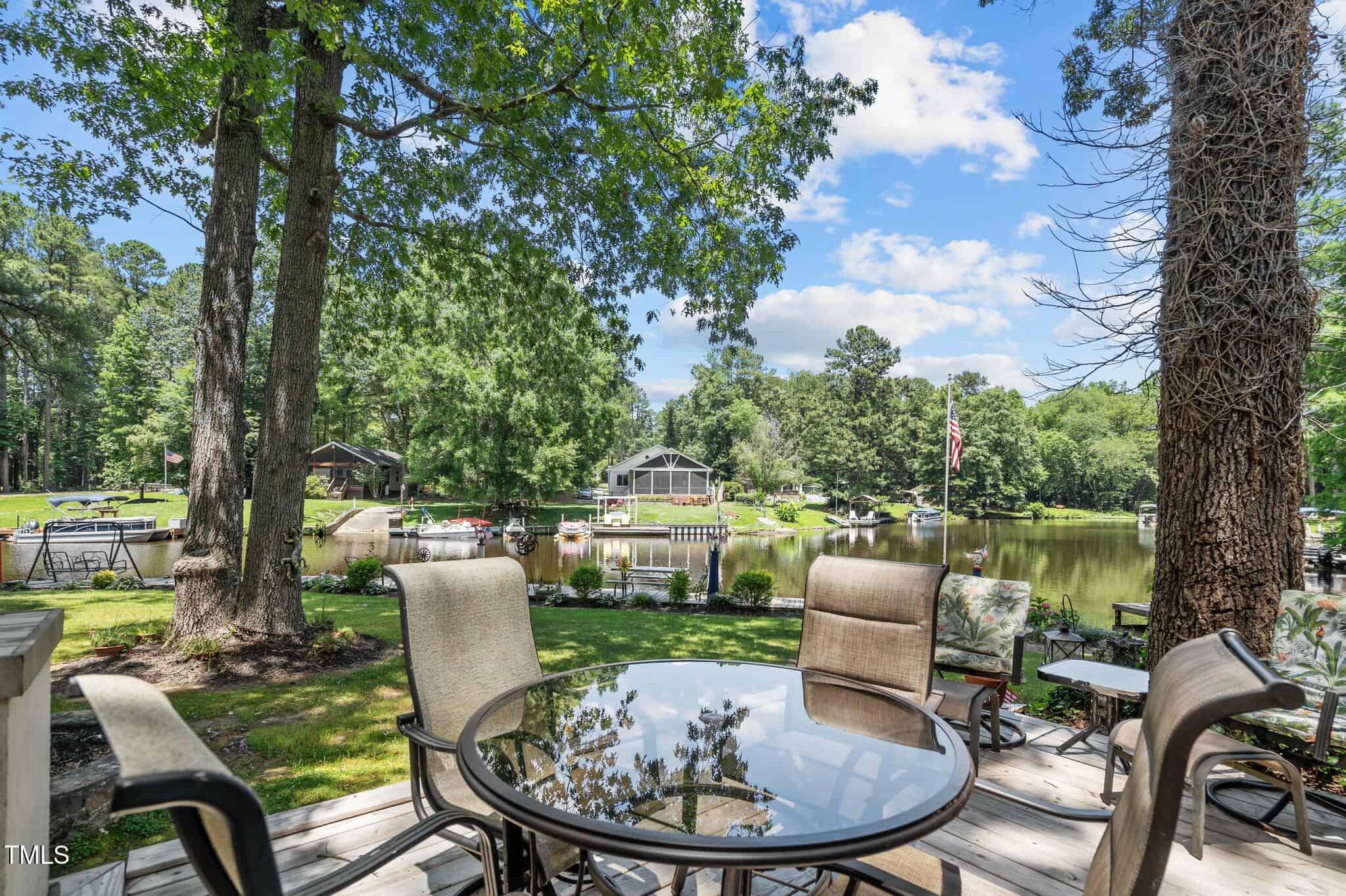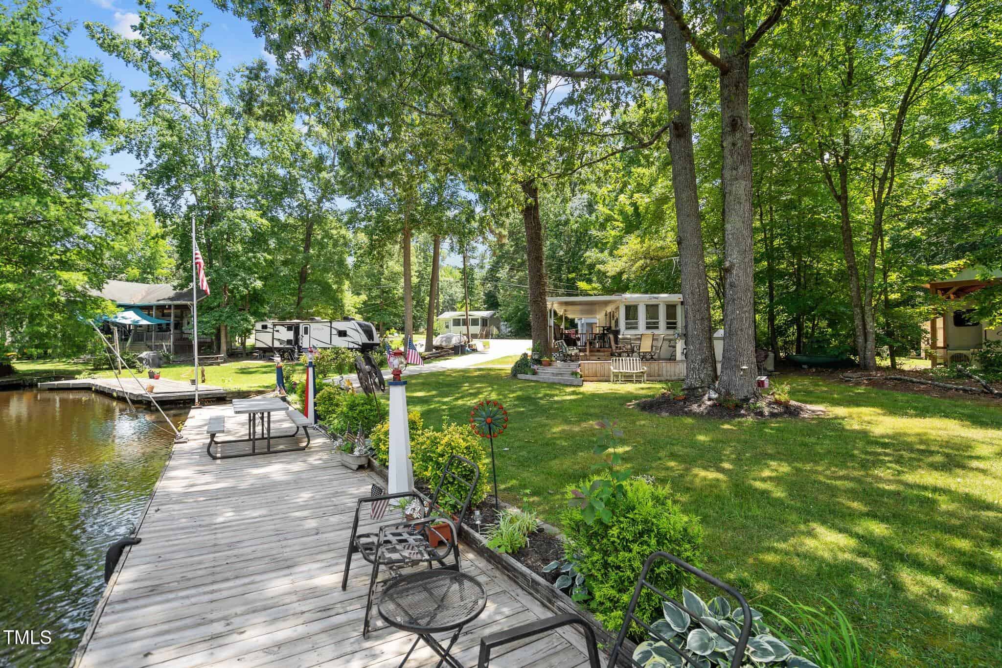 The Ultimate Waterfront Getaway awaits you at in a gated lake community, just 45 minutes from Raleigh! This amazing property is nestled on a no-wake cove with a HUGE waterfront walkway/dock, complete with tie-offs for boat. Drop your jet ski in from your own private concrete driveway! Property is big enough for a custom-built Cottage! This retreat offers TWO BEDROOMS and it’s ready for your personal touches. There’s an expansive covered porch and an outdoor built- in Grilling Station! Lake Royale Amenities Include: A Private Police Force, 3.25Mile Long Lake, 18 Hole Professionally Designed Golf Course, Beaches, Marinas, Pool, Tennis, Volleyball and Basketball, Pickleball and Lots of fun Activities. Two golf memberships to The River Gold Club included per residence!