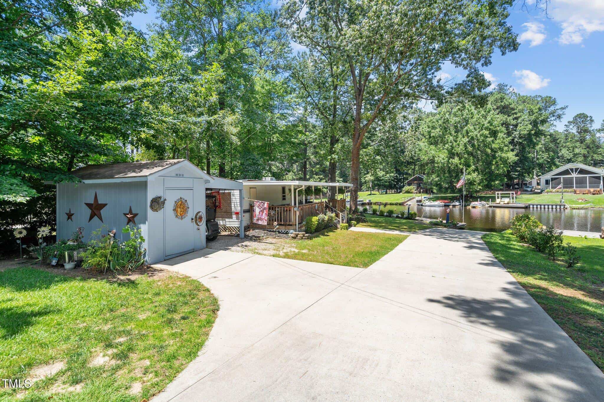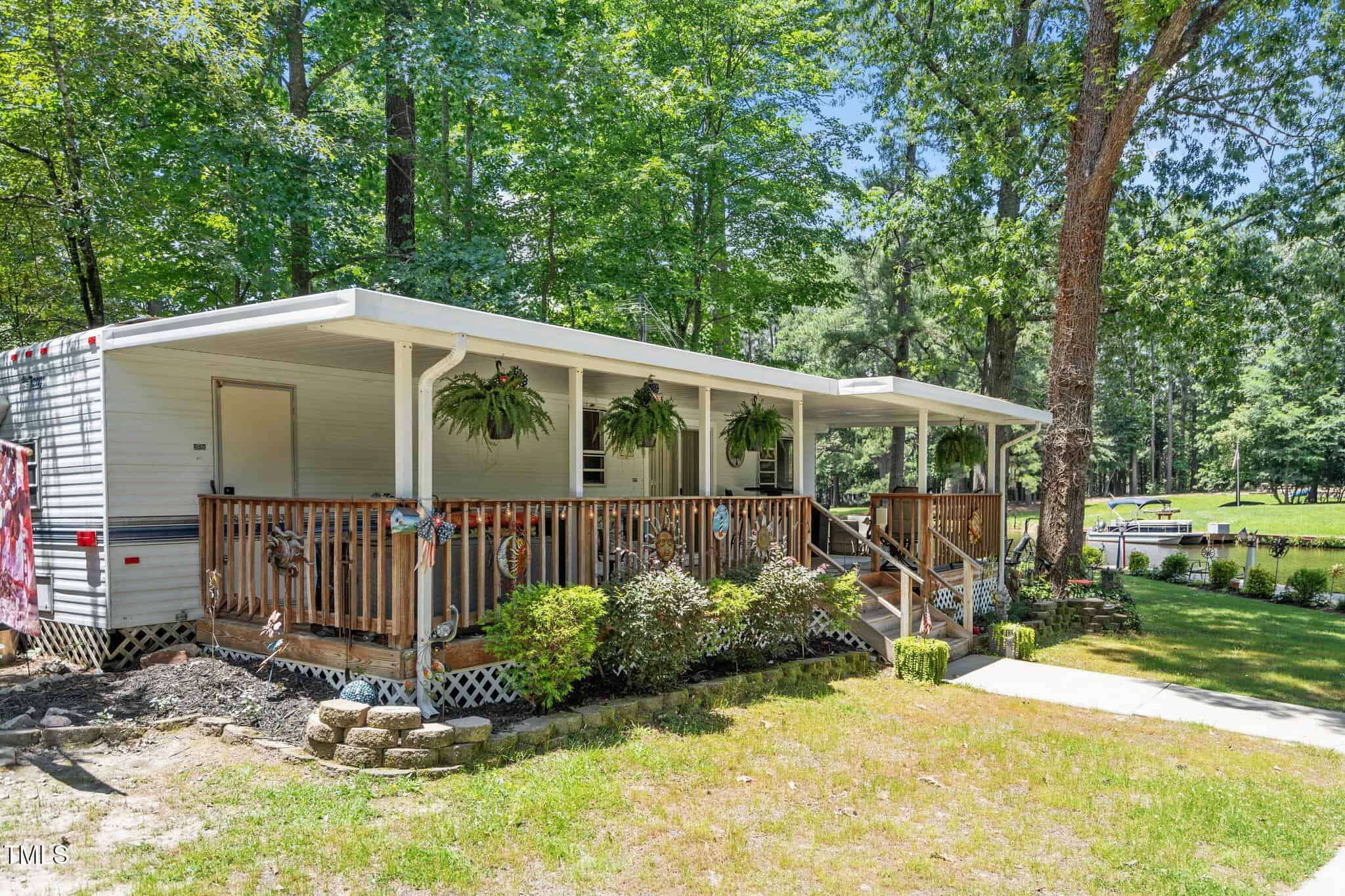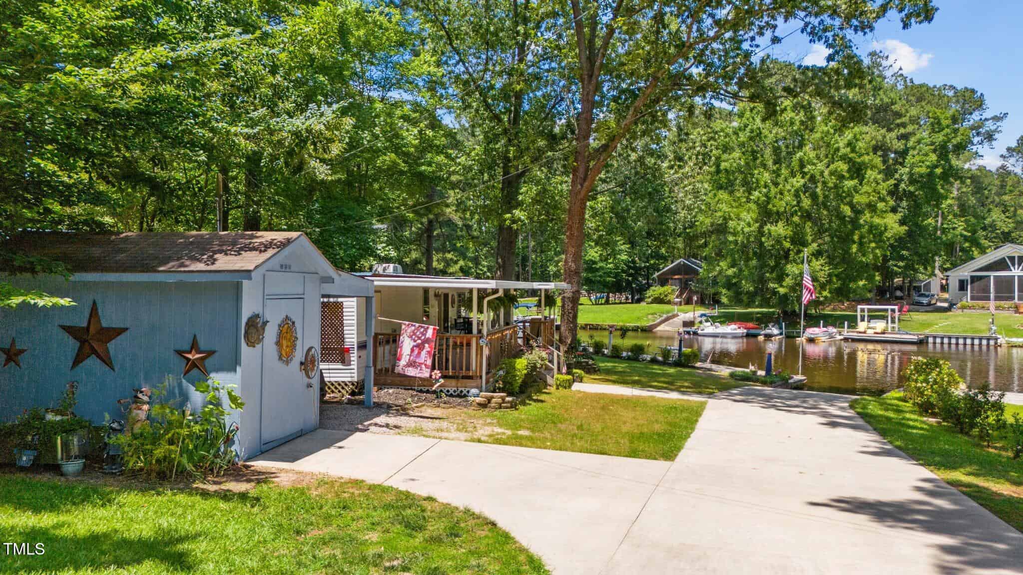 The Ultimate Waterfront Getaway awaits you at in a gated lake community, just 45 minutes from Raleigh! This amazing property is nestled on a no-wake cove with a HUGE waterfront walkway/dock, complete with tie-offs for boat. Drop your jet ski in from your own private concrete driveway! Property is big enough for a custom-built Cottage! This retreat offers TWO BEDROOMS and it’s ready for your personal touches. There’s an expansive covered porch and an outdoor built- in Grilling Station!