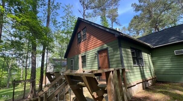 Enjoy your very own private home in Lake Royale. Inside features a downstairs bedroom and bath plus two more rooms upstairs with bathroom. Deck off the rear for nice quiet views of the wooded back yard. Short walk to the lake.
