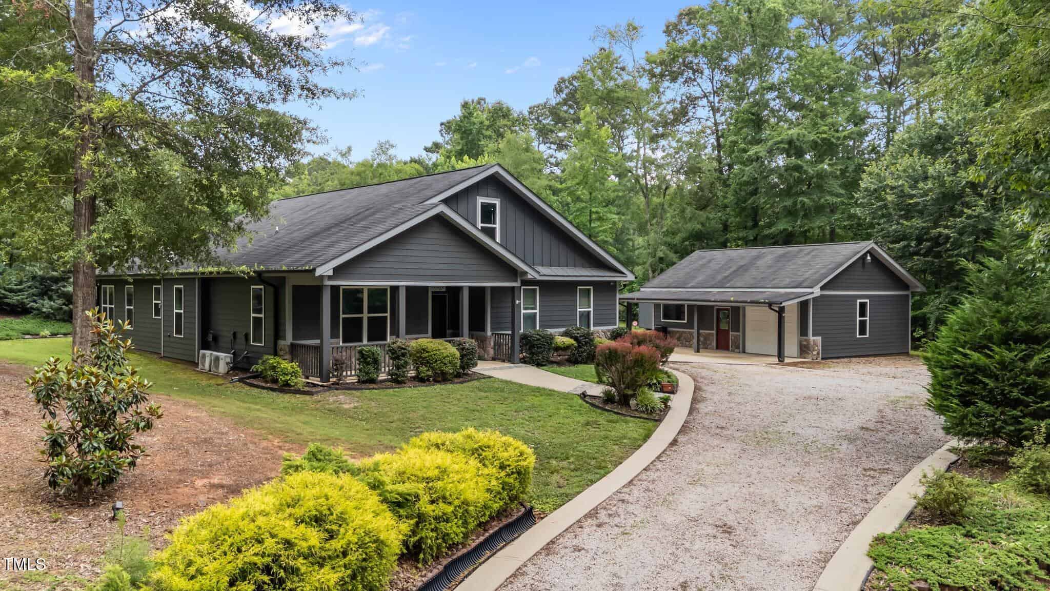 Welcome to this beautifully designed ranch home nestled in the highly desirable Lake Royale subdivision. Surrounded by a peaceful and tranquil setting, it’s the ideal place to enjoy both relaxation and recreation. This beautiful home features three spacious bedrooms, two full bathrooms, and a large detached garage that is both heated and cooled, complete with a half bath and ample space! This stunning home features a gorgeous kitchen with custom cabinetry, a large island, appliances, ample counter space, and a cozy eat-in dining area perfect for entertaining. Adjacent to the kitchen, the bright and airy sunroom provides the perfect spot for relaxing, with large windows that flood the room with natural light and offer views of the serene surroundings. The luxurious primary suite offers a spacious bedroom filled with natural light and highlighted by a stylish tray ceiling. A sleek barn door opens to the upscale bathroom, featuring a walk-in shower, dual vanities, and a large walk-in closet—creating a perfect blend of comfort, elegance, and modern sophistication. Upstairs, you’ll find a spacious bonus room perfect for entertaining, relaxing, or creating a personal retreat. Whether used as a media lounge, game room, or office, this versatile space also has a convenient walk-in storage area. Not only is this home beautifully designed, but it also offers access to a breathtaking 345-acre lake perfect for boating, fishing, and water sports, as well as an 18-hole golf course, pool, and more. Surrounded by a peaceful setting, it provides the ideal balance of relaxation and recreation. Don’t miss the opportunity to own this exceptional property and experience the lifestyle you’ve always dreamed of.