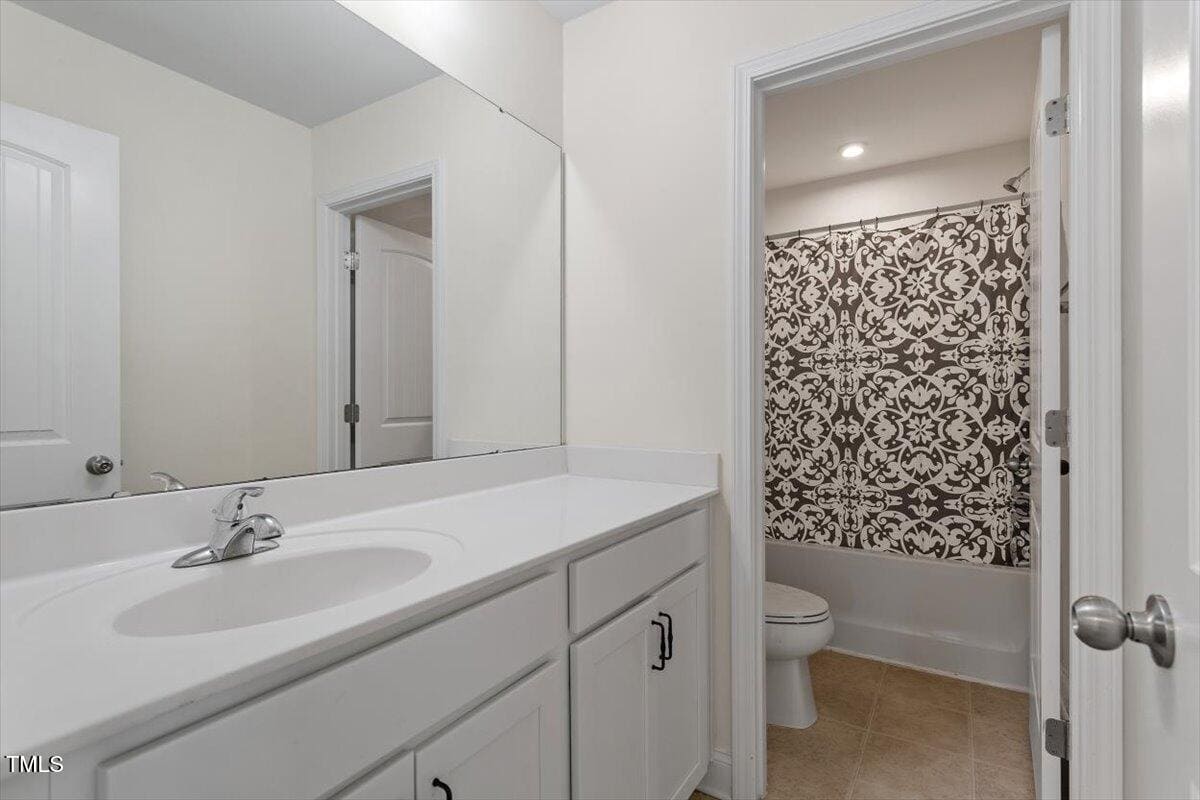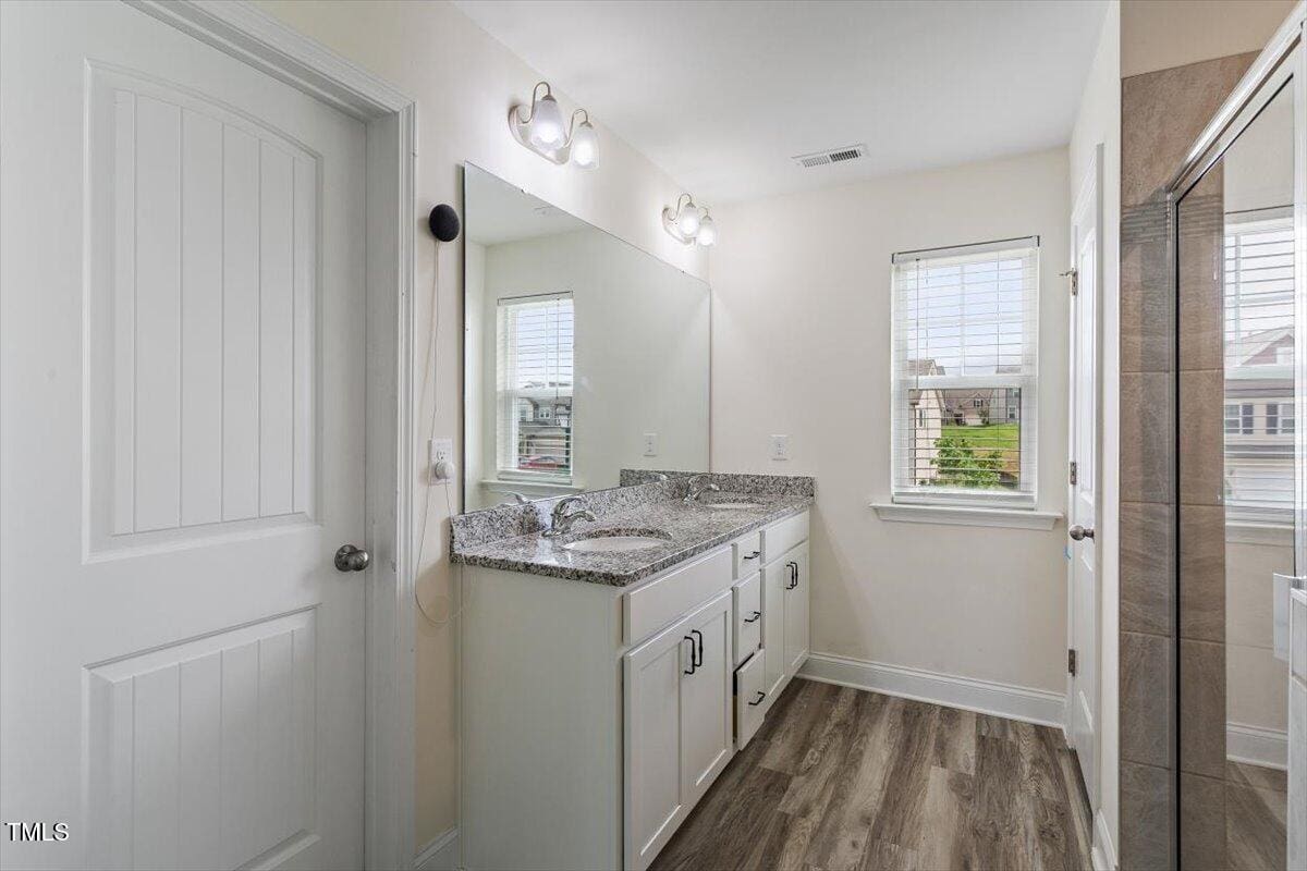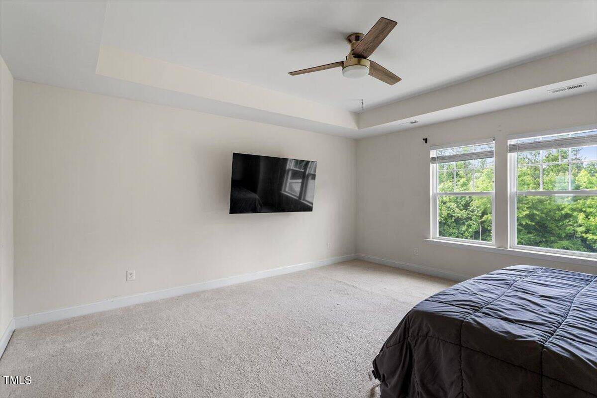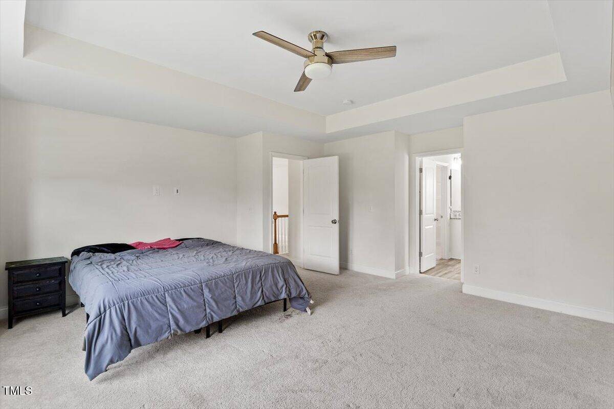 Primary bath features dual vanity, large tile surround shower, private water closet, and huge walk-in closet, large primary bedroom includes tray ceiling.