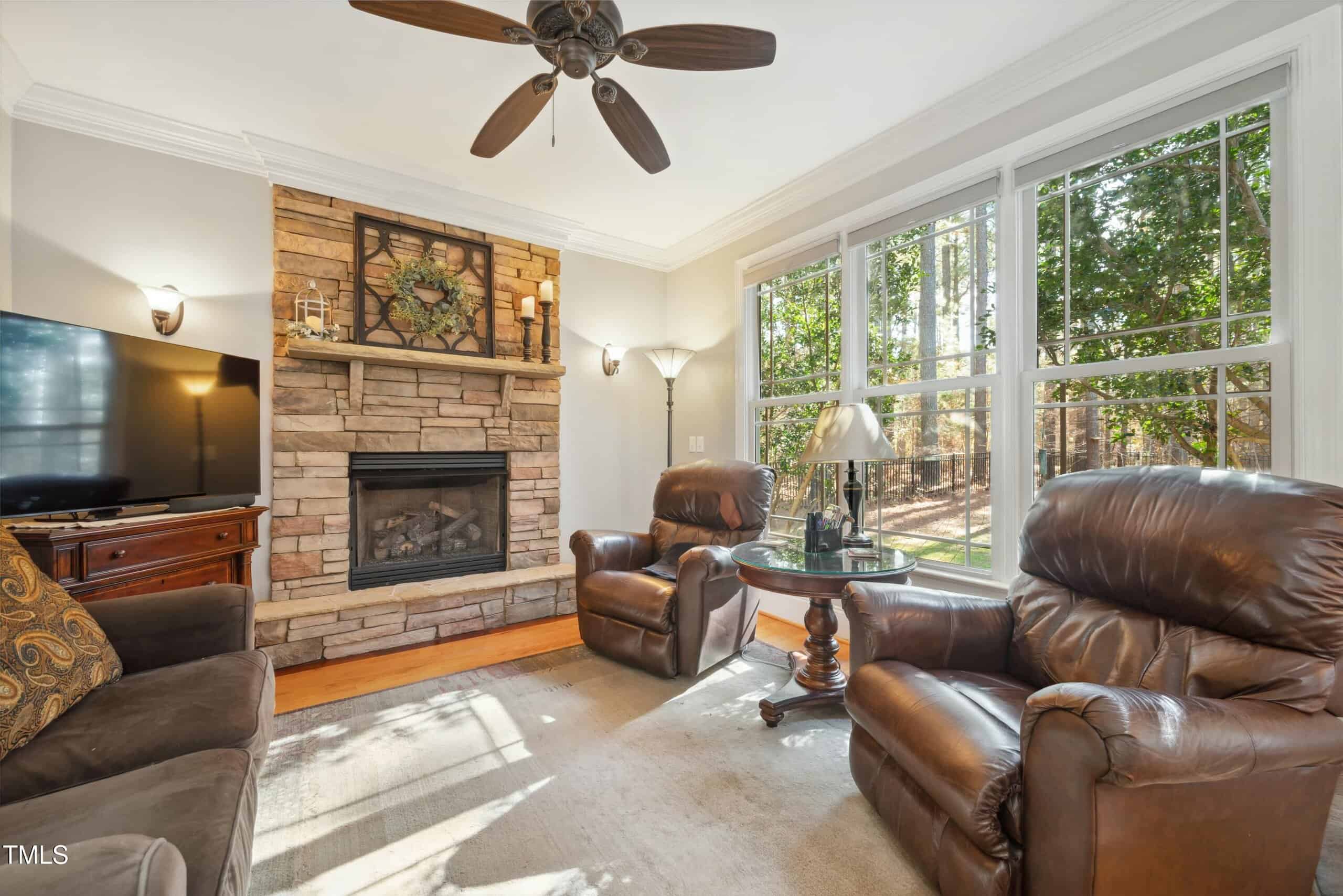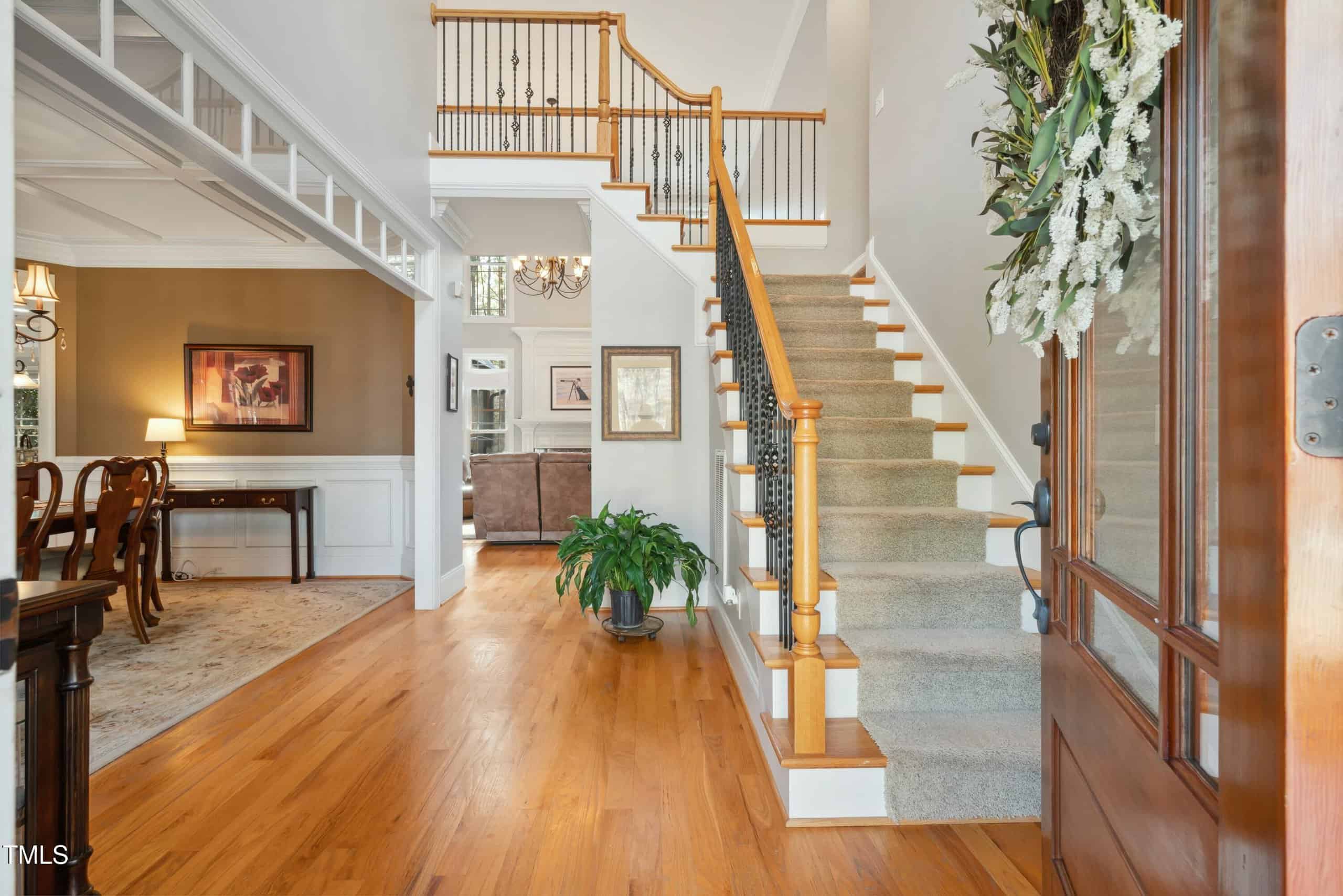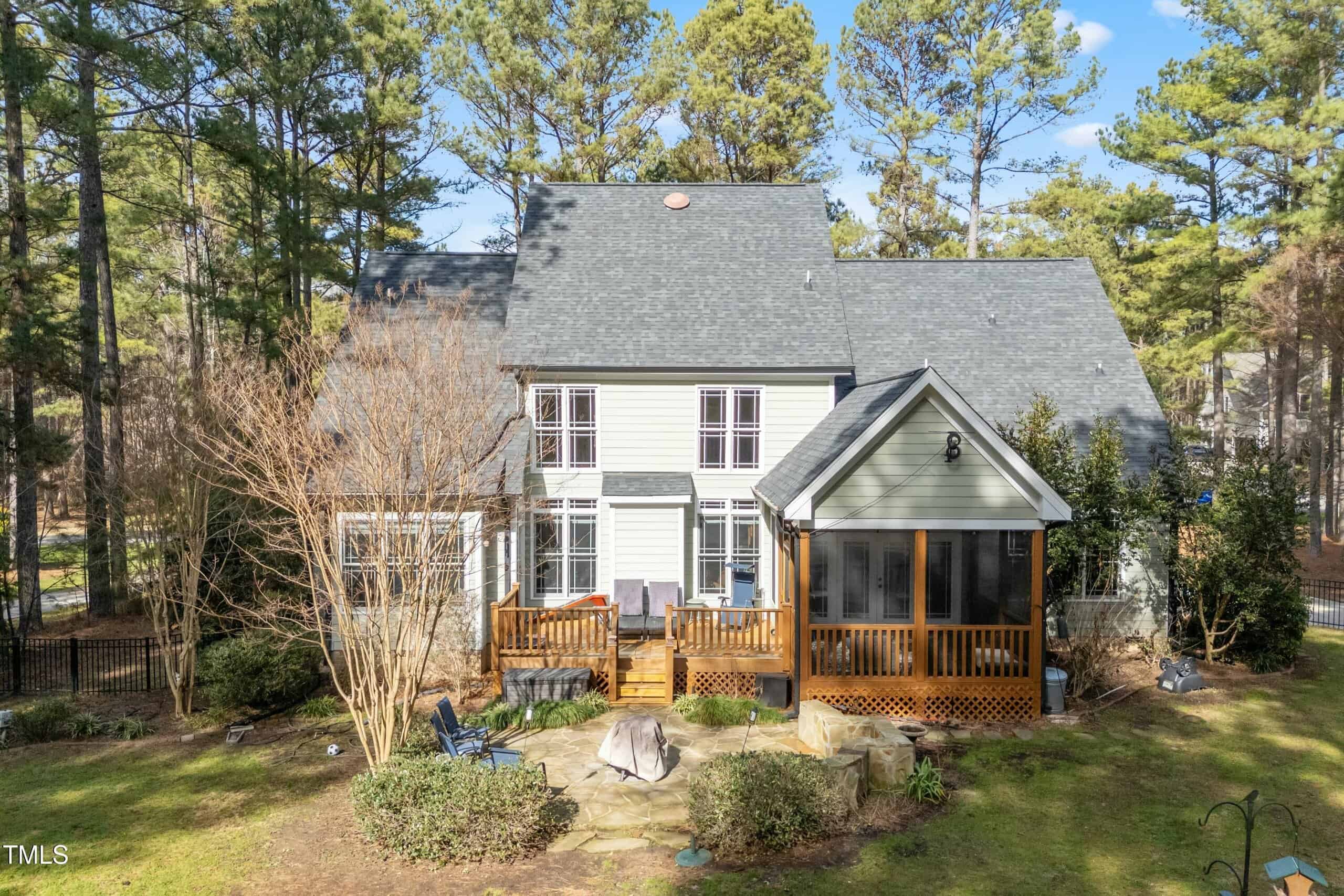 Nestled in a highly sought-after neighborhood, this beautiful 4-bedroom, 3.5-bath home offers over 2 acres of tranquility and privacy. Enjoy the spacious, partially fenced backyard surrounded by mature trees, perfect for relaxation and outdoor activities. Inside, you’ll find stunning hardwood floors, intricate wood trim work, including wainscoting and crown molding, and an abundance of natural light throughout. The primary bedroom is conveniently located downstairs for added comfort. Situated at the end of a quiet street, this home also features a 2-car garage, covered screened-in porch, open deck, and stone patio—ideal for entertaining or unwinding. Don’t miss out on this rare gem in Youngsville!