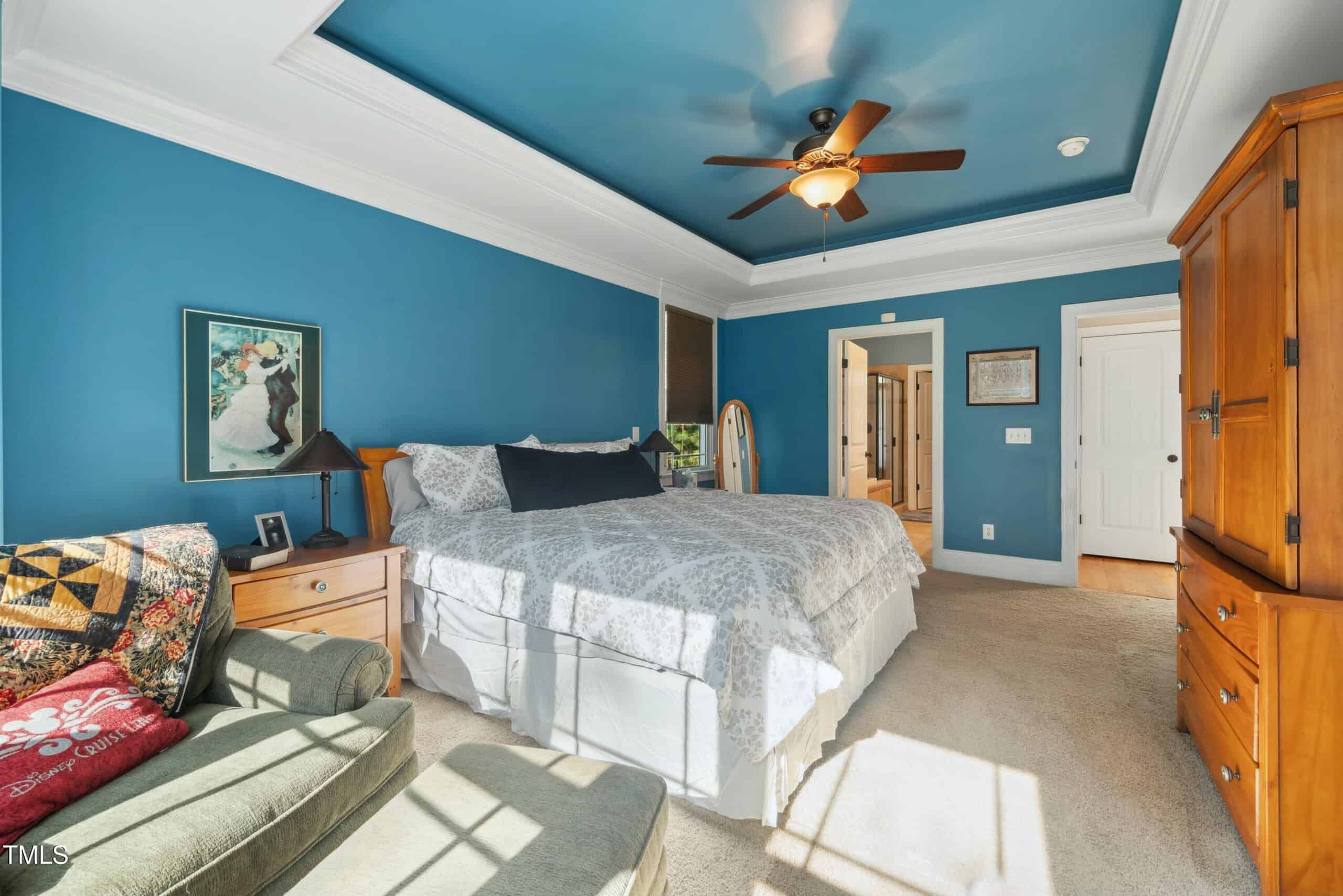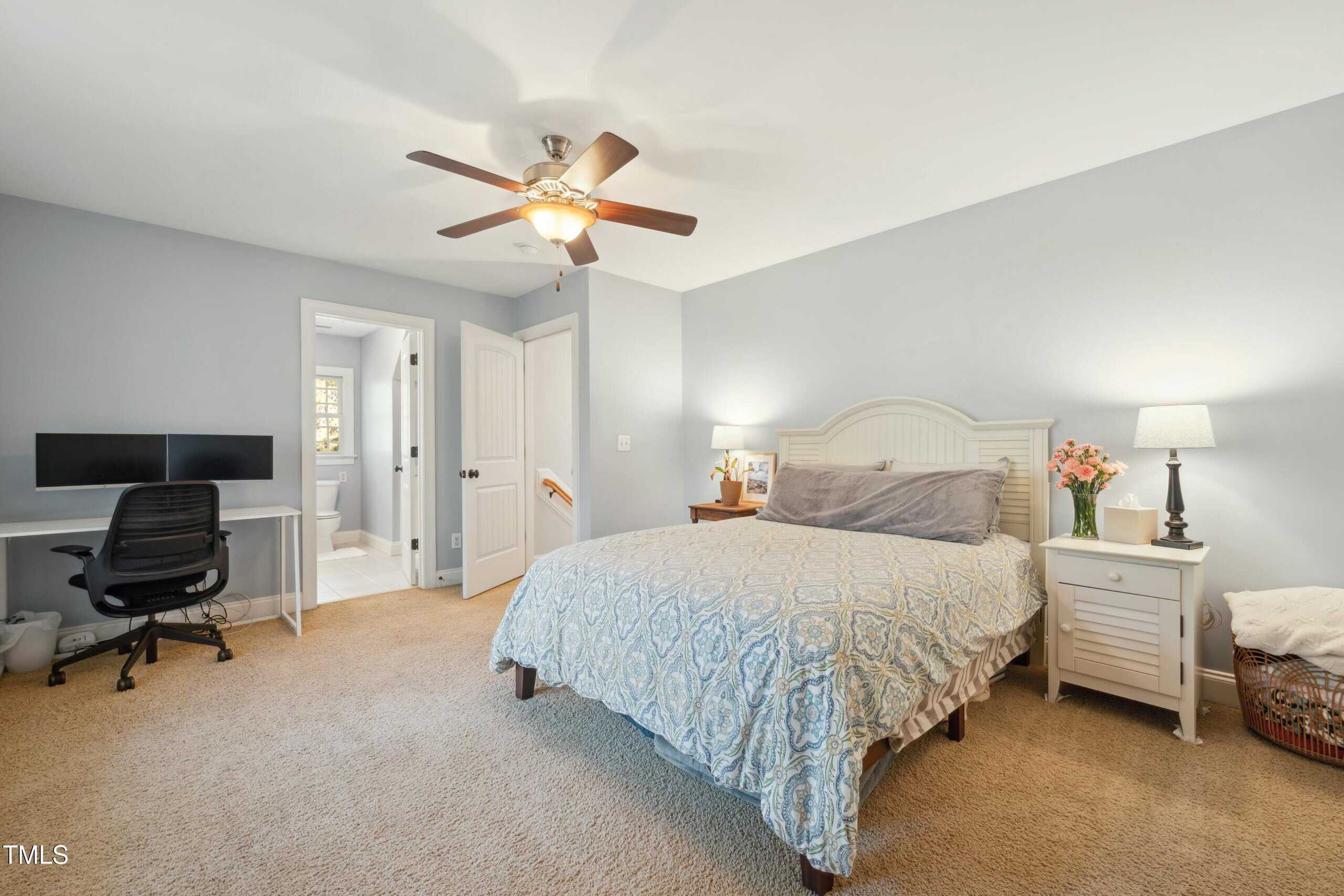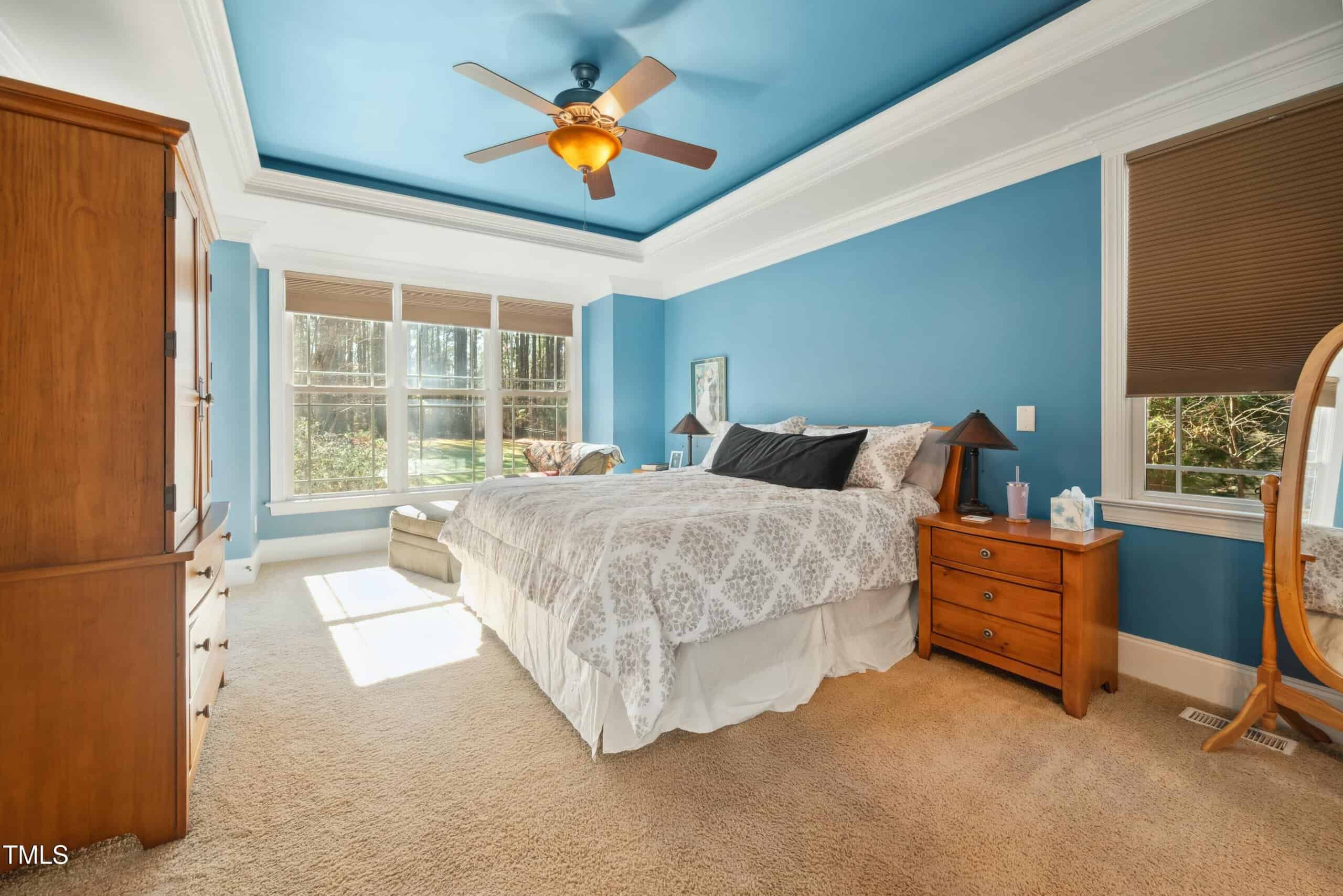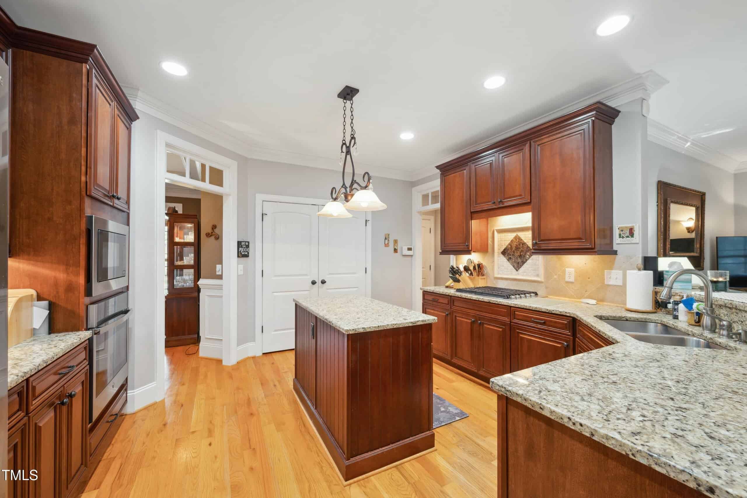 Inside, you’ll find stunning hardwood floors, intricate wood trim work, including wainscoting and crown molding, and an abundance of natural light throughout. The primary bedroom is conveniently located downstairs for added comfort.