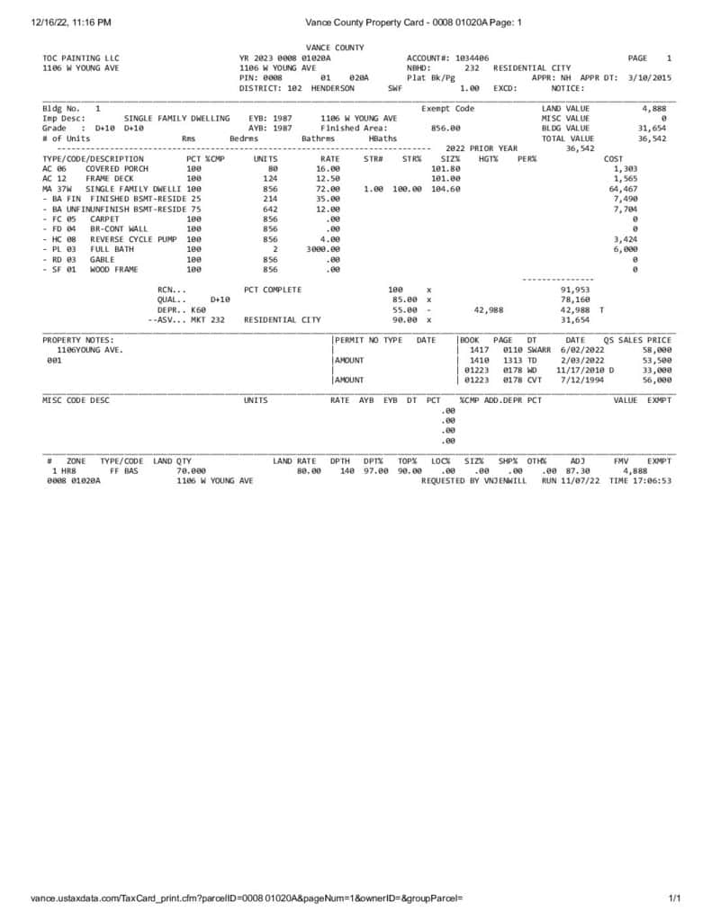 Not in a Subdivision – Henderson Township – Vance County
