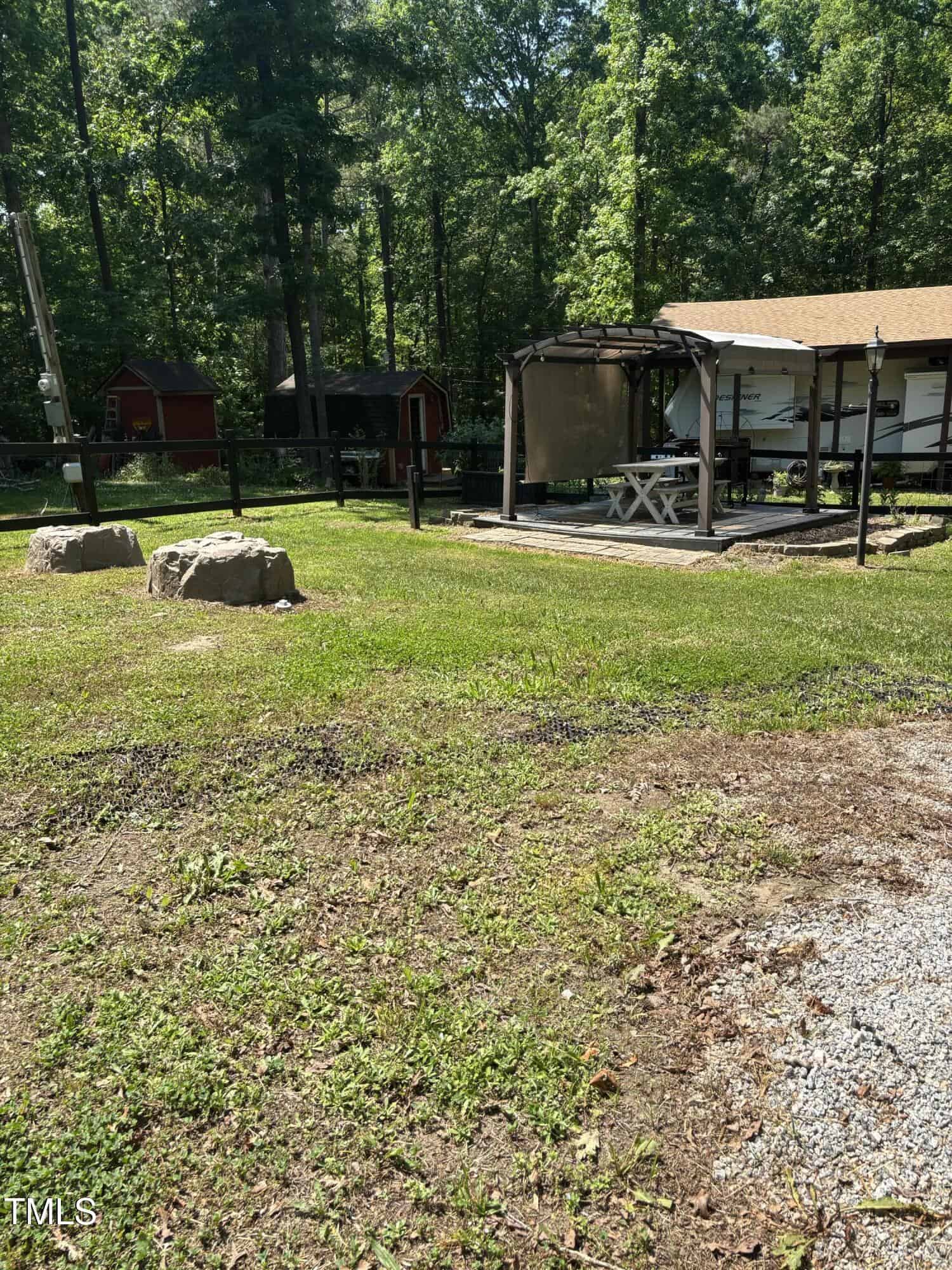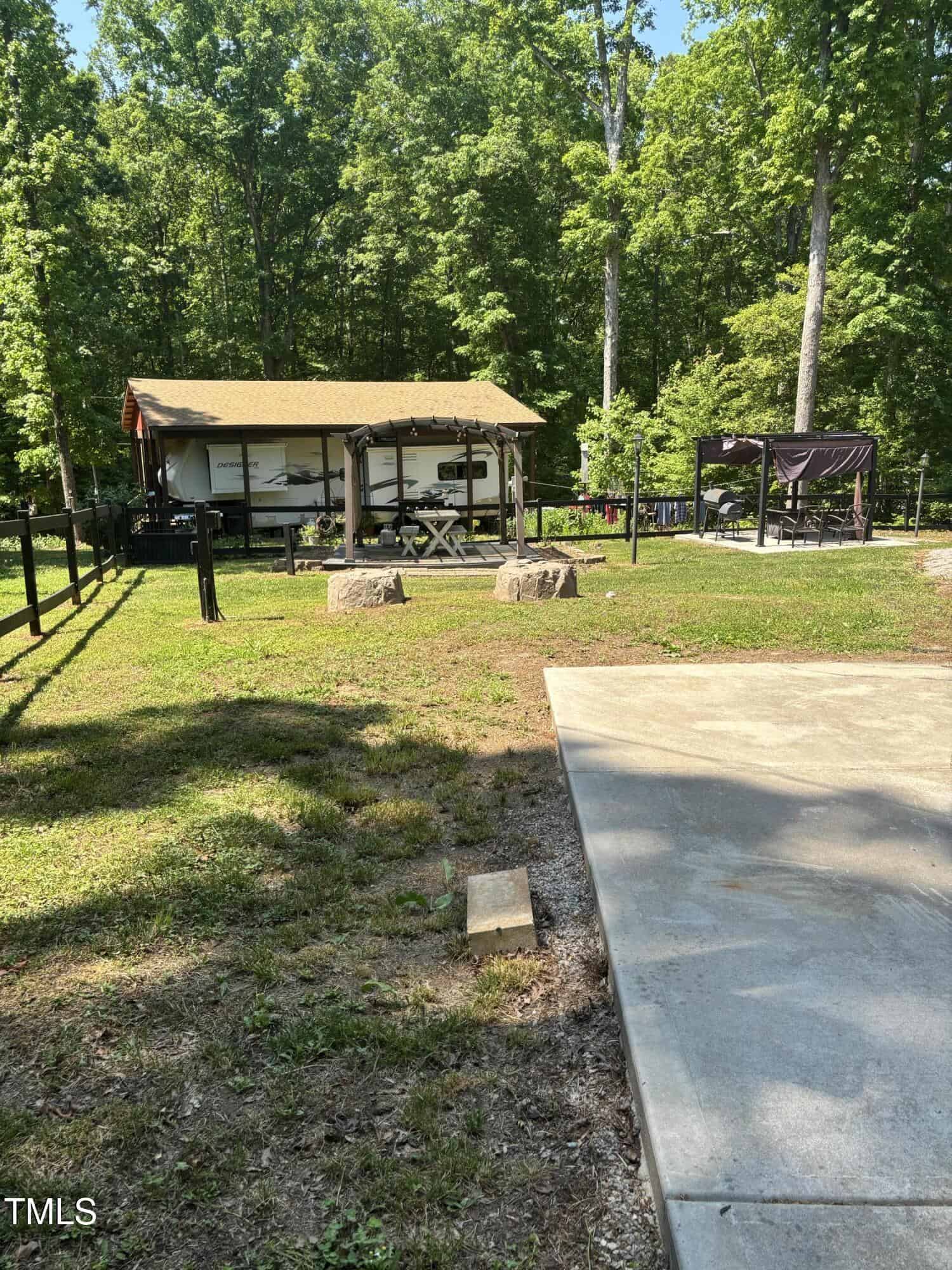 SELLER MOTIVATED! BRING ALL OFFERS! Beautiful fenced lot with a concrete apron with 2 bedroom septic. This property includes a shed and two pergolas perfect for entertaining. Firepit, grill, and furniture convey with property.