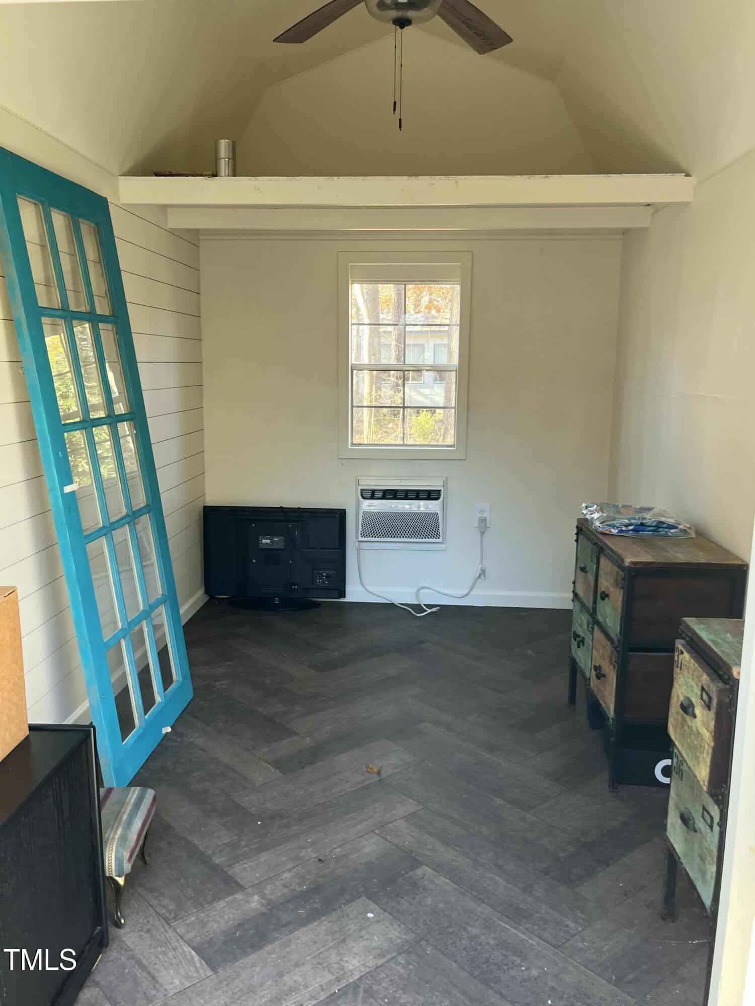 Finished shed with drywall, flooring, and HVAC for year-round comfort