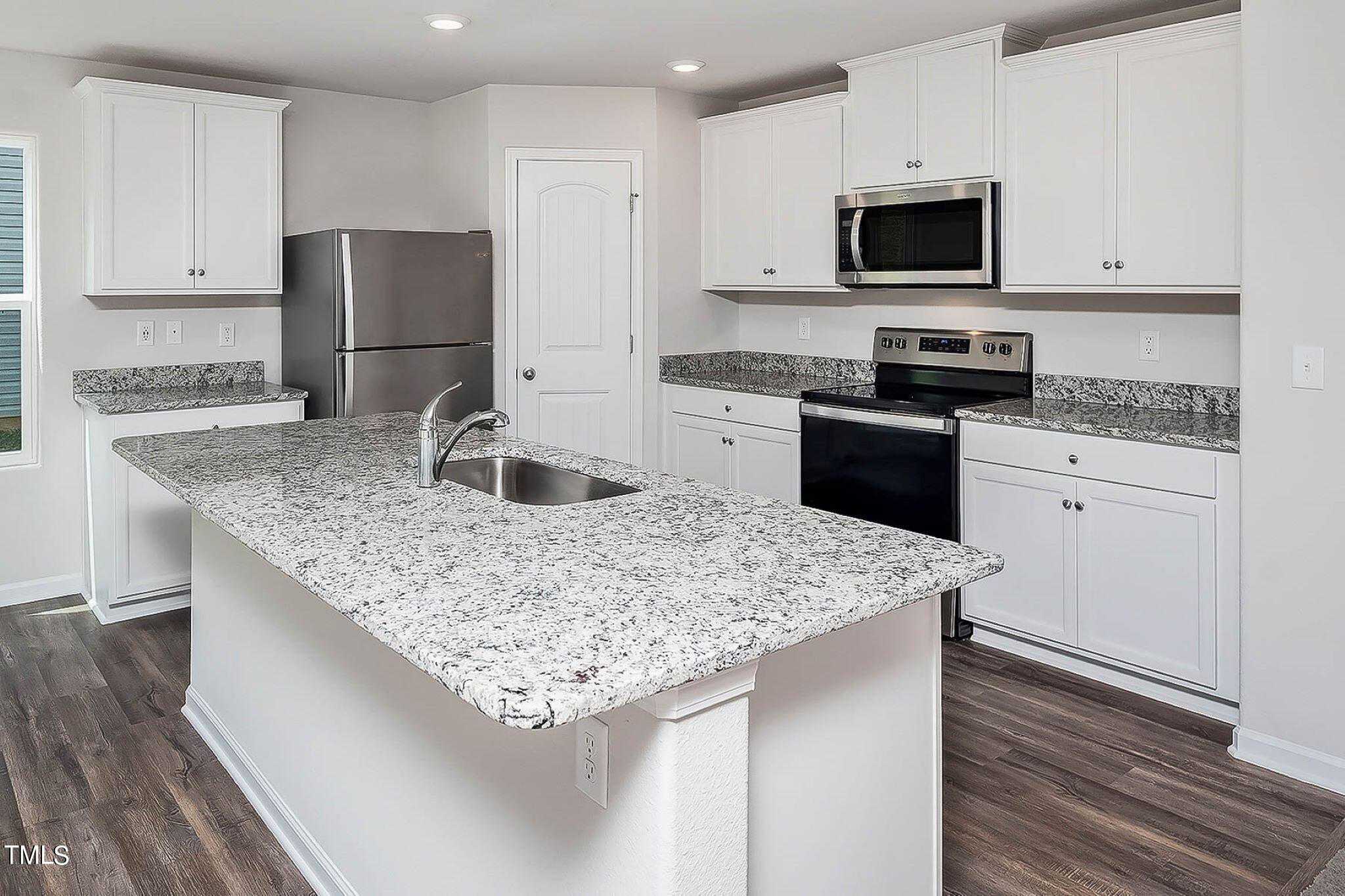 This 4-bed home has a spacious and airy feel that has been designed with your needs in mind. The large kitchen is open to the dining area and living room and has stainless steel appliances, gorgeous granite countertops, 36” upper cabinets with brushed nickel hardware and a large island.