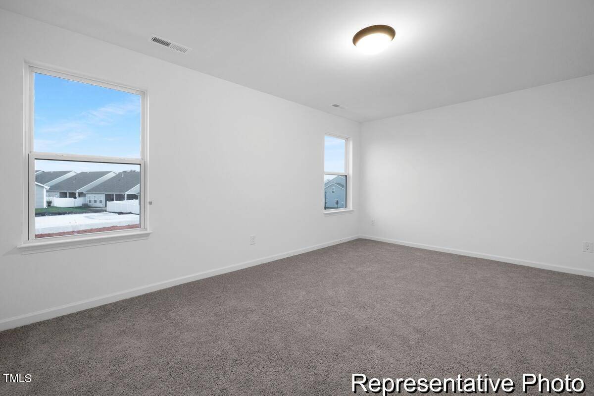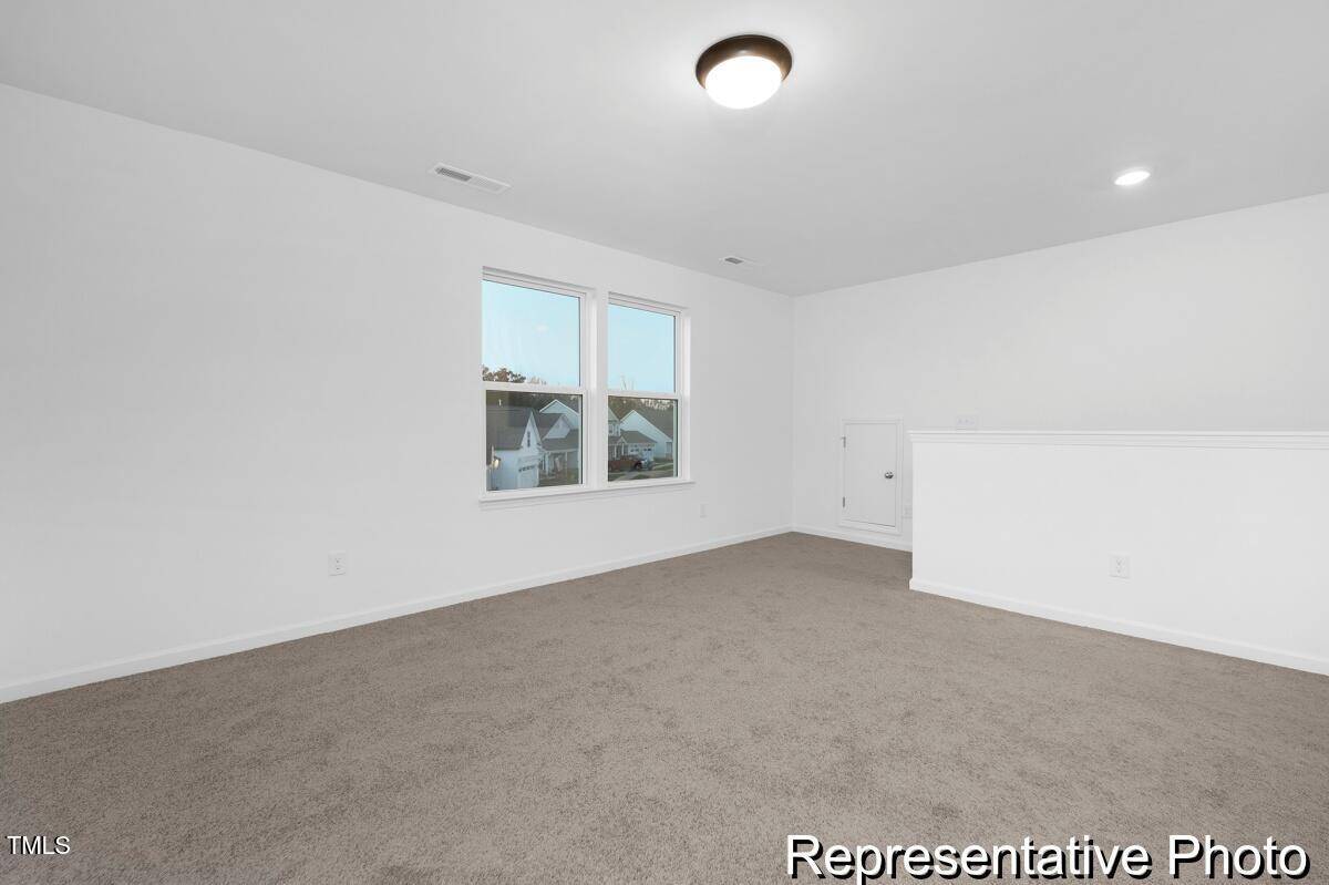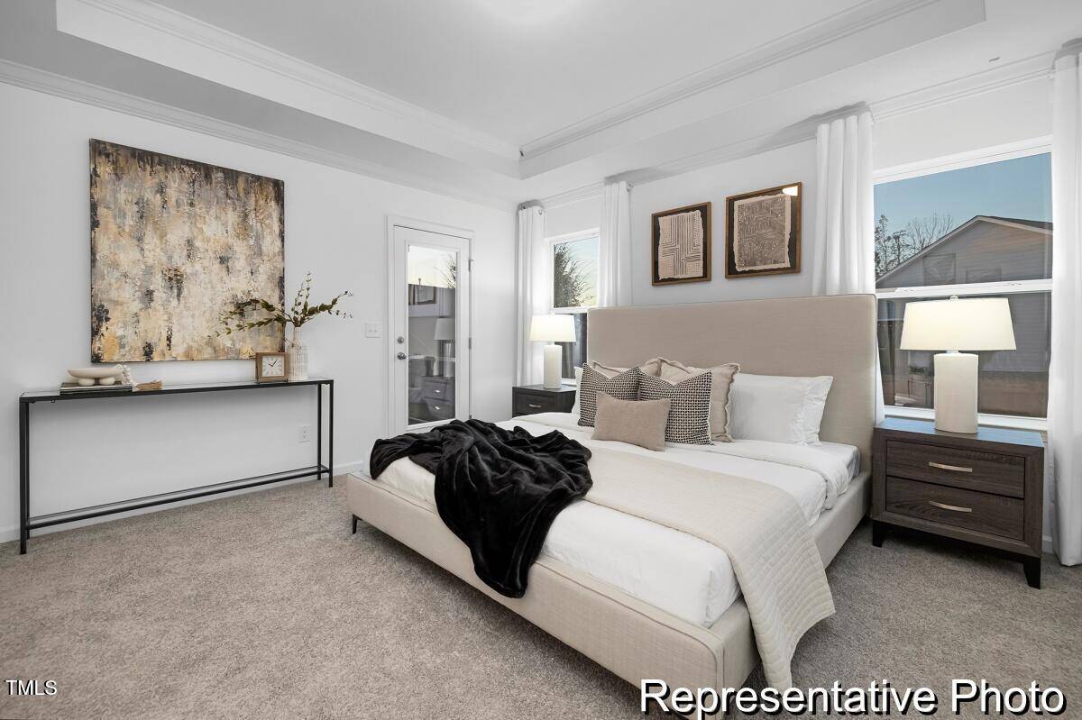 Experience luxury and convenience in this semi-custom Cyprus plan at Lake Royale! With 3 bedrooms and 3 baths, this home offers spacious living and modern finishes. The primary suite, featuring a luxurious ensuite, is conveniently located on the main level, along with a secondary bedroom, laundry room with folding table, and an additional full bath. The great room is highlighted by a stunning beamed coffered ceiling, while the kitchen showcases stainless steel appliances, marble countertops, and upgraded cabinetry. Relax on the rear covered porch, perfect for unwinding. The second level features a versatile game room, third bedroom, and additional full bath.