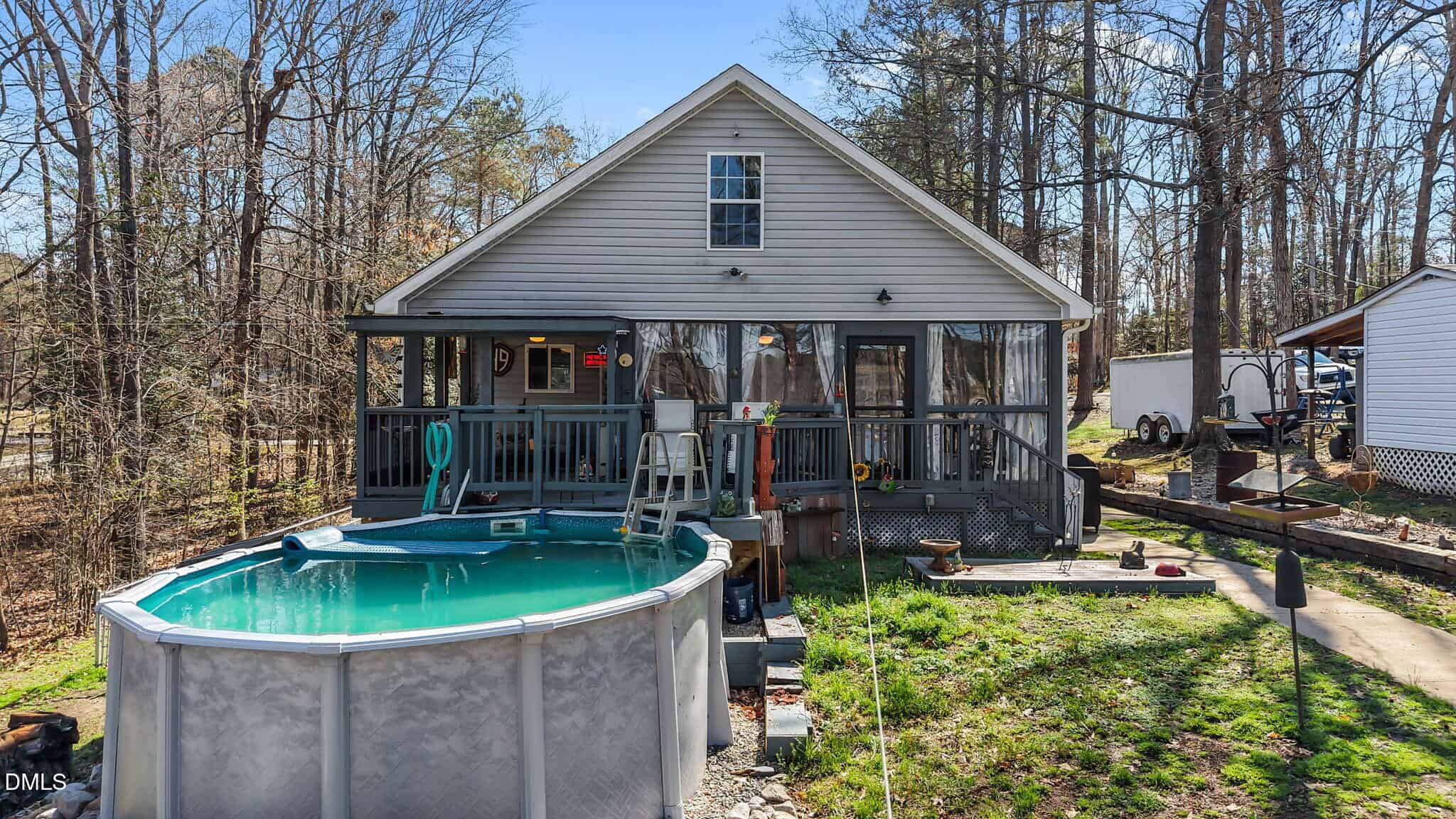 Vacation living feels like everyday life at this beautifully updated waterfront cottage on Lake Royale. Situated on a flat, landscaped lot with approximately 100 feet of shoreline, this property is packed with outdoor living spaces designed for relaxing and entertaining. Enjoy the saltwater pool, expanded pool deck, fire pit, covered porch, extended deck, and a spacious 4-season room that lets you take in the view year-round. The expansive dock with gazebo-style structure is wired with multiple outlets and a ceiling fan, and the wheelchair-width sidewalk extends all the way to the dock for added accessibility and convenience.
