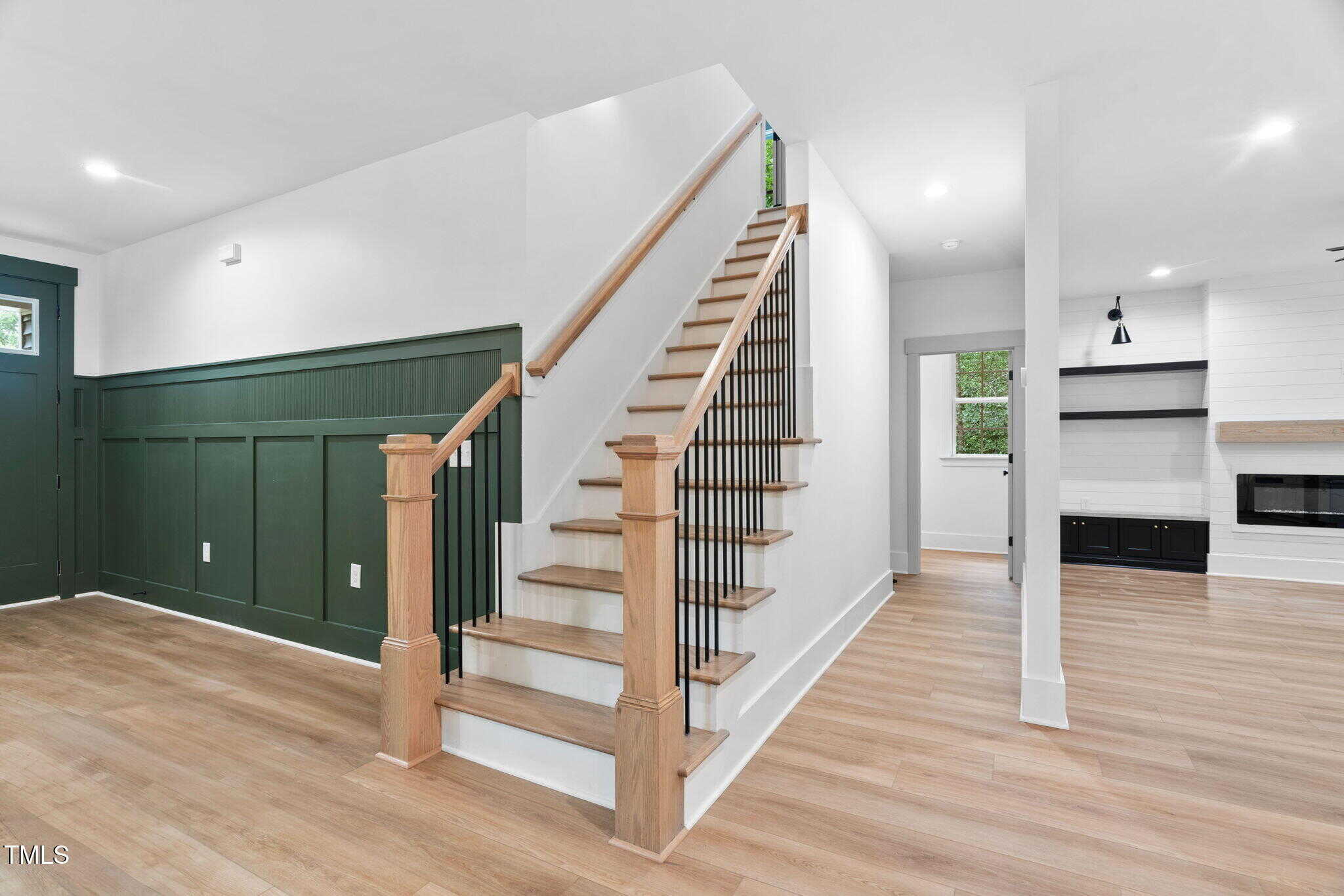 Inside, you’ll love the bright, open floorplan with wide plank LVP flooring, designer black & gold fixtures, boxed oak stair treads with open railings, and smart home features like an Ecobee thermostat, WiFi garage door opener, and smart toilet/bidet.