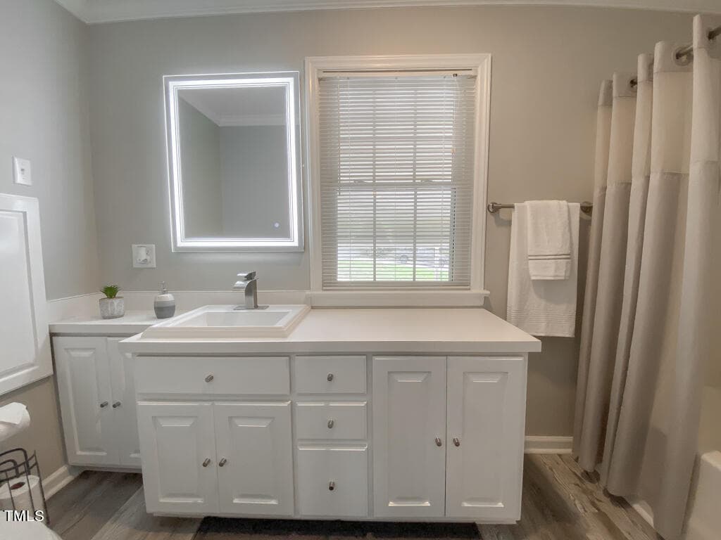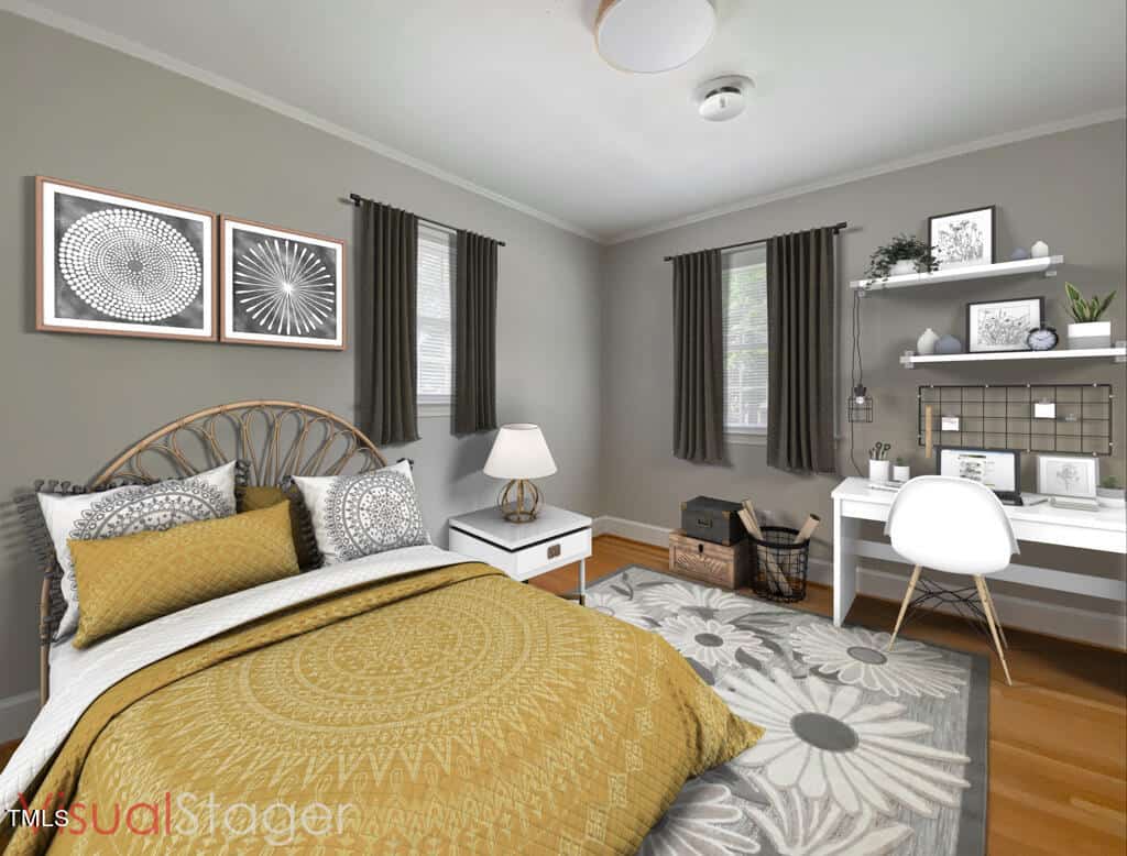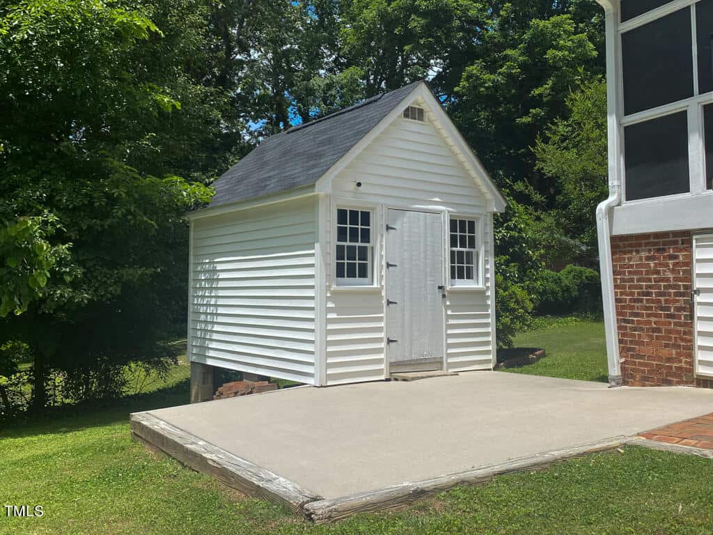 This spacious 4 bedroom, 3.5 bath is conveniently located to I-85 providing a quick commute to Raleigh/Durham/RTP. Wonderful floor plan with an abundance of living space, hardwoods in many of the rooms. Gracious formal living and dining rooms, family room with fireplace/gas logs, spectacular natural light-filled sunroom and an adjacent screened in porch. There will never be too many cooks in the spacious kitchen; it is large enough to function with eat-in dining and roomy enough to add an island! The convenient 1st floor laundry area is set up for a stackable washer/dryer and has built-in pantry shelving for extra kitchen storage. Primary first floor bedroom with double closets and ensuite. There is also an additional primary bedroom with adjoining bathroom on the second floor! Freshly painted interior, updated lighting and fixtures, new LVP flooring in primary bath/laundry/pantry, new carpet in sunroom, new kitchen appliances. Outside you will find an expansive attached 2-car carport, shed for additional storage with patio area; all situated on a beautiful corner lot in sought after neighborhood of Green Acres. **NOTE: Some images have been virtually staged to better showcase the potential of rooms and spaces in and around the home.**