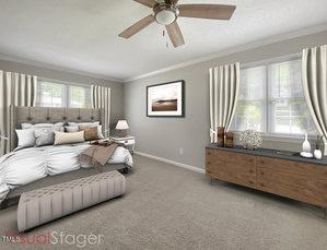 Primary first floor bedroom with double closets and ensuite. There is also an additional primary bedroom with adjoining bathroom on the second floor! Freshly painted interior, updated lighting and fixtures, new LVP flooring in primary bath/laundry/pantry, new carpet in sunroom, new kitchen appliances.