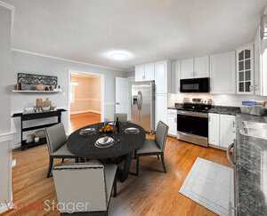 There will never be too many cooks in the spacious kitchen; it is large enough to function with eat-in dining and roomy enough to add an island! The convenient 1st floor laundry area is set up for a stackable washer/dryer and has built-in pantry shelving for extra kitchen storage.