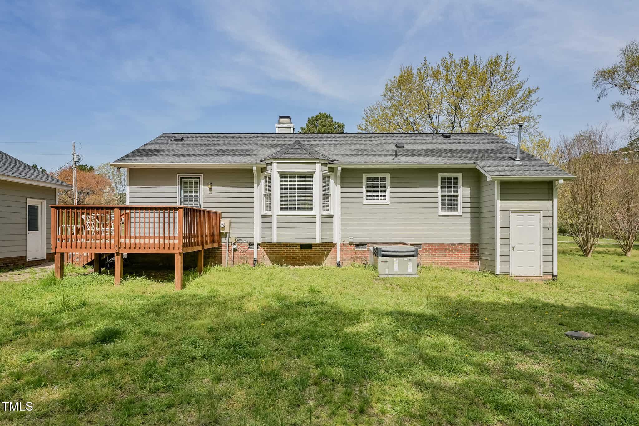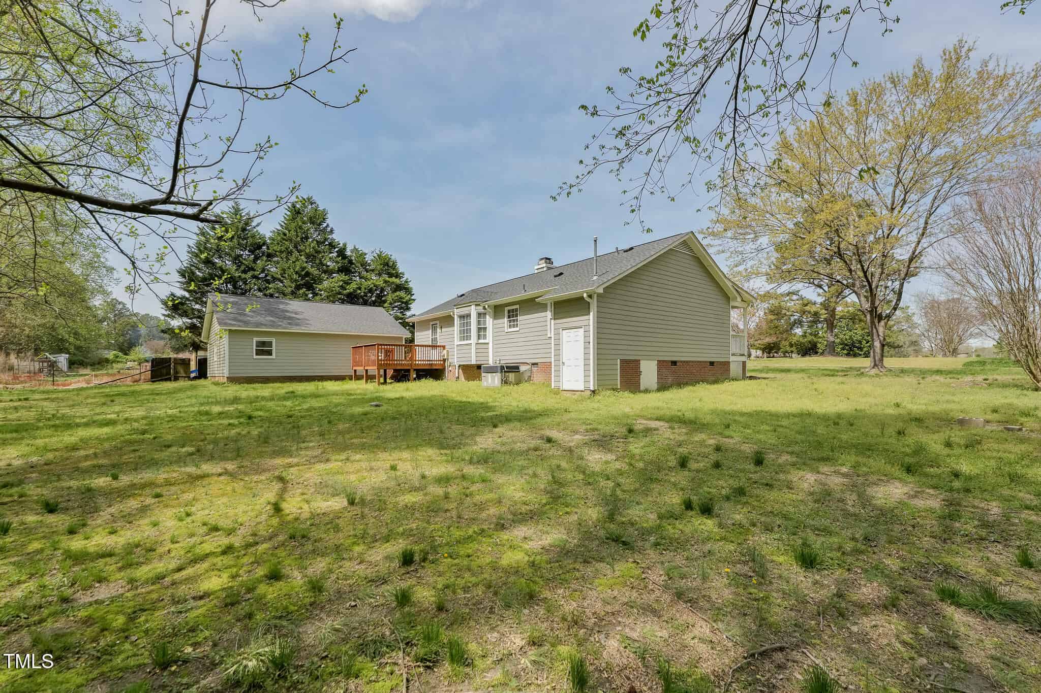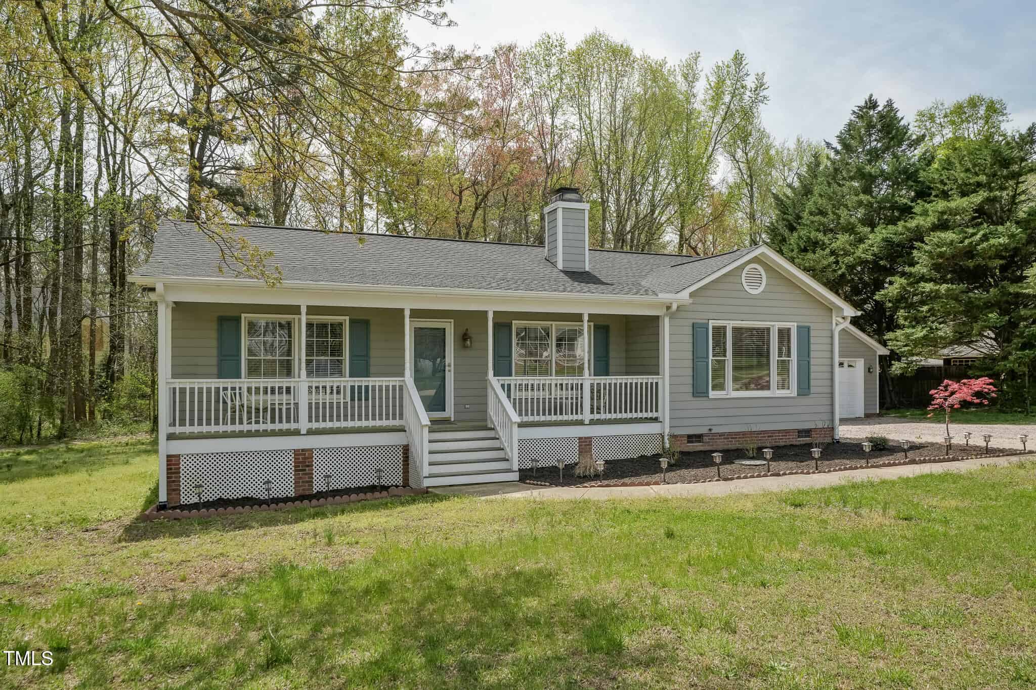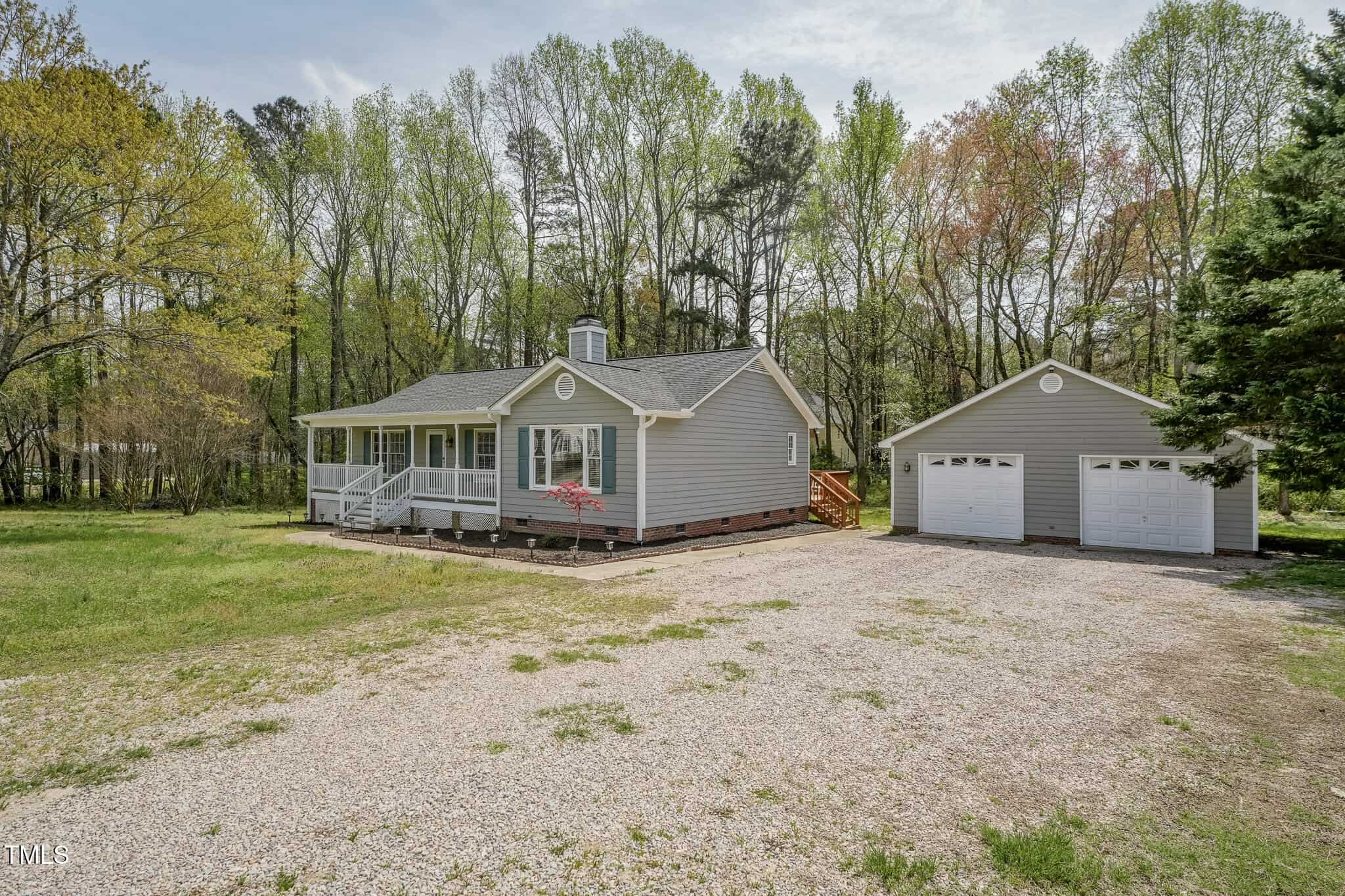 This super cute 3-bedroom Ranch is nestled on 1.05 acres of serene country living, all while being minutes from Wake Forest. Step inside to find a desirable split-bedroom floor plan, abundant natural light, and a spacious Family Room featuring a vaulted ceiling and a gas log fireplace. The Kitchen has great functionality with ample cabinet and counter space and a new gas range offering a double oven. You’ll love the bay window in the Breakfast Nook! The massive Primary Suite offers a WIC and an updated en-suite bath with a dual vanity and a newer walk-in shower. Two additional bedrooms share a full hall bath. Outside, enjoy a newer deck, perfect for relaxing or entertaining. The property also boasts a detached 2-car garage with deep bays, offering extra storage or space for up to four small cars. Additional upgrades include a vapor barrier in the crawl space, a newer Roof & exterior siding, newer carpet, and a recently pumped septic system in 2024.