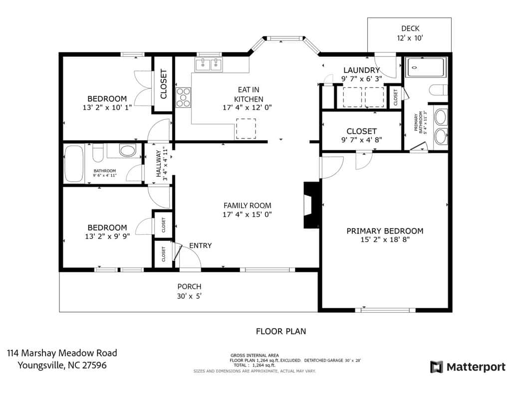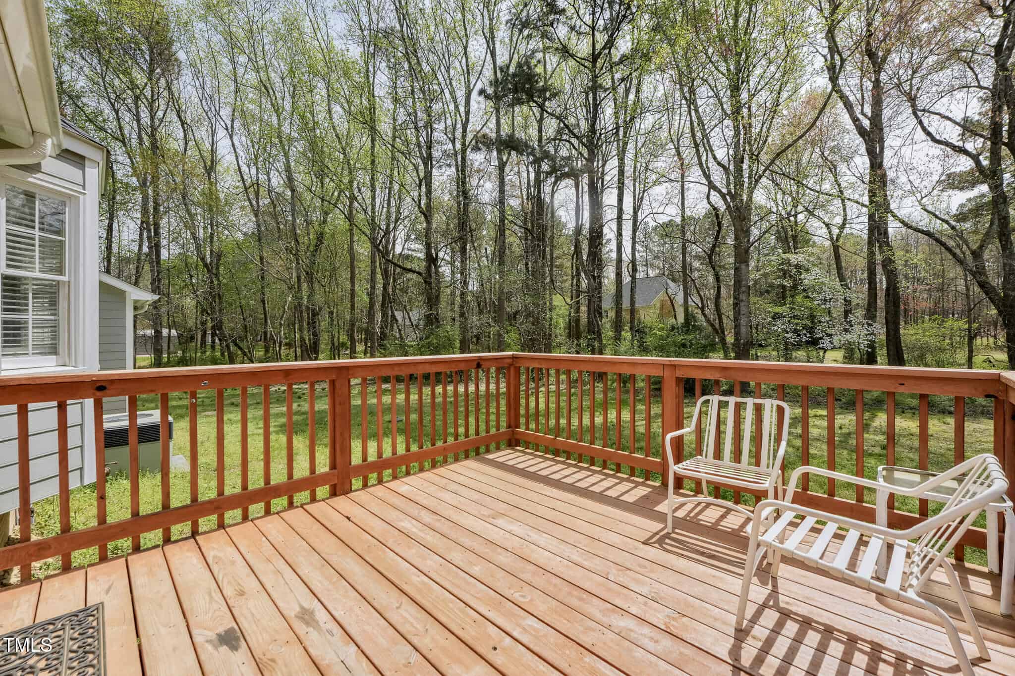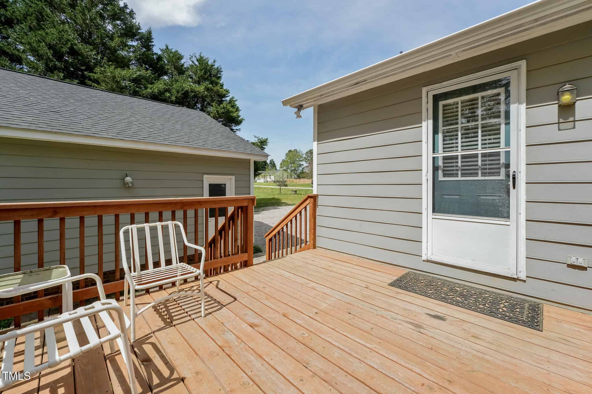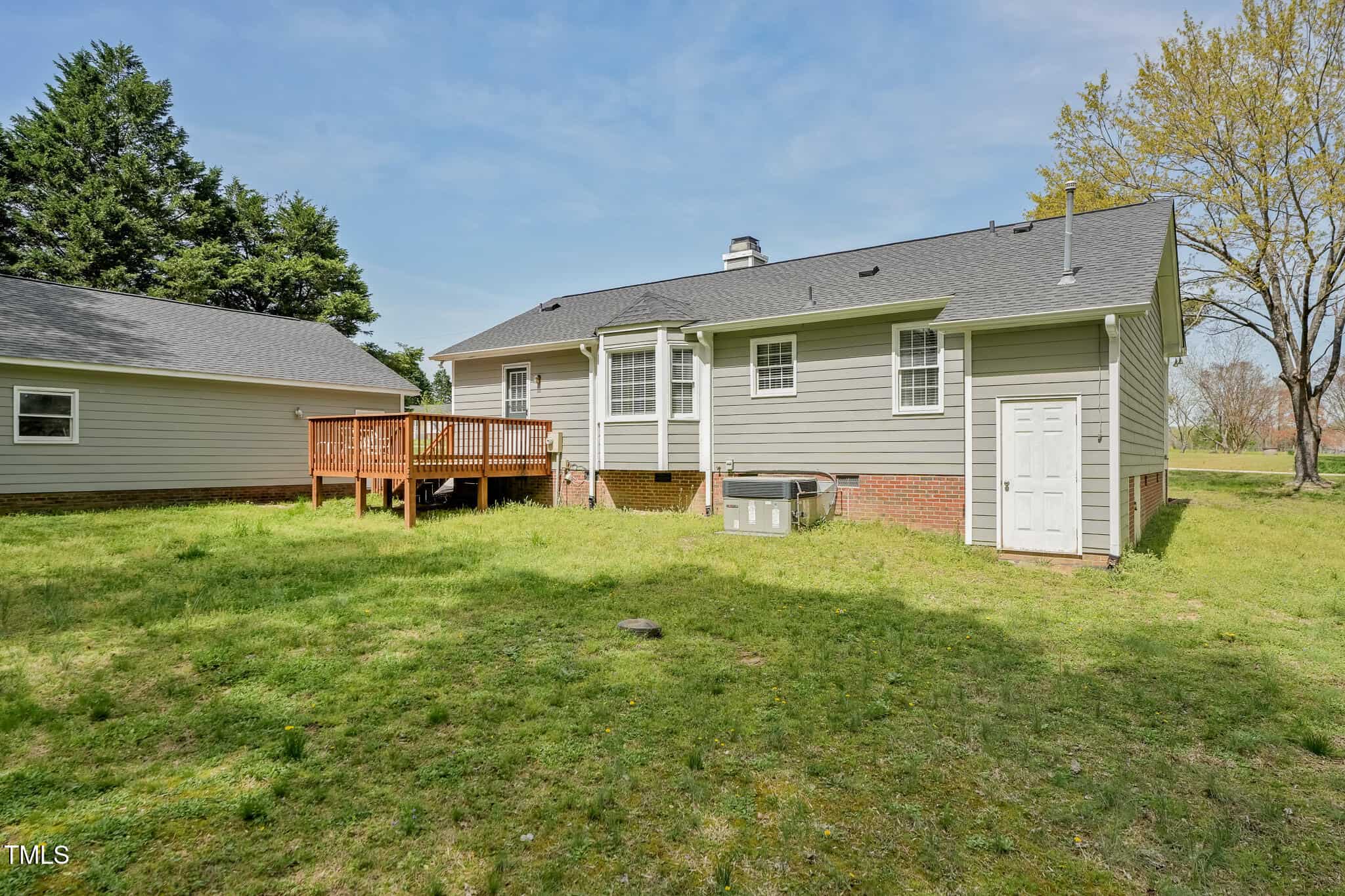 This super cute 3-bedroom Ranch is nestled on 1.05 acres of serene country living, all while being minutes from Wake Forest. Step inside to find a desirable split-bedroom floor plan, abundant natural light, and a spacious Family Room featuring a vaulted ceiling and a gas log fireplace. The Kitchen has great functionality with ample cabinet and counter space and a new gas range offering a double oven. You’ll love the bay window in the Breakfast Nook! The massive Primary Suite offers a WIC and an updated en-suite bath with a dual vanity and a newer walk-in shower. Two additional bedrooms share a full hall bath. Outside, enjoy a newer deck, perfect for relaxing or entertaining. The property also boasts a detached 2-car garage with deep bays, offering extra storage or space for up to four small cars. Additional upgrades include a vapor barrier in the crawl space, a newer Roof & exterior siding, newer carpet, and a recently pumped septic system in 2024.