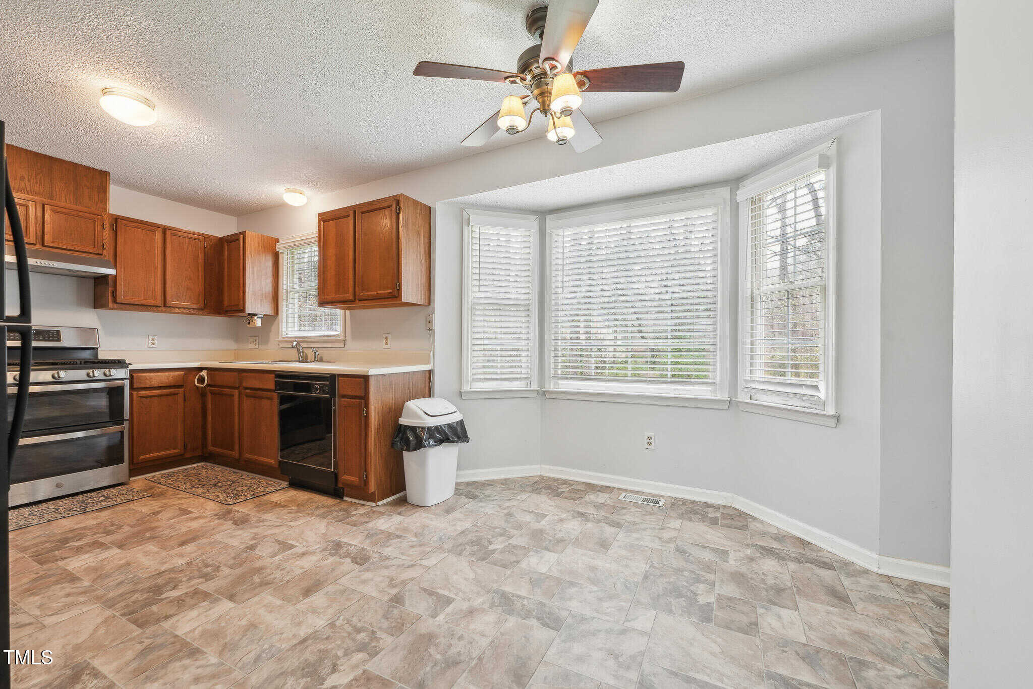 This super cute 3-bedroom Ranch is nestled on 1.05 acres of serene country living, all while being minutes from Wake Forest. Step inside to find a desirable split-bedroom floor plan, abundant natural light, and a spacious Family Room featuring a vaulted ceiling and a gas log fireplace. The Kitchen has great functionality with ample cabinet and counter space and a new gas range offering a double oven. You’ll love the bay window in the Breakfast Nook!