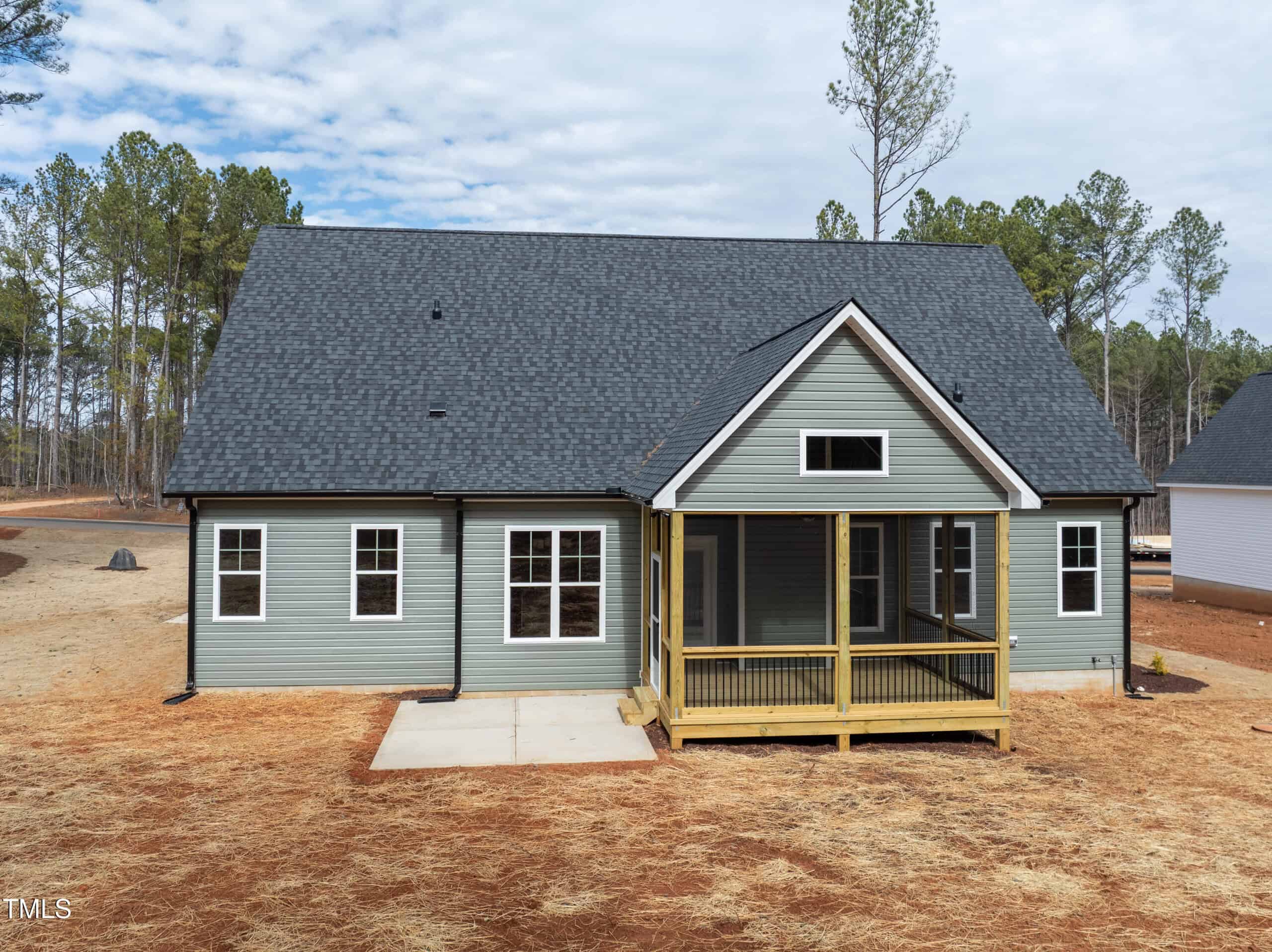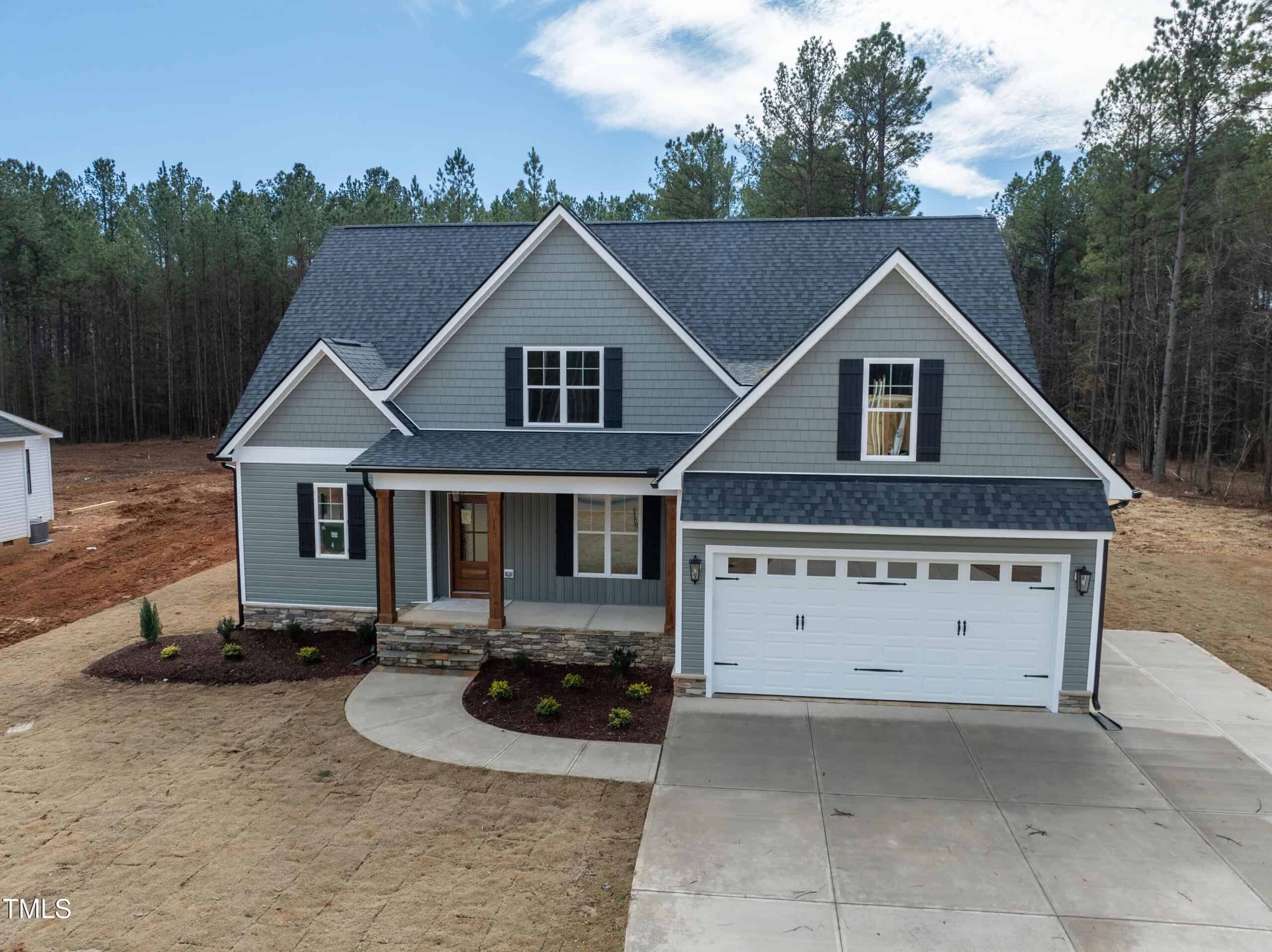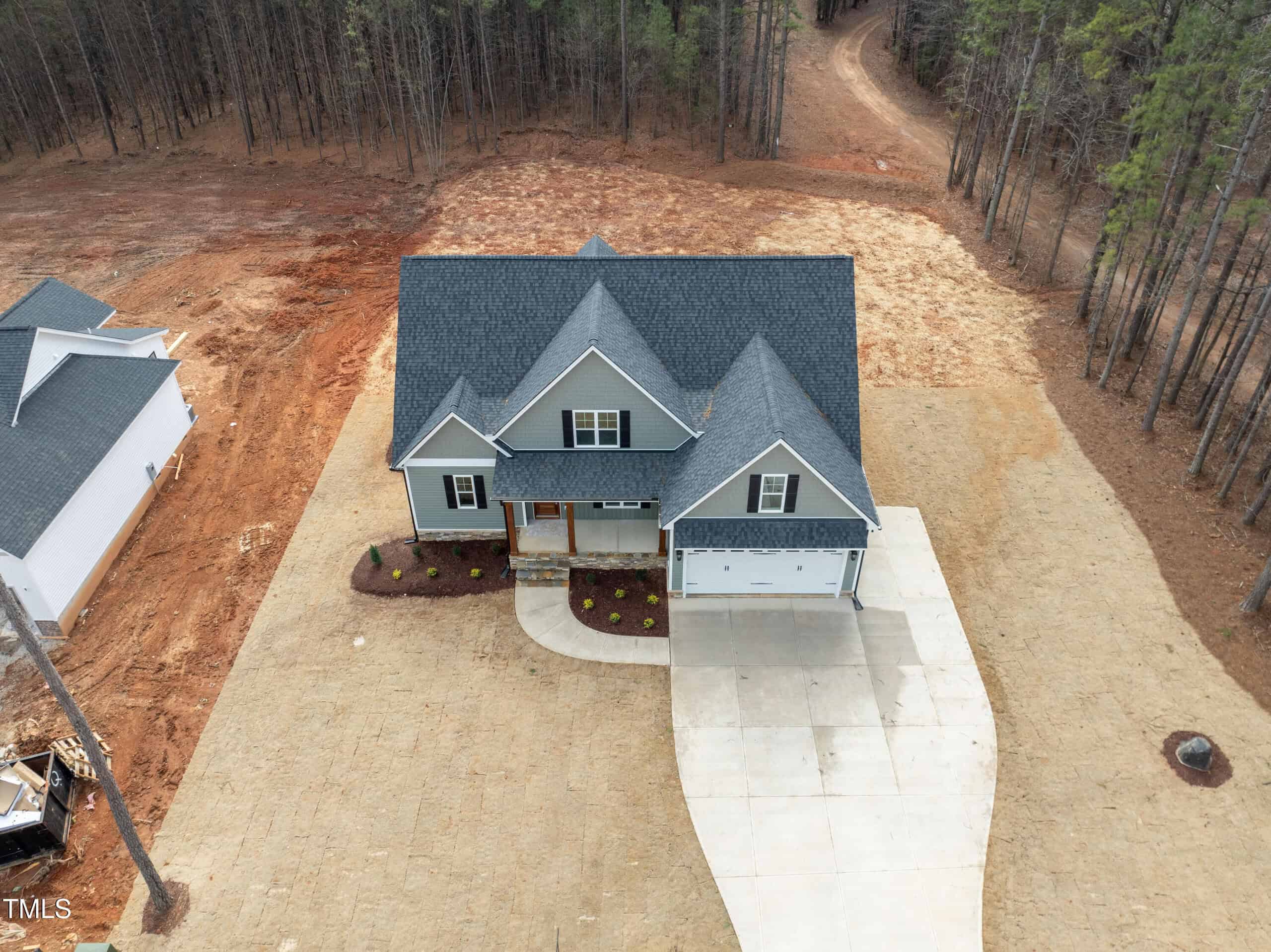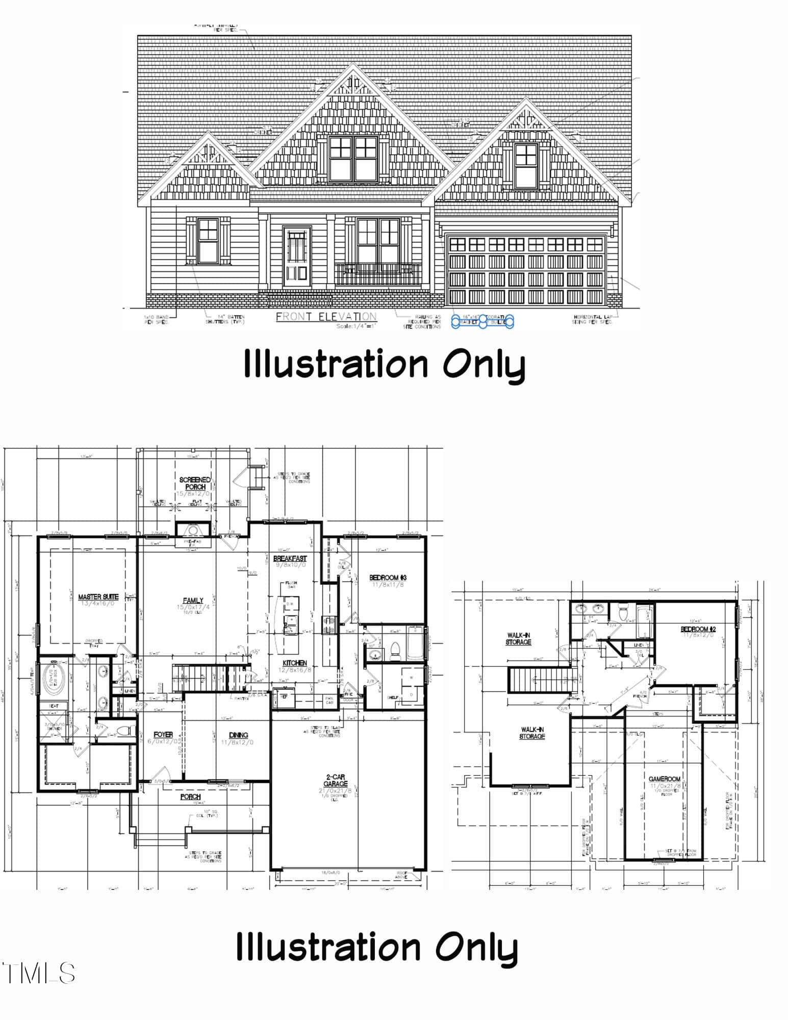 One and a half story ranch style home. Primary and Guest bedrooms on Main floor. Covered back porch with vaulted ceiling and ceiling fan. Breakfast nook and formal dining room. Open kitchen family room with wall mount electric fireplace on Shiplap accent wall and box mantle. Laundry room with shelf and Utility Sink. Guest bath with tub and Tiled shower walls with niche. Primary Bedroom with trey ceiling/Crown Primary Bath with large tiled walk-in shower and separate soaking Tub. Large walk in closet with wood shelving and sweater boxes, Dual vanity with granite top. 2nd floor with Large Bonus room, 3rd bedroom and Full bath. Plenty of extra walk-in storage space with room to expand.
